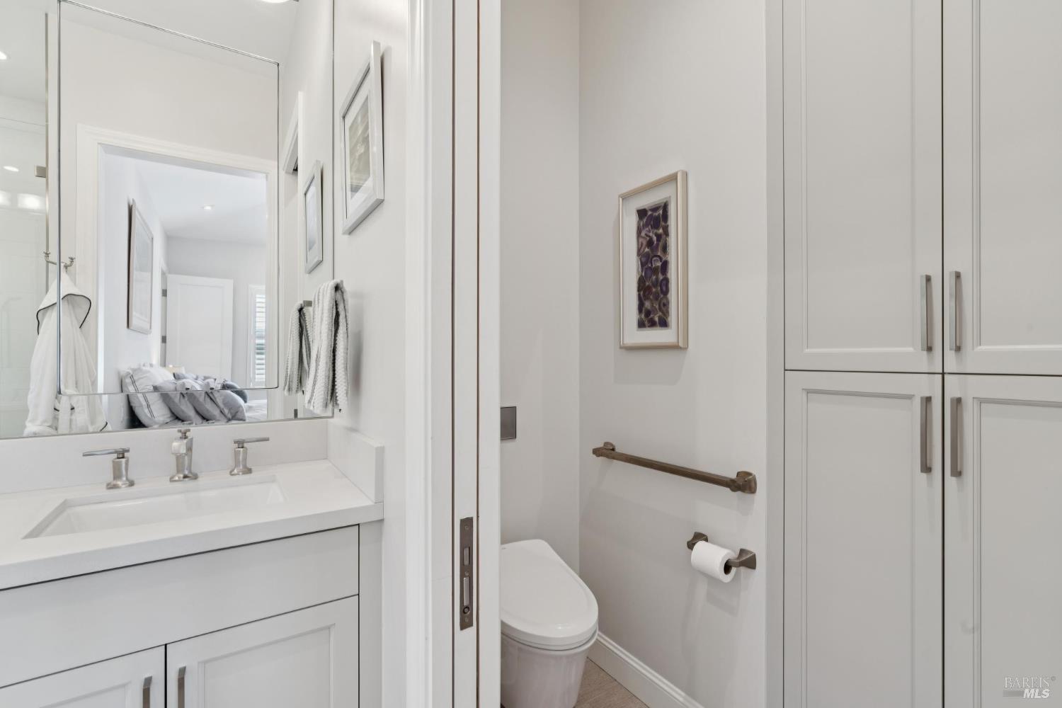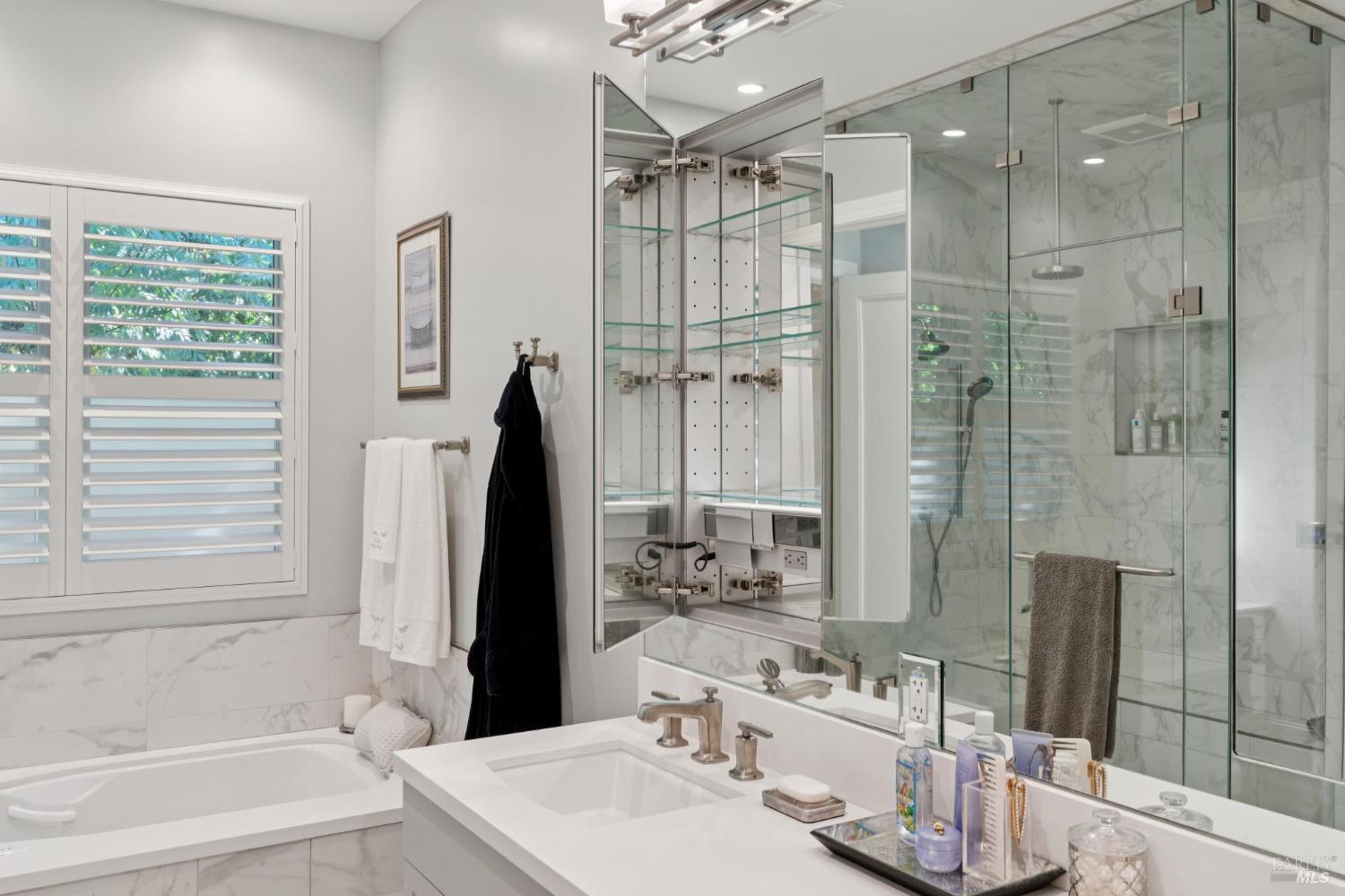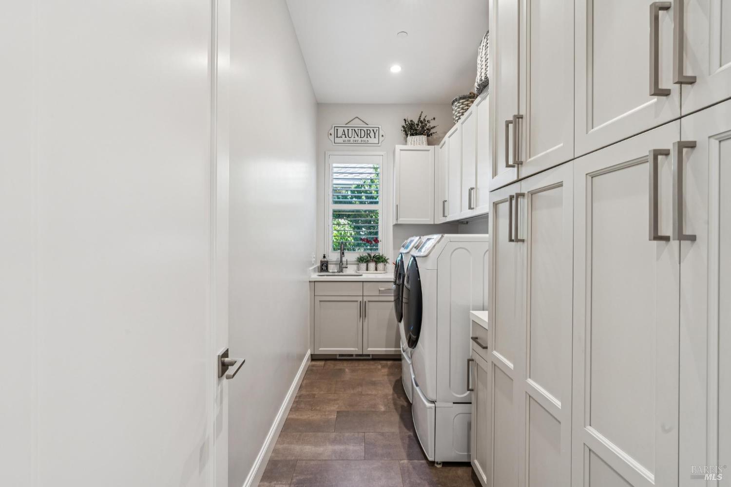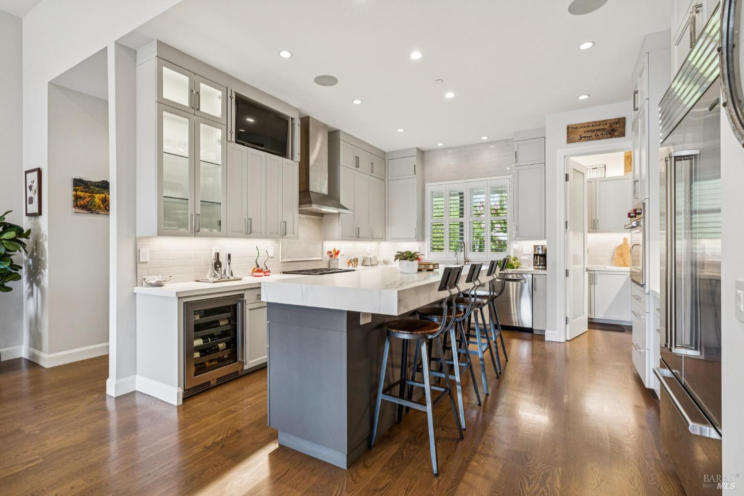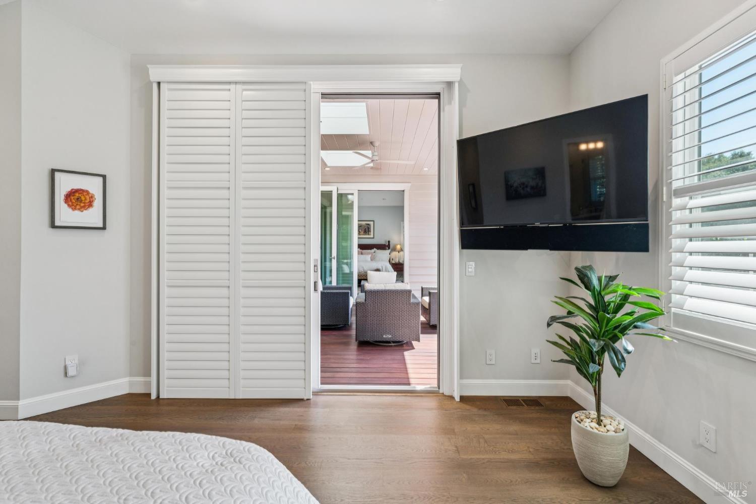Located on Sonoma's east side, this exceptional property offers unparalleled access to wine country's premier shops, tasting rooms, wineries, and acclaimed restaurants. Nestled down a private lane, the 2,578 sq ft home combines luxurious interior features with stunning outdoor living. Inside, the residence boasts three spacious en-suite bedrooms, hardwood floors, and designer finishes throughout. The chef's kitchen is equipped with quartz countertops, stainless steel appliances, wine refrigeration, and butler pantry perfect for entertaining. Cathedral ceilings and Nano doors open to a wrap-around deck with a serene water feature, blending indoor comfort with outdoor elegance. The exterior dining area includes remote-controlled auto screens, providing shade for outdoor gatherings. The primary bedroom with en-suite bath offers a walk-in closet, jetted tub, and steam shower, with radiant heat in the bathroom floors. Natural light floods the space through plantation shutters and sliding doors leading to the private hot tub. The front porch is beautifully landscaped, with seasonal blooms and professional design creating a welcoming curb appeal. The abundance of space and style effortlessly blend making this home a true entertainer's paradise.