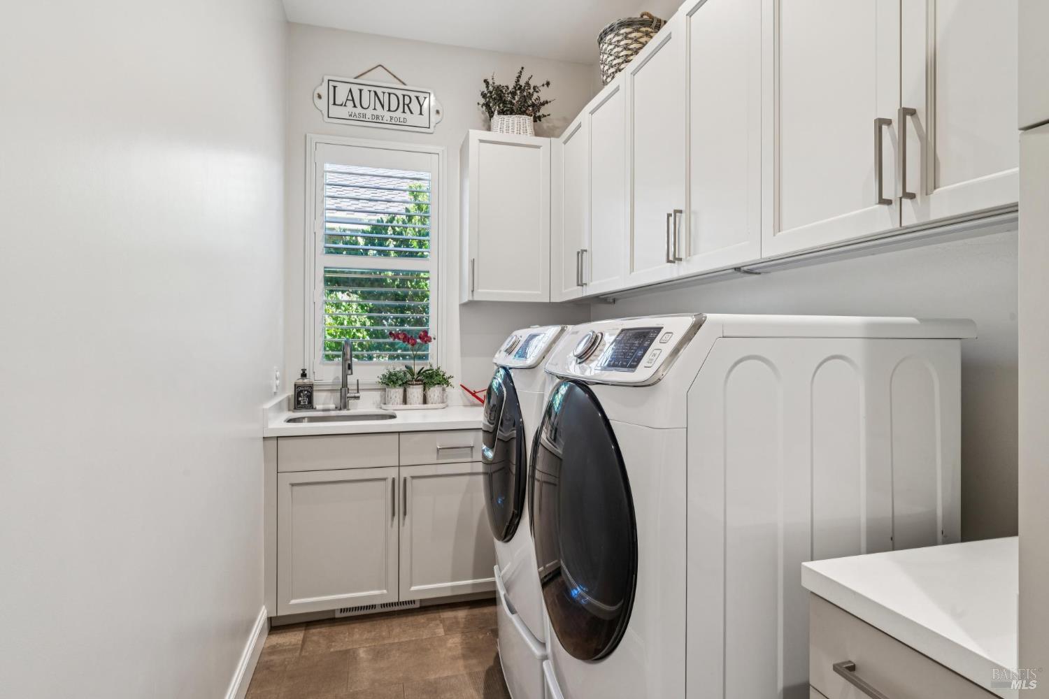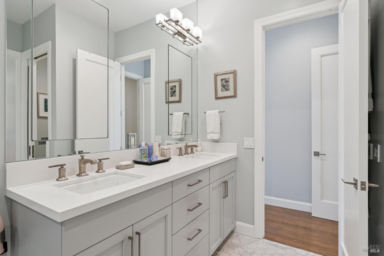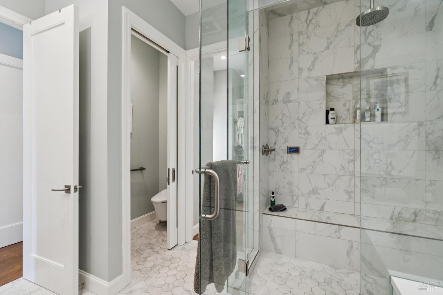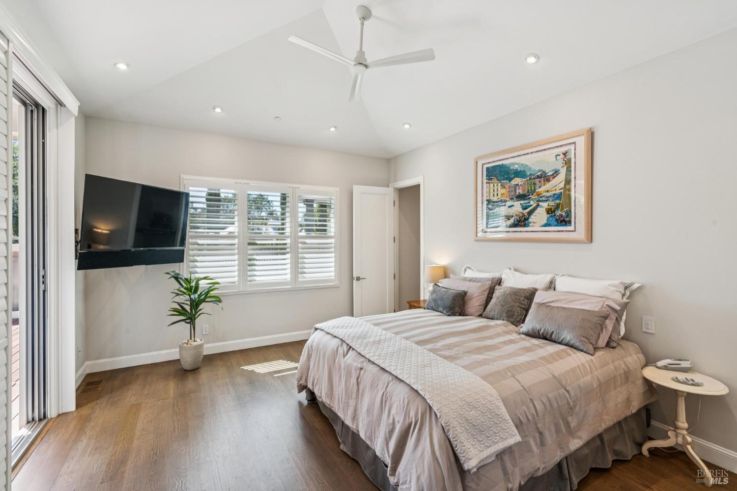 Located on Sonoma's east side, this exceptional property offers unparalleled access to wine country's premier shops, tasting rooms, wineries, and acclaimed restaurants. Nestled down a private lane, the 2,578 sq ft home combines luxurious interior features with stunning outdoor living. Inside, the residence boasts three spacious en-suite bedrooms, hardwood floors, and designer finishes throughout. The chef's kitchen is equipped with quartz countertops, stainless steel appliances, wine refrigeration, and butler pantry perfect for entertaining. Cathedral ceilings and Nano doors open to a wrap-around deck with a serene water feature, blending indoor comfort with outdoor elegance. The exterior dining area includes remote-controlled auto screens, providing shade for outdoor gatherings. The primary bedroom with en-suite bath offers a walk-in closet, jetted tub, and steam shower, with radiant heat in the bathroom floors. Natural light floods the space through plantation shutters and sliding doors leading to the private hot tub. The front porch is beautifully landscaped, with seasonal blooms and professional design creating a welcoming curb appeal. The abundance of space and style effortlessly blend making this home a true entertainer's paradise.