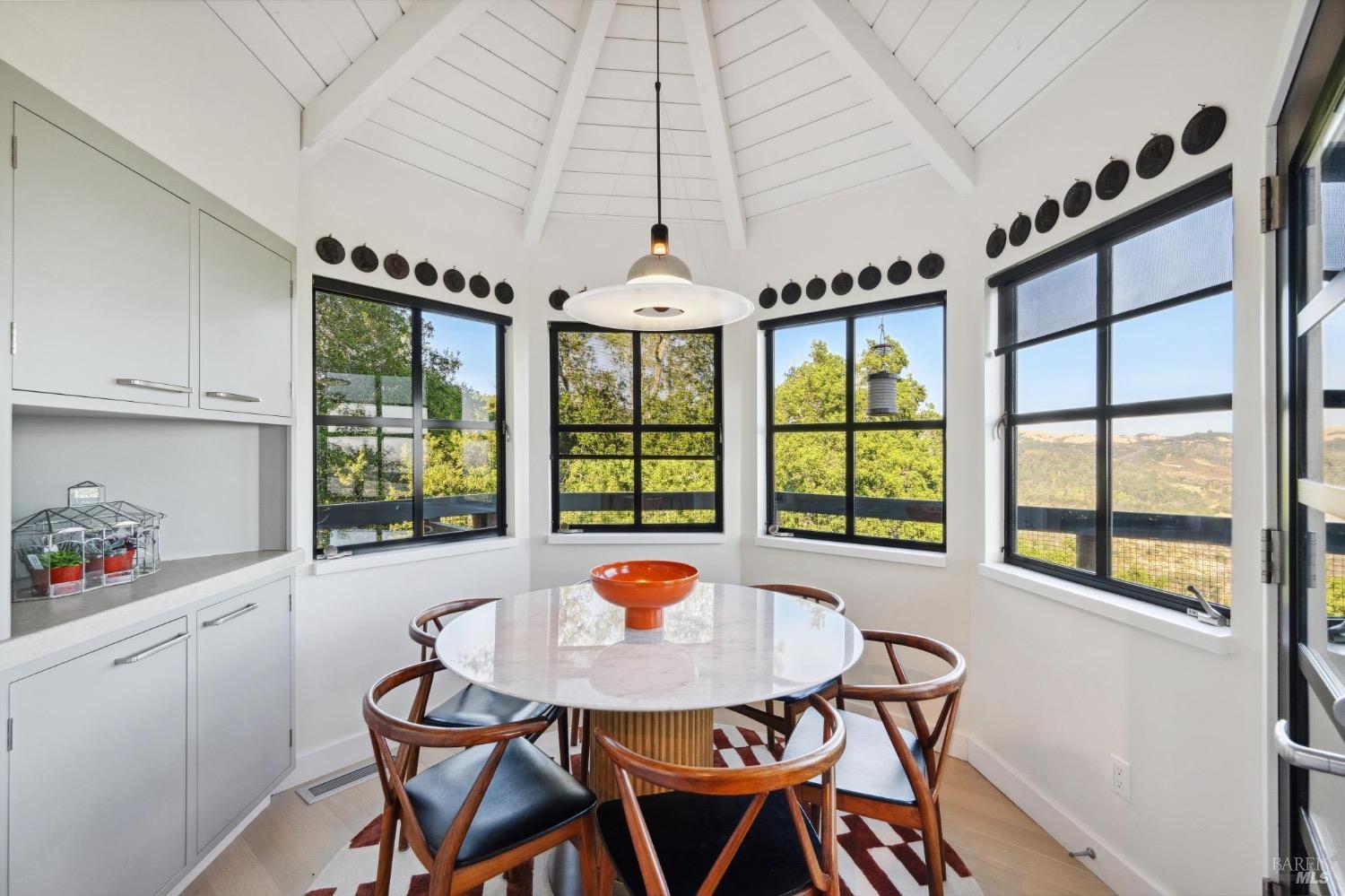 Stunning 3 bedroom/2.5 bath home with contemporary clean lines, natural light, walls of glass and sweeping views. Recently updated by a noted international interior designer has resulted in a residence that is sophisticated while retaining the casual sensibilities we love in Wine Country. Complete privacy in this prime Eastside location with +/-6.5 acres, yet less that 10 minutes to the historic Plaza. Built on one of the first sold lots in The Ranch, it is obviously one of the most appealing since it has enormous views but not far past the gates. Chef's kitchen with high end appliances. Interior features include hardwood floors, open beam ceilings, two fireplaces, and most rooms opening up to the outside. Nestled in the Oaks the property is private yet a few moments to the Plaza. Wine cellar with stone walls quarried from the property. Home office and loft. Beautiful stone walls, Japanese Maples, majestic Oaks, and open pastures. Plans for an incredible swimming pool that will be one of the most beautiful in the Valley.