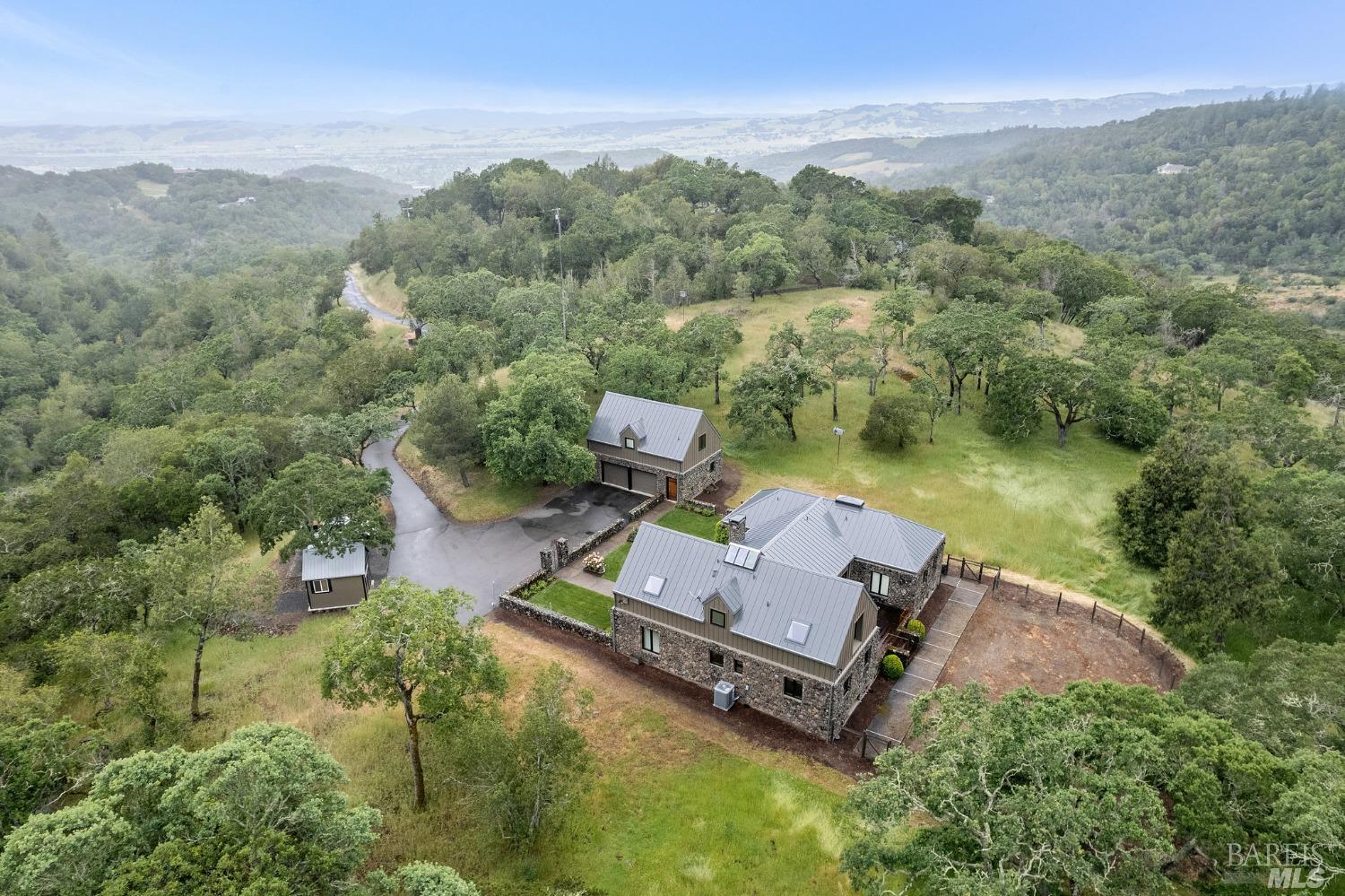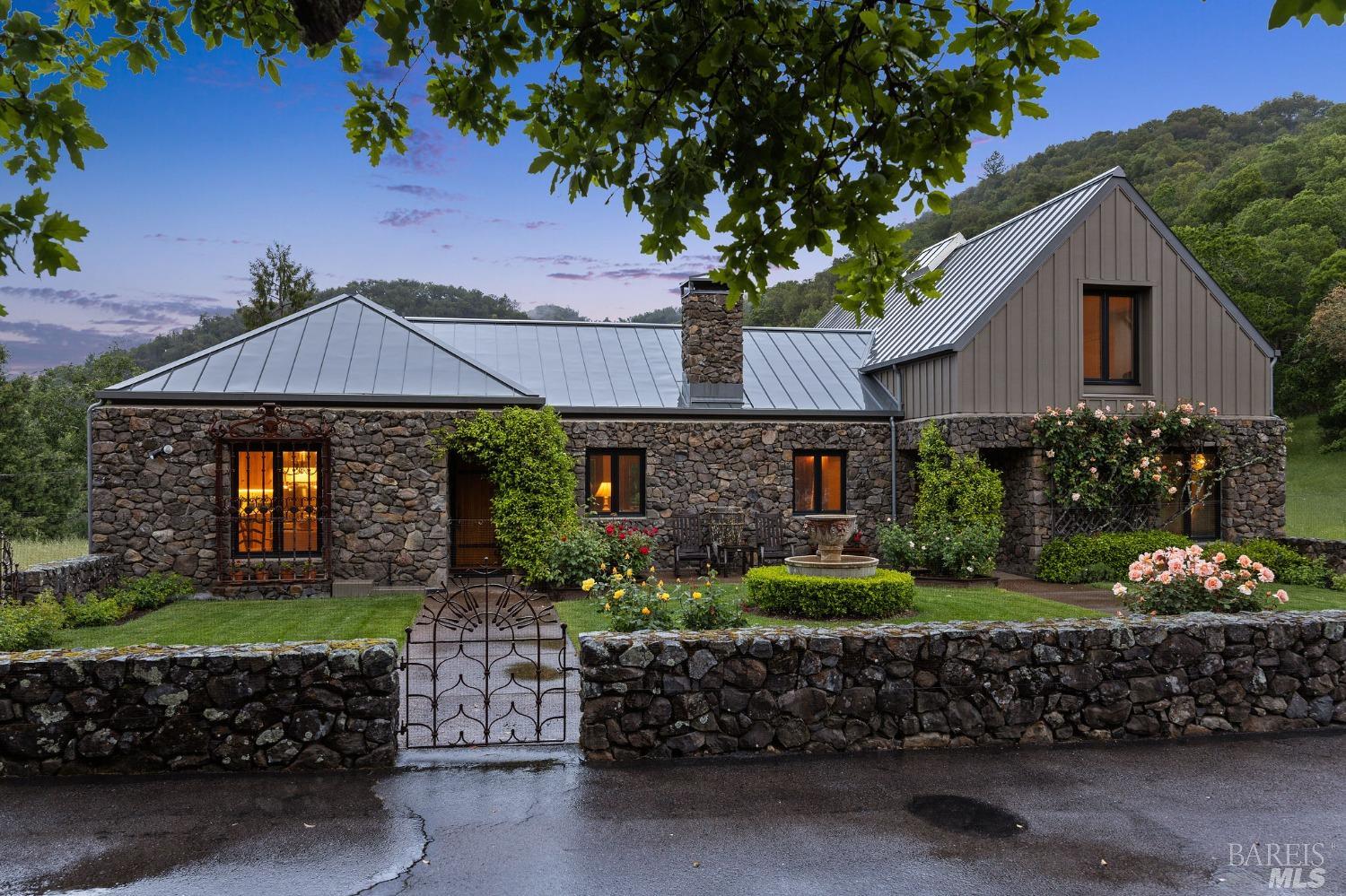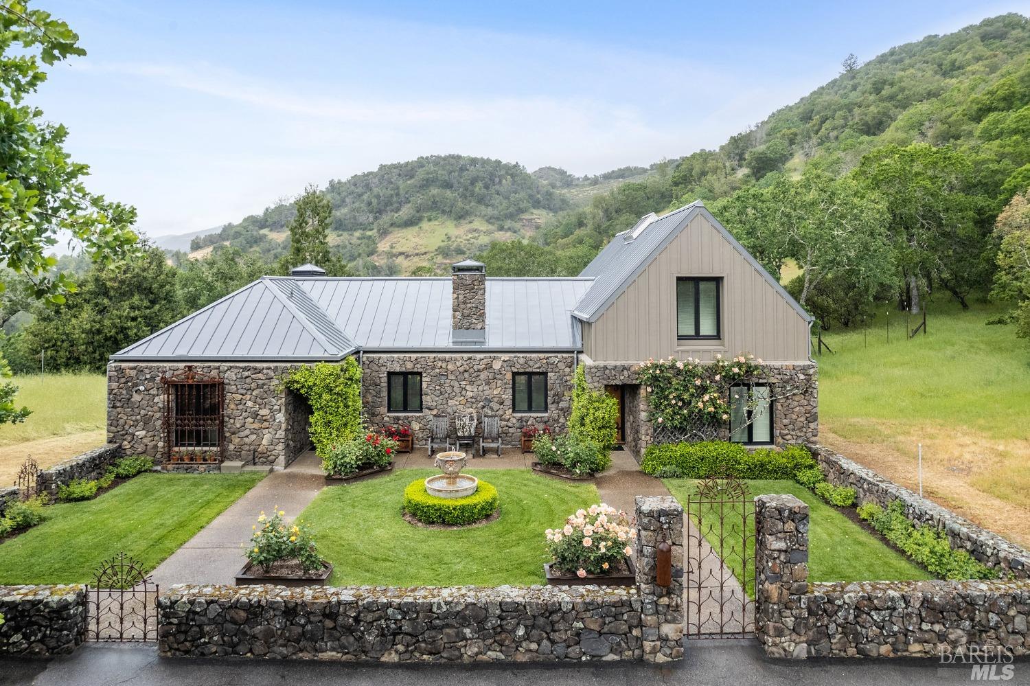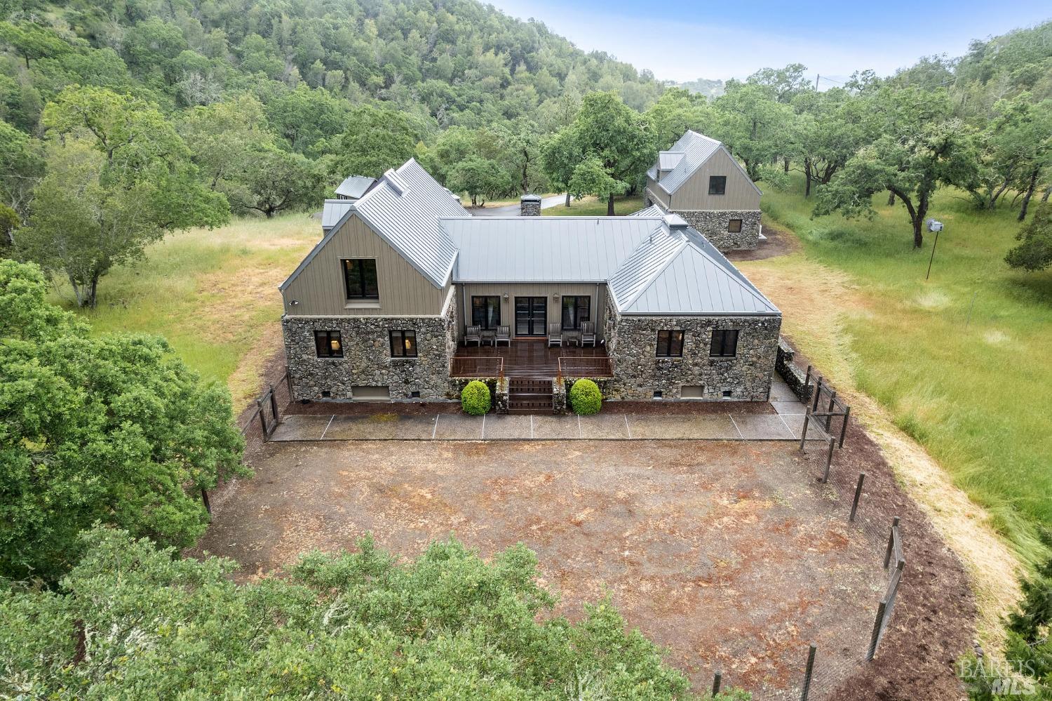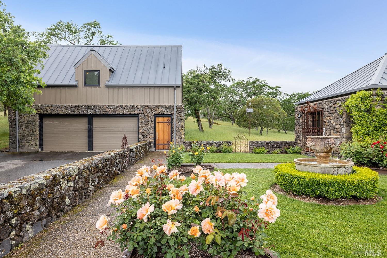 Classically designed, traditionally styled, & immaculately maintained one of a kind Wine Country Estate designed by famed architect Jim Gillam, partner of Howard Backen. Situated on over 15 acres of secluded lands w/sweeping views, majestic Oaks, open meadows, & rolling hills. Complete privacy w/double gated entry in The Ranch, yet less than 10 minutes to the historic Plaza. Tastefully remodeled with the highest quality finishes & every detail is perfection. Understated sophisticated elegance at its best. Interior features include first floor primary, open beam & cathedral ceilings throughout, custom cabinetry, dramatic double height stone fireplace, & picture perfect views from every window. Chef's kitchen w/Viking appliances, two wine refrigerators, custom cabinetry, & exotic stone & woods. Generous size primary bedroom w/the most spectacular custom closet design. Elegant & understated primary bath w/high end finishes. Sonoma fieldstone construction w/Zinc metal roof, antique iron work details, stone walls & popular U-shaped layout creating a large back patio accessed by the entire main level. 100 full redundant power generator that runs on LP, 5 ton variable speed heating & A/C. Loft above garage. Workshop in garage. Room for pool, more outbuildings, etc. Garden shed.