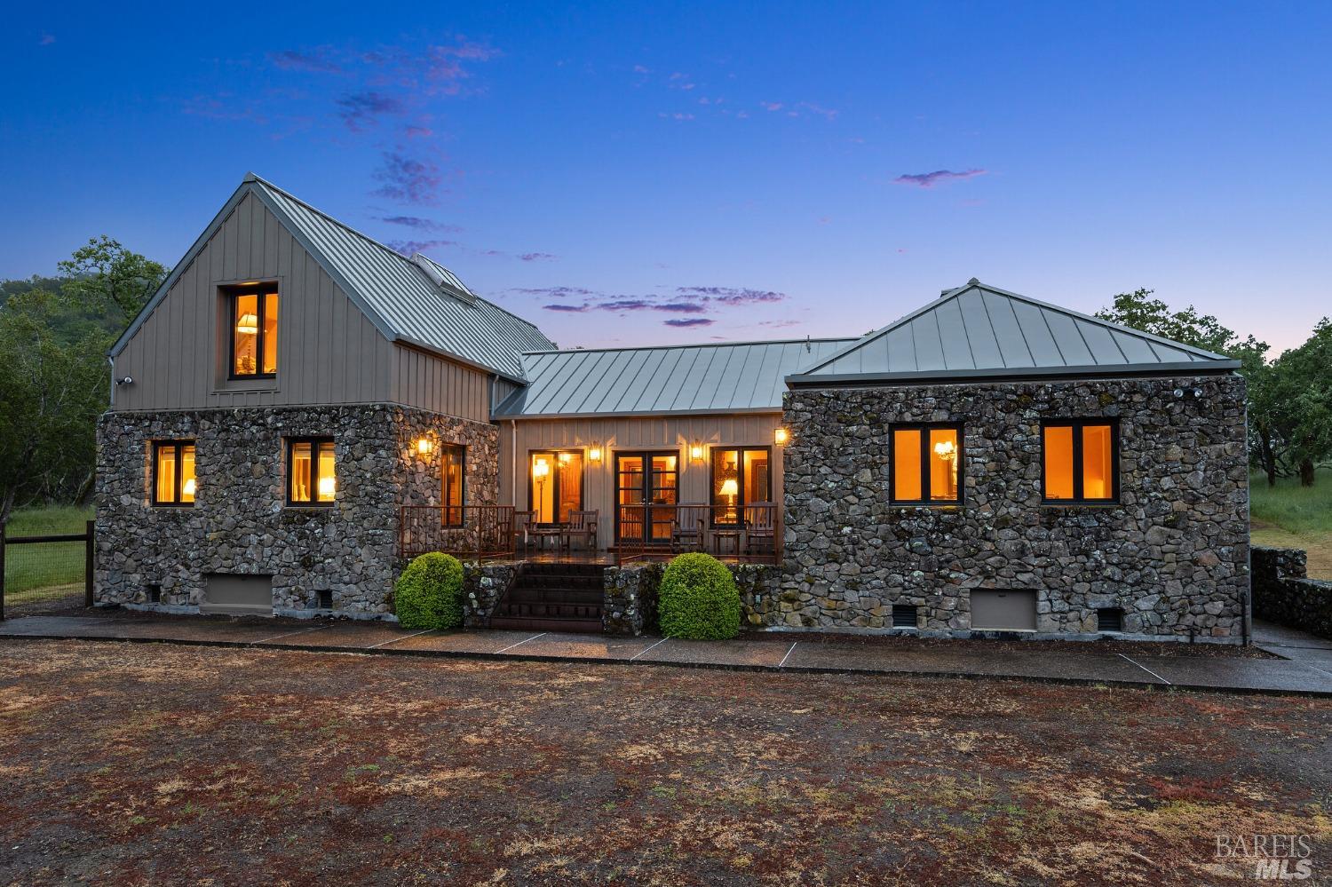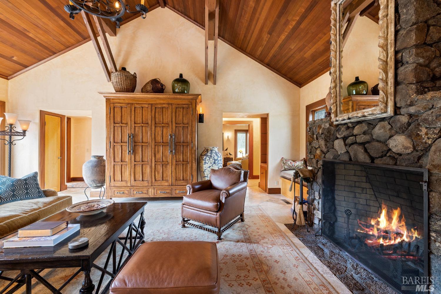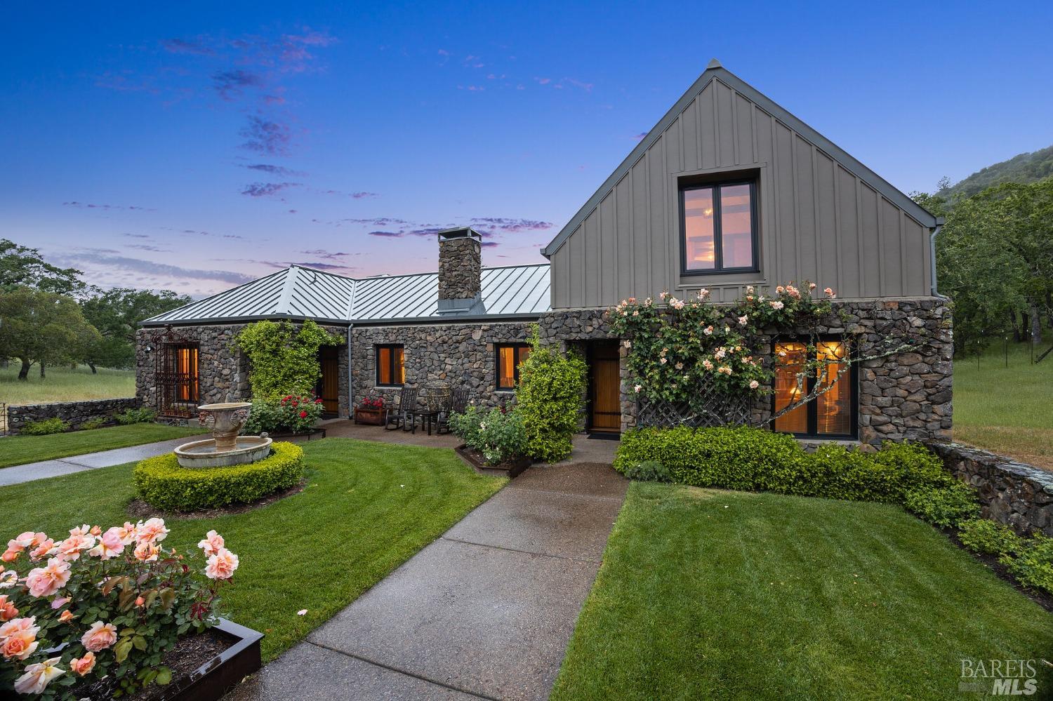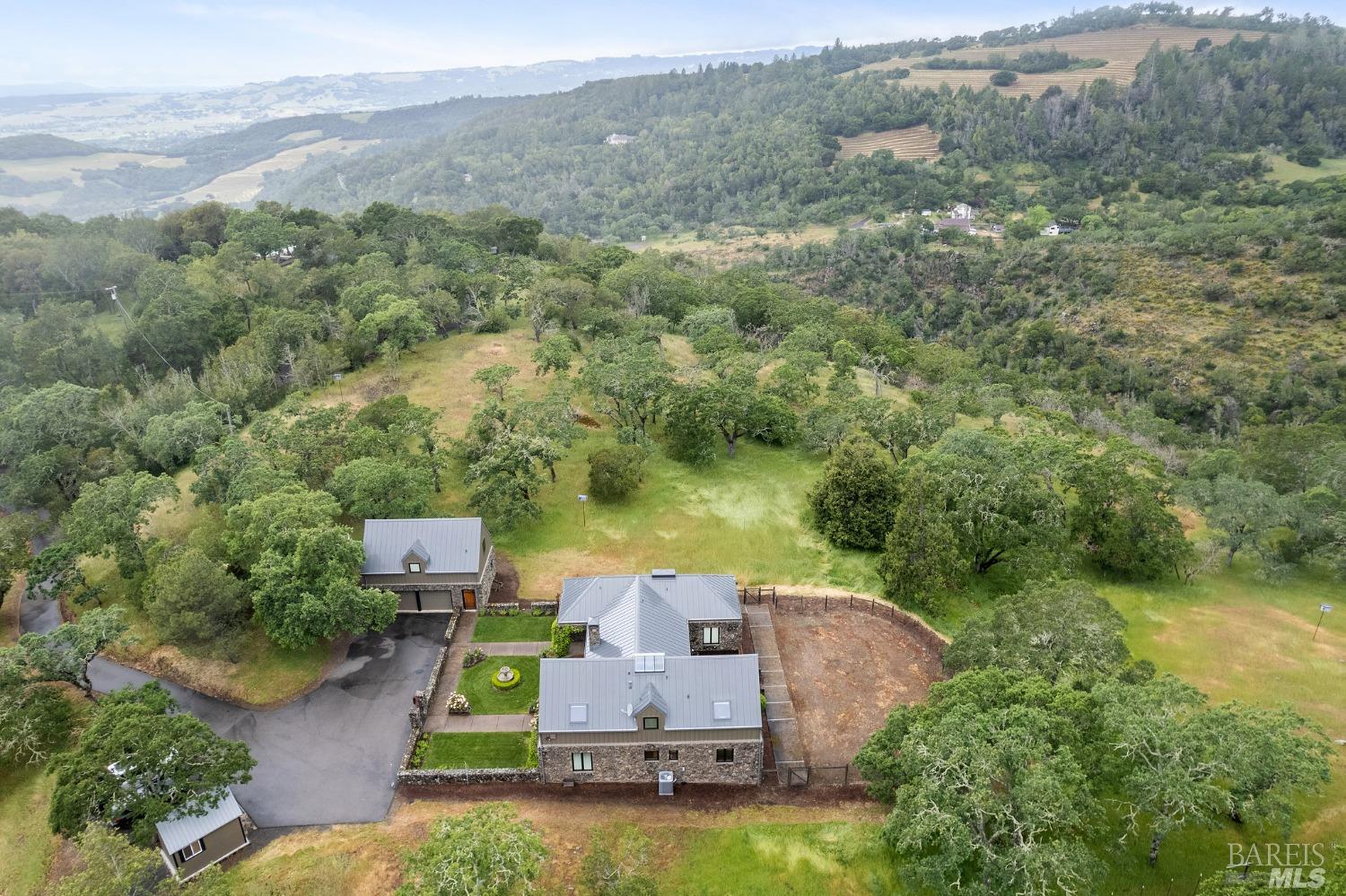 Classically designed, traditionally styled, & immaculately maintained one of a kind Wine Country Estate designed by famed architect Jim Gillam, partner of Howard Backen. Situated on over 15 acres of secluded lands w/sweeping views, majestic Oaks, open meadows, & rolling hills. Complete privacy w/double gated entry in The Ranch, yet less than 10 minutes to the historic Plaza. Tastefully remodeled with the highest quality finishes & every detail is perfection. Understated sophisticated elegance at its best. Interior features include first floor primary, open beam & cathedral ceilings throughout, custom cabinetry, dramatic double height stone fireplace, & picture perfect views from every window. Chef's kitchen w/Viking appliances, two wine refrigerators, custom cabinetry, & exotic stone & woods. Generous size primary bedroom w/the most spectacular custom closet design. Elegant & understated primary bath w/high end finishes. Sonoma fieldstone construction w/Zinc metal roof, antique iron work details, stone walls & popular U-shaped layout creating a large back patio accessed by the entire main level. 100 full redundant power generator that runs on LP, 5 ton variable speed heating & A/C. Loft above garage. Workshop in garage. Room for pool, more outbuildings, etc. Garden shed.
