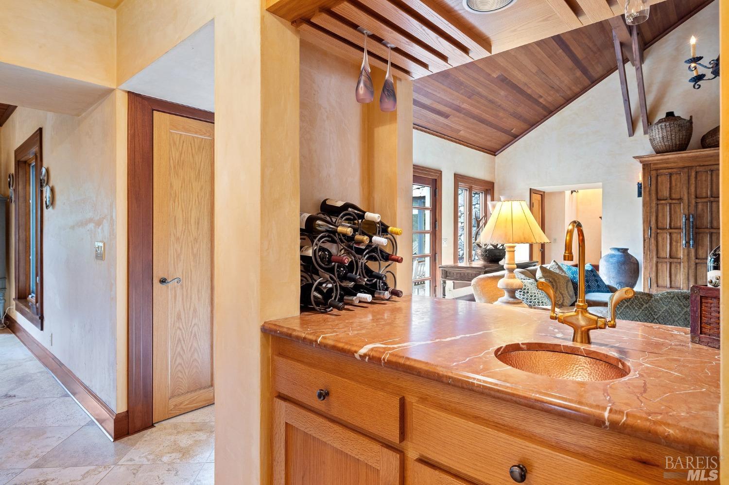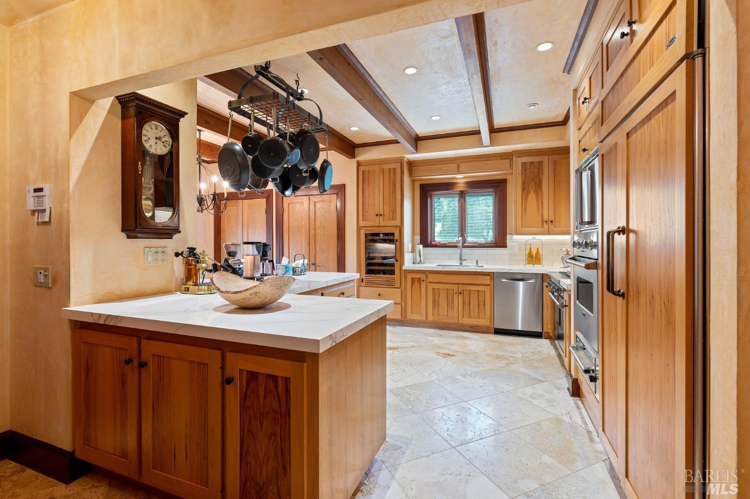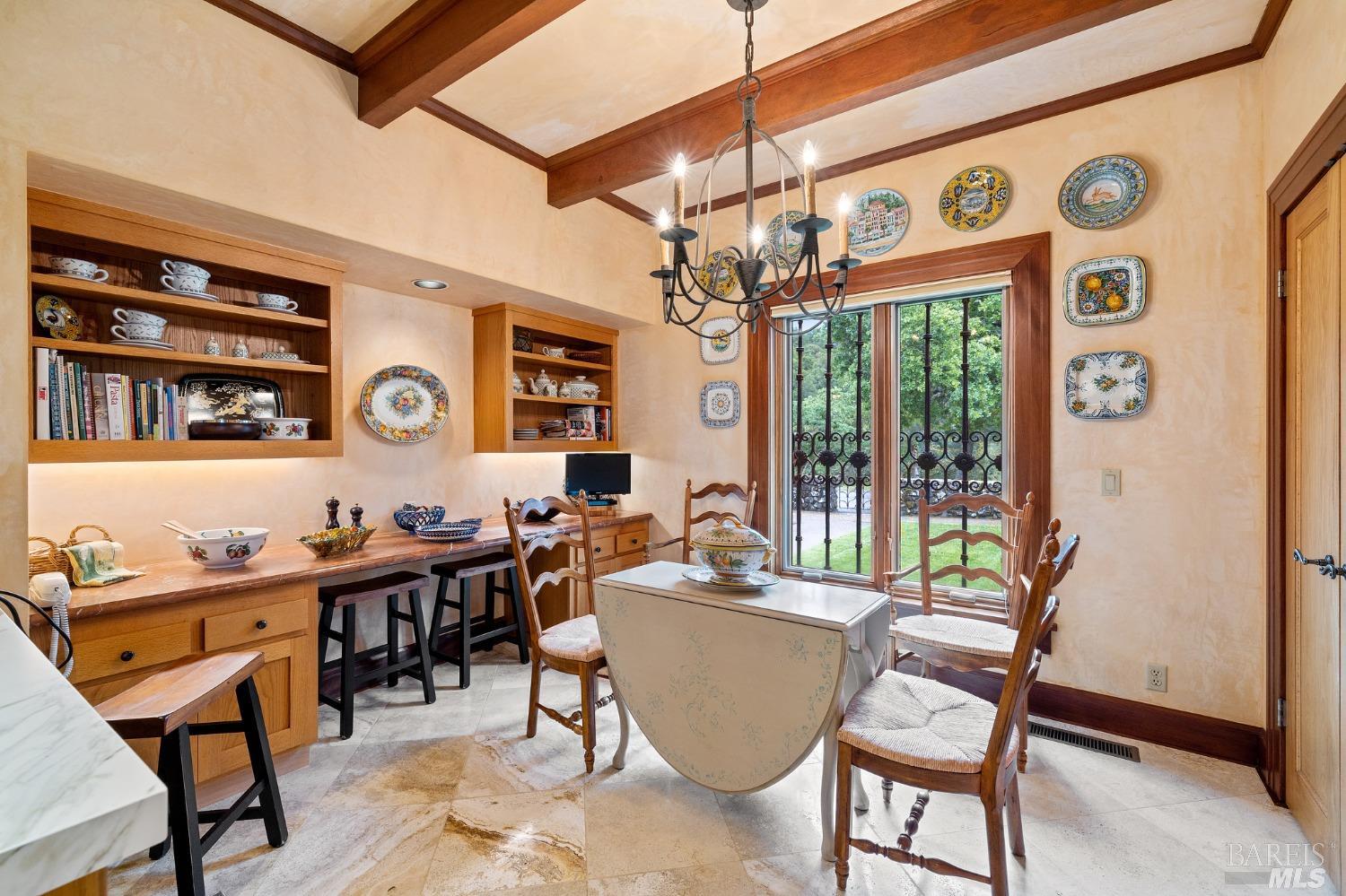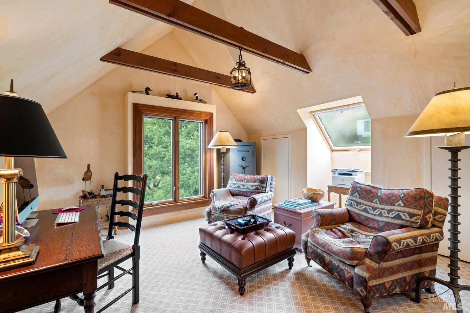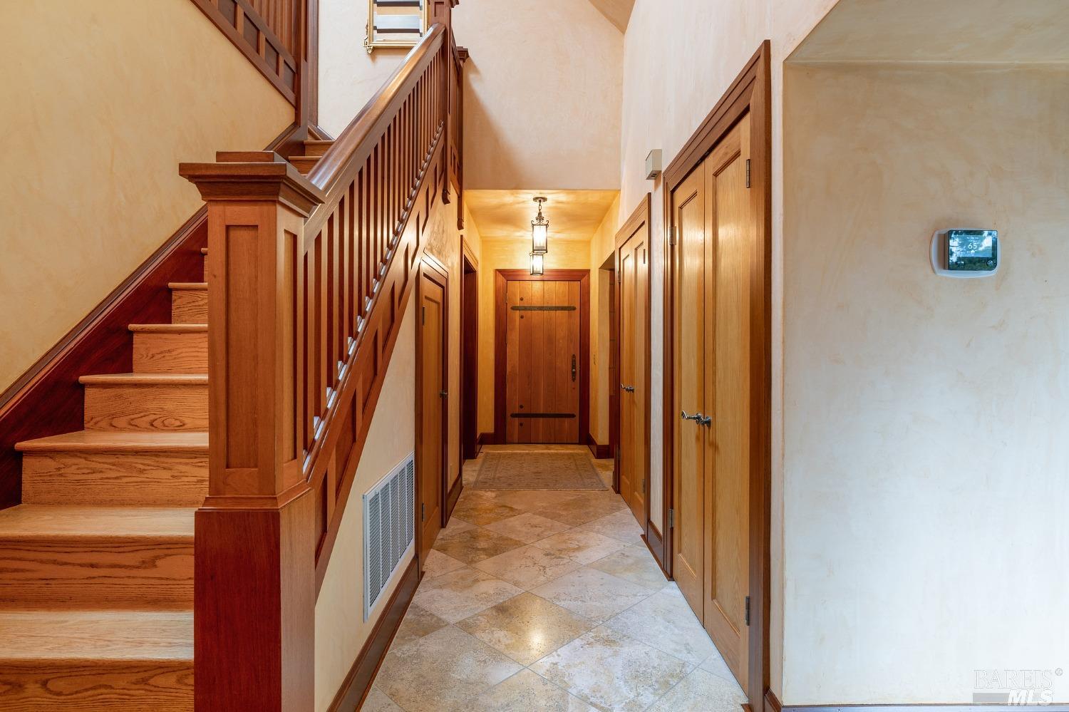 Classically designed, traditionally styled, & immaculately maintained one of a kind Wine Country Estate designed by famed architect Jim Gillam, partner of Howard Backen. Situated on over 15 acres of secluded lands w/sweeping views, majestic Oaks, open meadows, & rolling hills. Complete privacy w/double gated entry in The Ranch, yet less than 10 minutes to the historic Plaza. Tastefully remodeled with the highest quality finishes & every detail is perfection. Understated sophisticated elegance at its best. Interior features include first floor primary, open beam & cathedral ceilings throughout, custom cabinetry, dramatic double height stone fireplace, & picture perfect views from every window. Chef's kitchen w/Viking appliances, two wine refrigerators, custom cabinetry, & exotic stone & woods. Generous size primary bedroom w/the most spectacular custom closet design. Elegant & understated primary bath w/high end finishes. Sonoma fieldstone construction w/Zinc metal roof, antique iron work details, stone walls & popular U-shaped layout creating a large back patio accessed by the entire main level. 100 full redundant power generator that runs on LP, 5 ton variable speed heating & A/C. Loft above garage. Workshop in garage. Room for pool, more outbuildings, etc. Garden shed.
