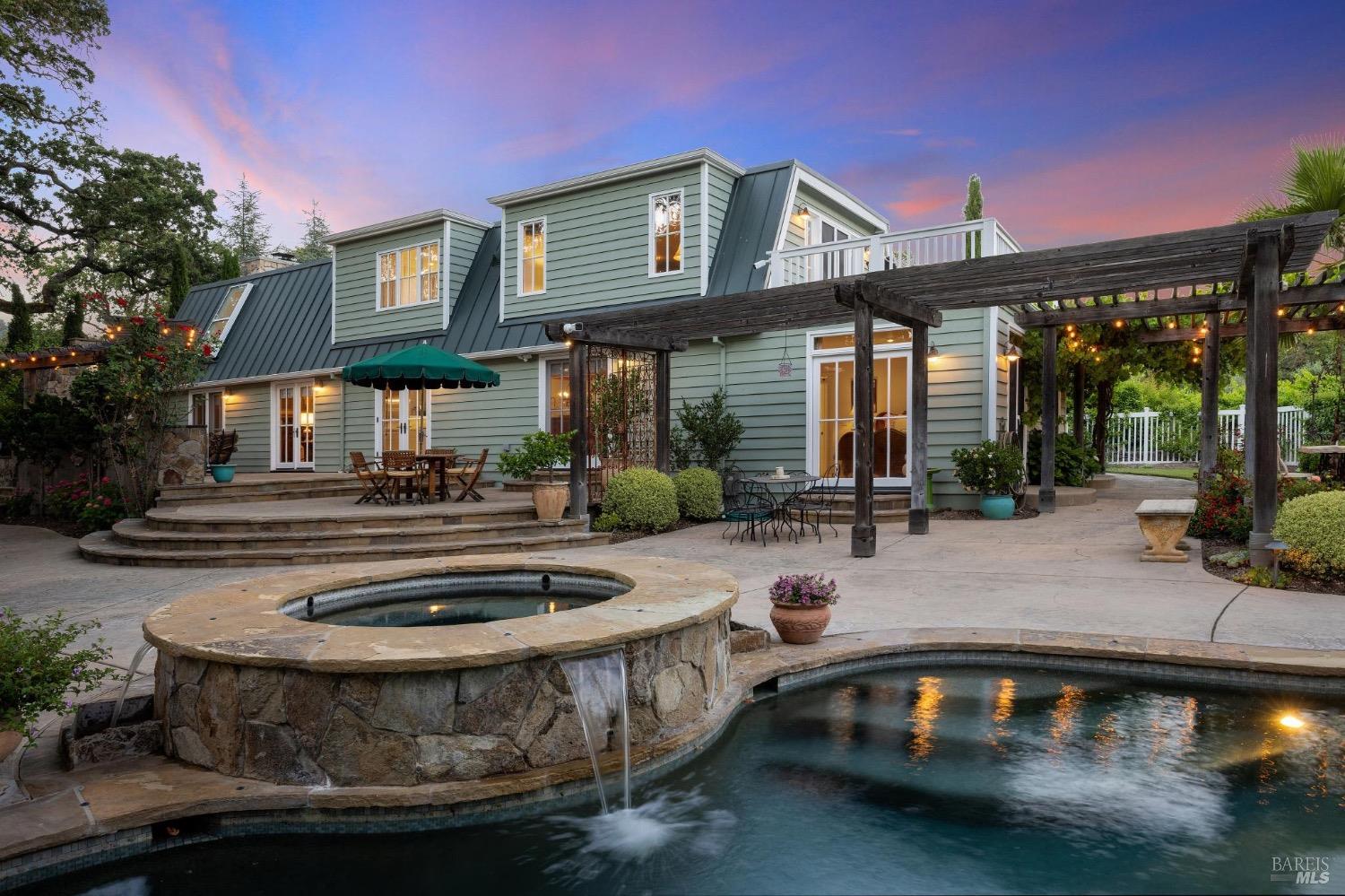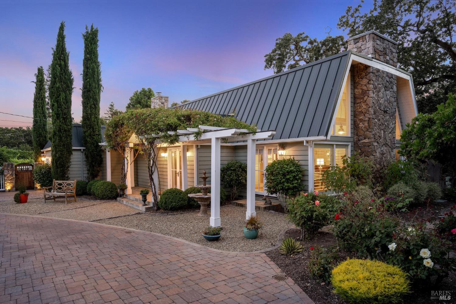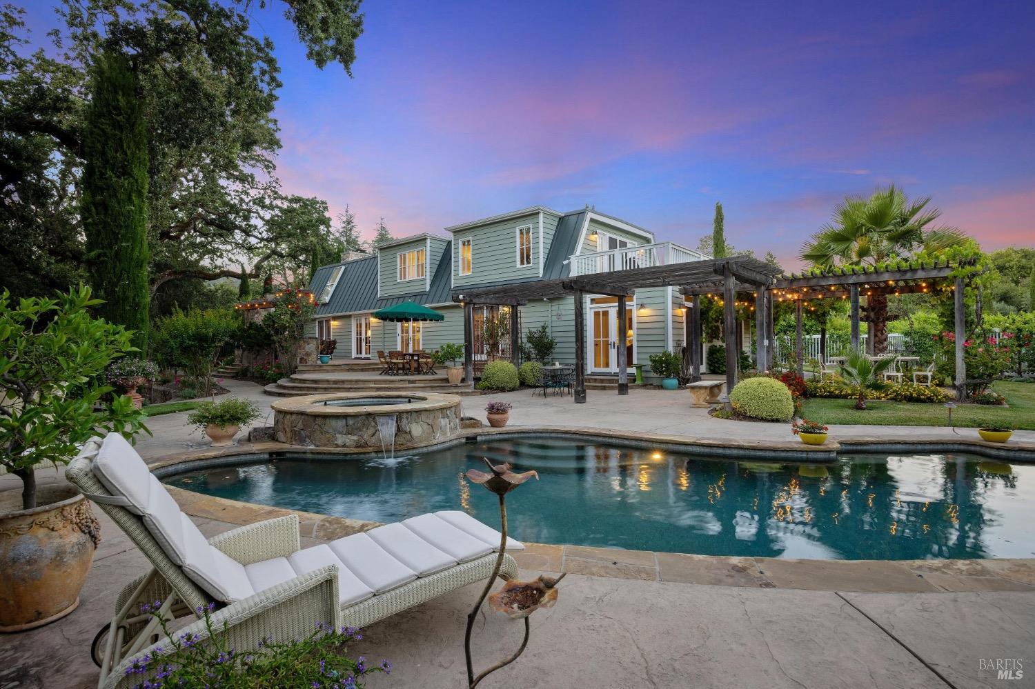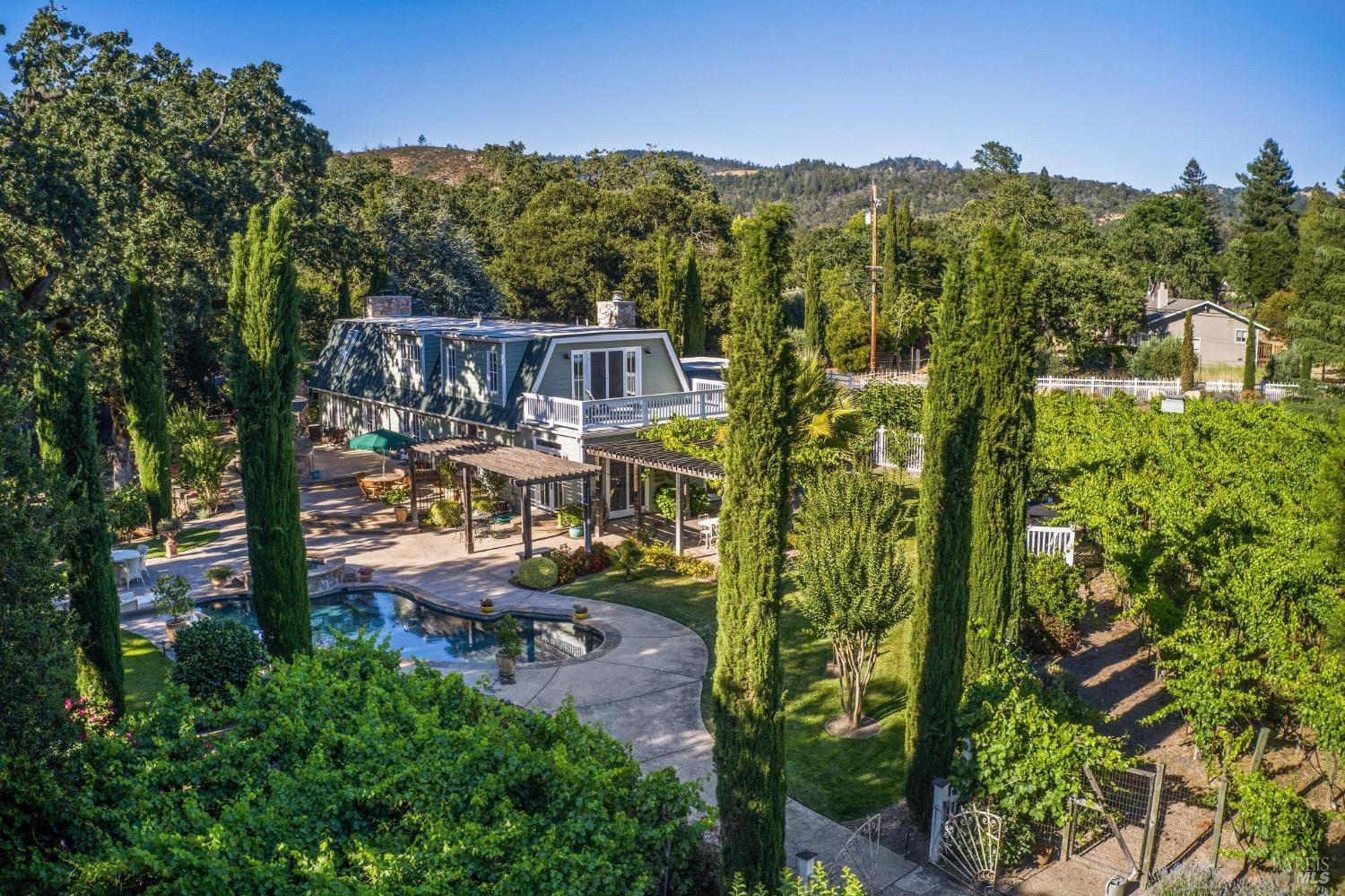 Located on one of the most desired streets of the historic Eastside, you will find this stunning 3 bedroom/2.5 bath home with 1 bedroom/ 1 bath guesthouse, wine cellar, hobby vineyard, and parklike grounds. This one checks all the boxes and you will be impressed. Interior features include hardwood floors, double height livingroom, updated & stylish finishes in kitchen and baths, primary bedroom with large balcony looking out to the hills and vineyard. Outdoor kitchen for Summer entertaining with fireplace. Look at every corner and there is a top of the line upgrade or amenity. Double gated entry, solar, generator, in ground pool & spa, charming creek with majestic Oaks abound on this gentlemens farm. Large detached guesthouse with fireplace, open beam ceiling, and screened in porch. Rarely does a property like this come avaialble. Hobby vineyard with amazing stone wine cellar. Just steps from Bartholomew Park and winery. This location can't be beat. Walk or bike to 7 different neighborhood wineries, the plaza and all Sonoma has to offer. Perfect for a full time residence or second home.