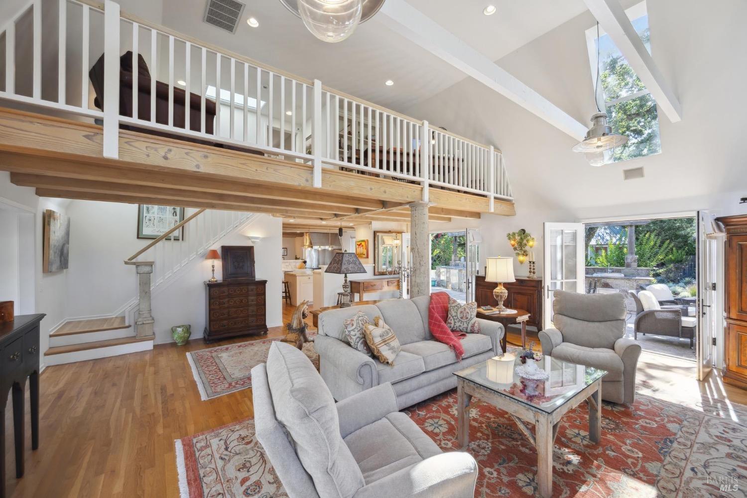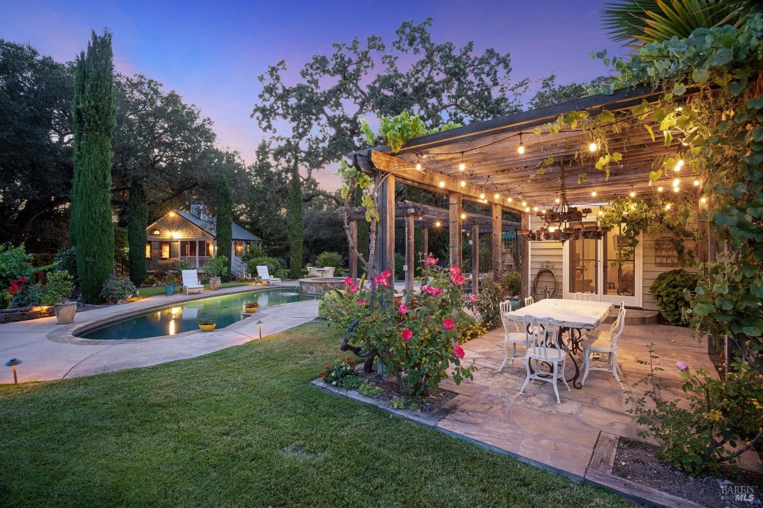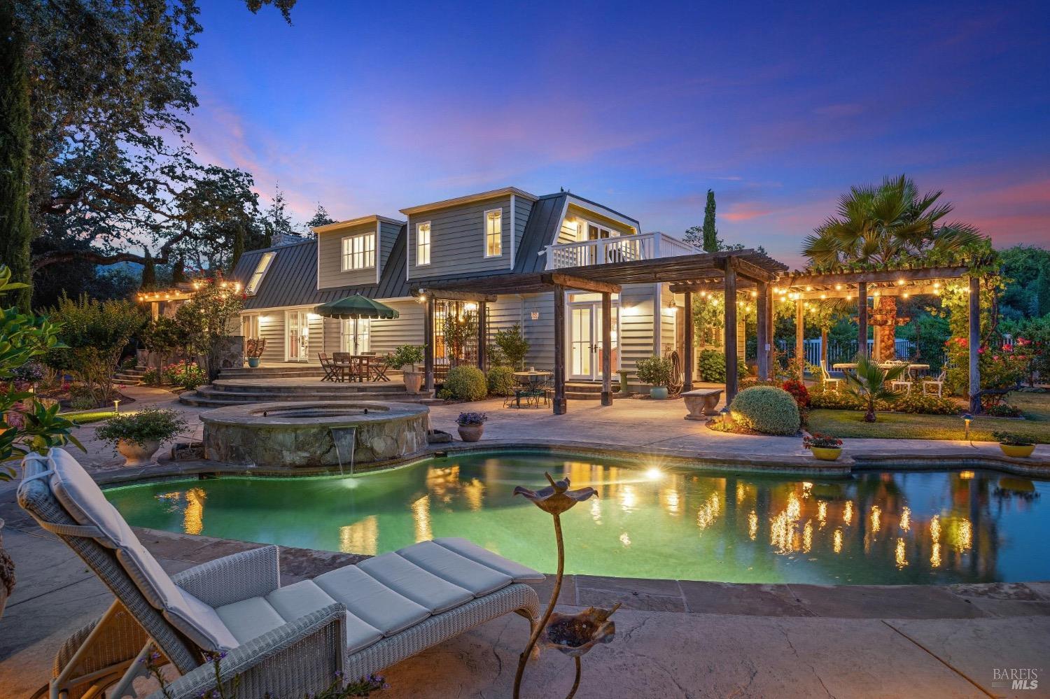 Located on one of the most desired streets of the historic Eastside, you will find this stunning 3 bedroom/2.5 bath home with 1 bedroom/ 1 bath guesthouse, wine cellar, hobby vineyard, and parklike grounds. This one checks all the boxes and you will be impressed. Interior features include hardwood floors, double height livingroom, updated & stylish finishes in kitchen and baths, primary bedroom with large balcony looking out to the hills and vineyard. Outdoor kitchen for Summer entertaining with fireplace. Look at every corner and there is a top of the line upgrade or amenity. Double gated entry, solar, generator, in ground pool & spa, charming creek with majestic Oaks abound on this gentlemens farm. Large detached guesthouse with fireplace, open beam ceiling, and screened in porch. Rarely does a property like this come avaialble. Hobby vineyard with amazing stone wine cellar. Just steps from Bartholomew Park and winery. This location can't be beat. Walk or bike to 7 different neighborhood wineries, the plaza and all Sonoma has to offer. Perfect for a full time residence or second home.