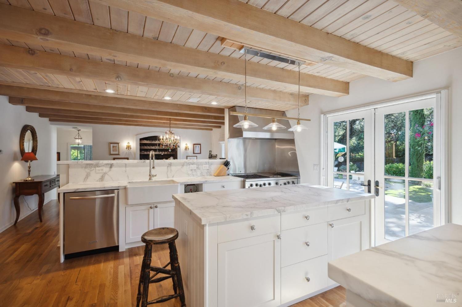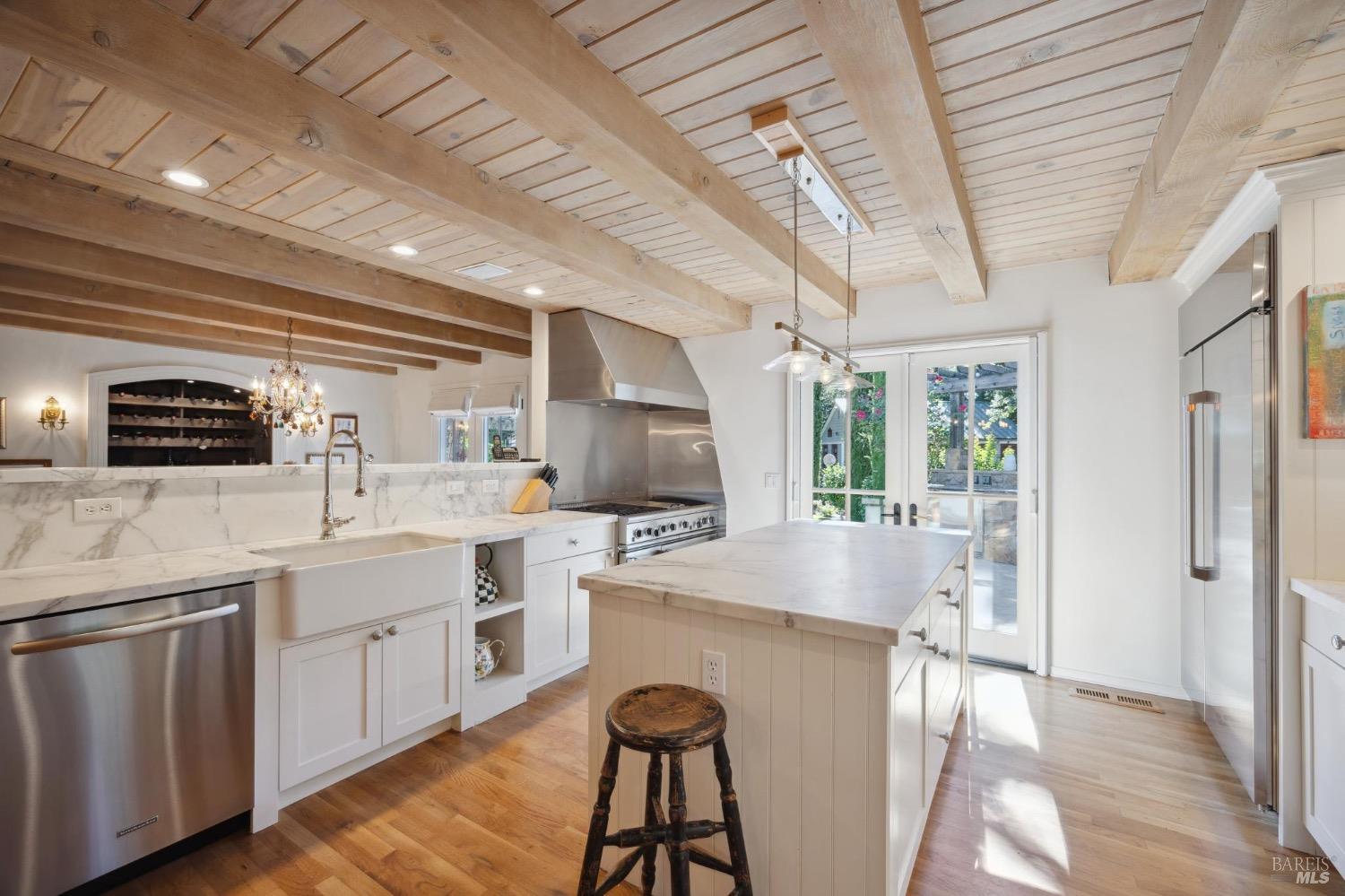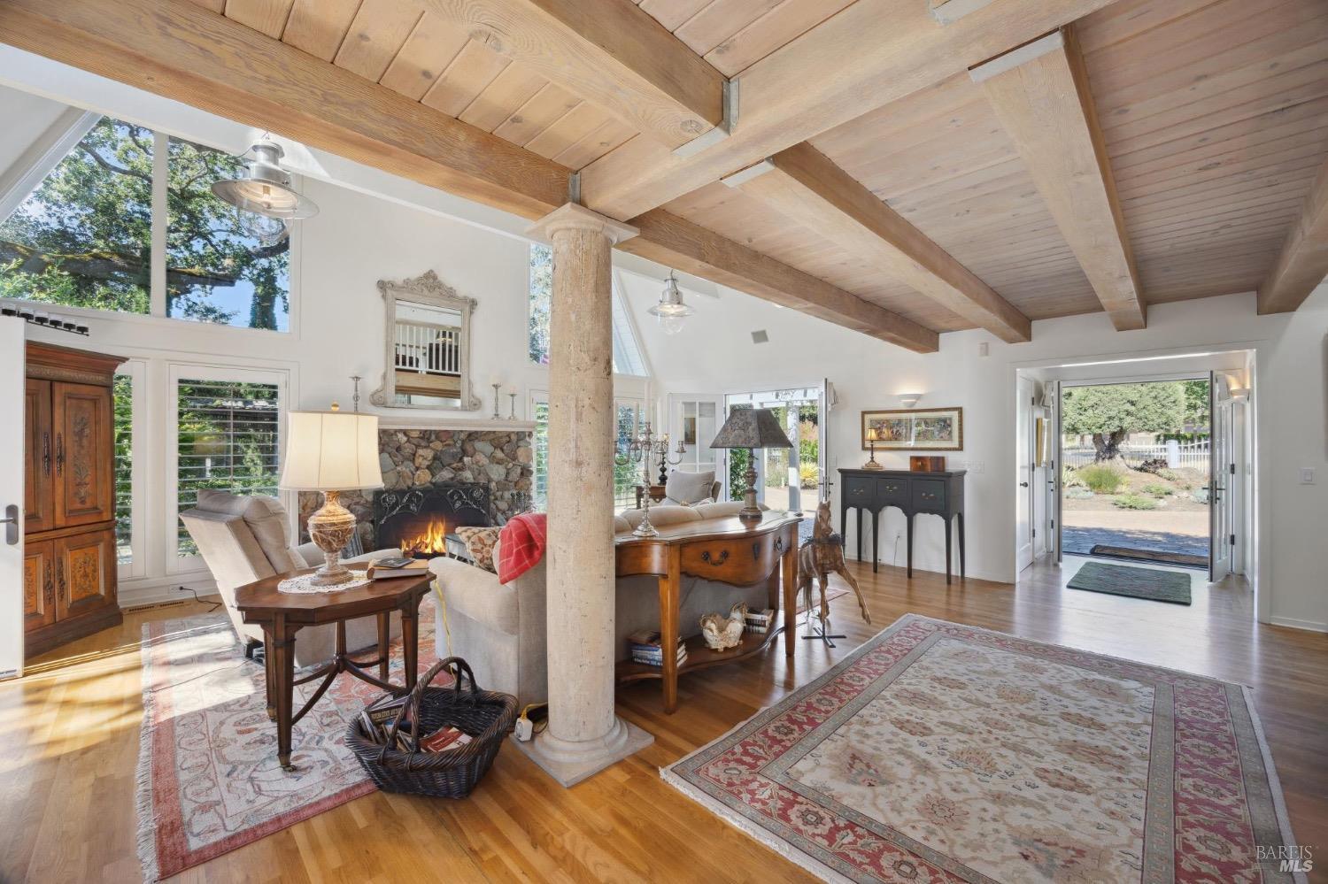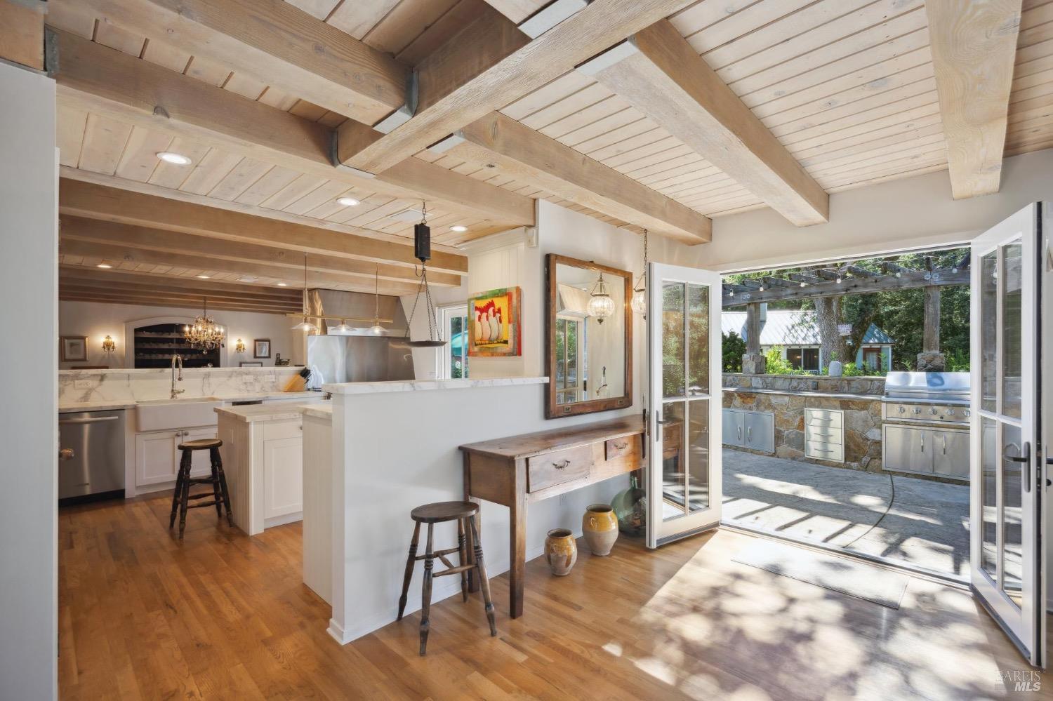 Located on one of the most desired streets of the historic Eastside, you will find this stunning 3 bedroom/2.5 bath home with 1 bedroom/ 1 bath guesthouse, wine cellar, hobby vineyard, and parklike grounds. This one checks all the boxes and you will be impressed. Interior features include hardwood floors, double height livingroom, updated & stylish finishes in kitchen and baths, primary bedroom with large balcony looking out to the hills and vineyard. Outdoor kitchen for Summer entertaining with fireplace. Look at every corner and there is a top of the line upgrade or amenity. Double gated entry, solar, generator, in ground pool & spa, charming creek with majestic Oaks abound on this gentlemens farm. Large detached guesthouse with fireplace, open beam ceiling, and screened in porch. Rarely does a property like this come avaialble. Hobby vineyard with amazing stone wine cellar. Just steps from Bartholomew Park and winery. This location can't be beat. Walk or bike to 7 different neighborhood wineries, the plaza and all Sonoma has to offer. Perfect for a full time residence or second home.