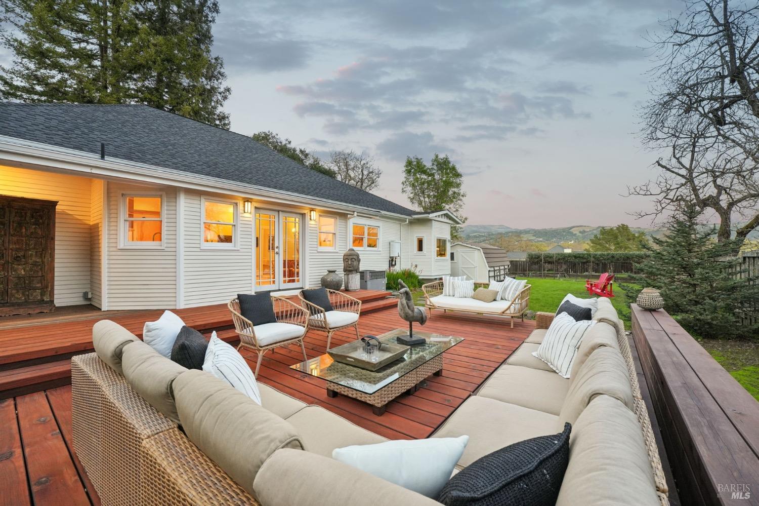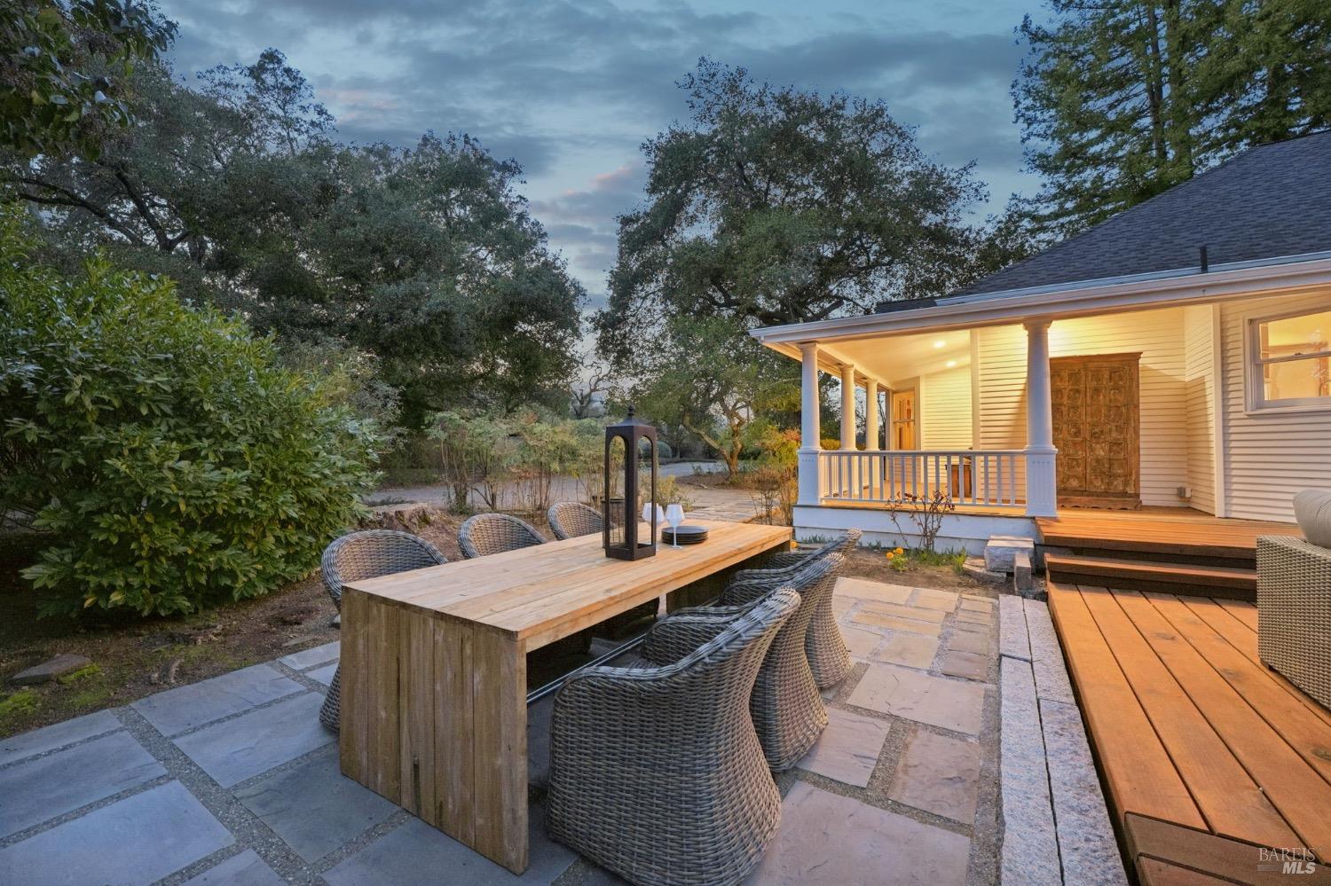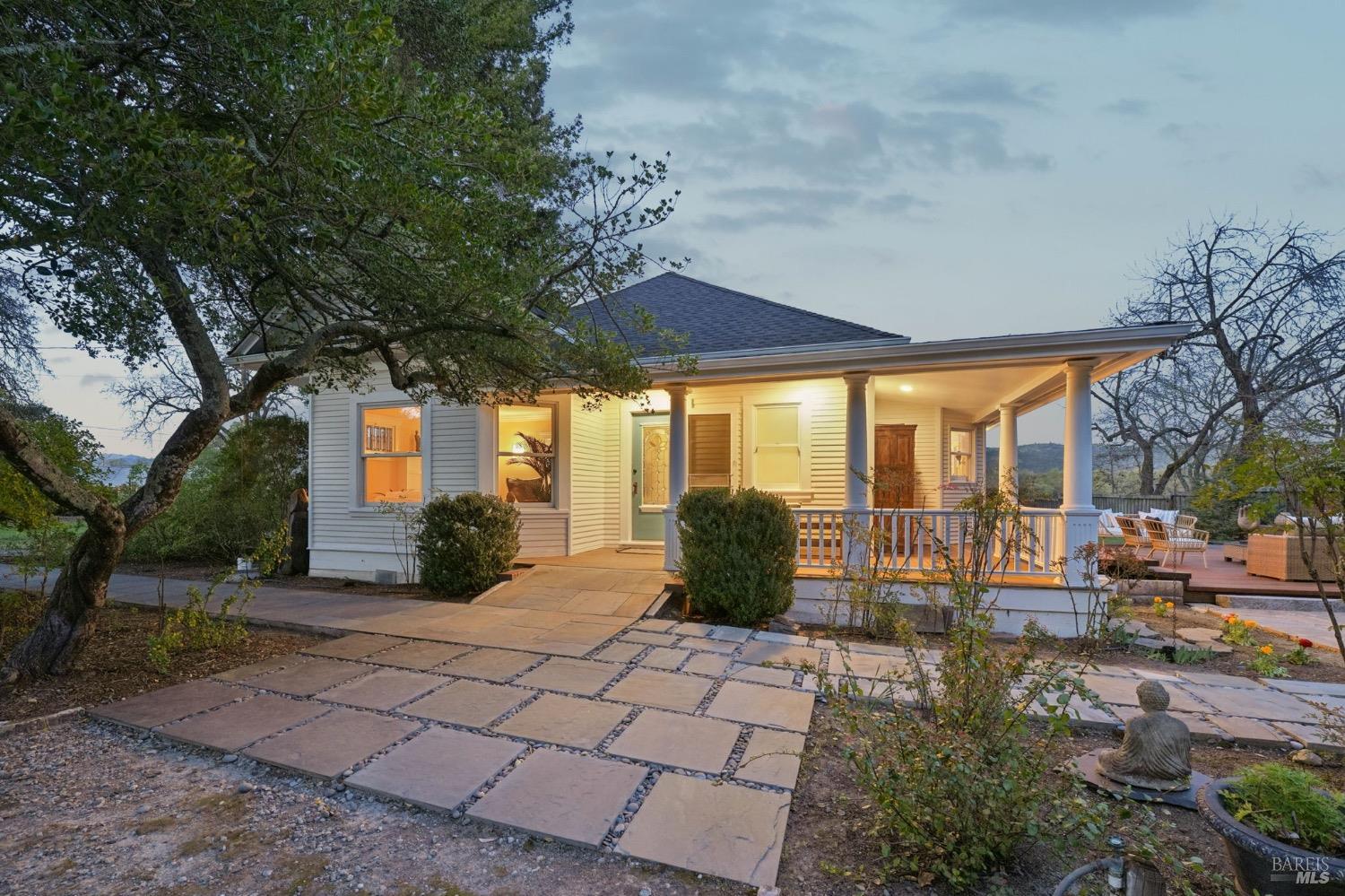 Charming Turn of the Century farmhouse situated on a large and private parcel of over 1 acre with postcard perfect panoramic views. Retaining period details such as leaded glass, wrap around covered front porch, and oversized mouldings while blending modern flair and edge, it has a timeless style that epitomizes the Sonoma Wine Country visual. Interior features include light stained wood floors, fireplace, high ceilings, updated finishes & mechanical systems, and wonderful indoor/outdoor flow. New roof, newer paint, newer bath, newer deck...a list so long you must see list of upgrades and you will see this property is ready for immediate enjoyment. Main house is a 3 bedroom/2 full bath plus attached to it is a 1 bedroom/1 full bath cottage. The oversized deck lives like a second living room under the stars. Wine collectors will love the oversized climate controlled 2,400 bottle wine cellar. The privacy of country living yet only a few minutes to both downtown Glen Ellen, downtown Sonoma, a number of regional parks & dedicated open spaces, and more than a handful of tasting rooms just a bike ride away. An absolute gem and what most buyers envision when they think of the ideal Wine Country Escape. Move right in and start enjoying from day one.
