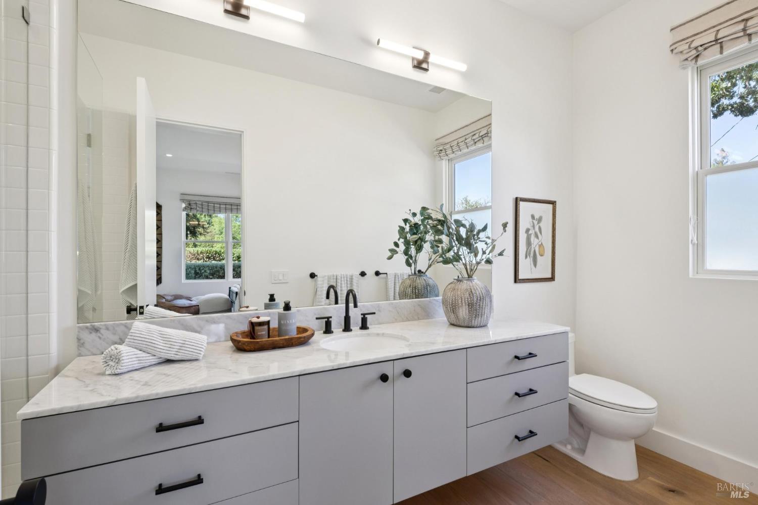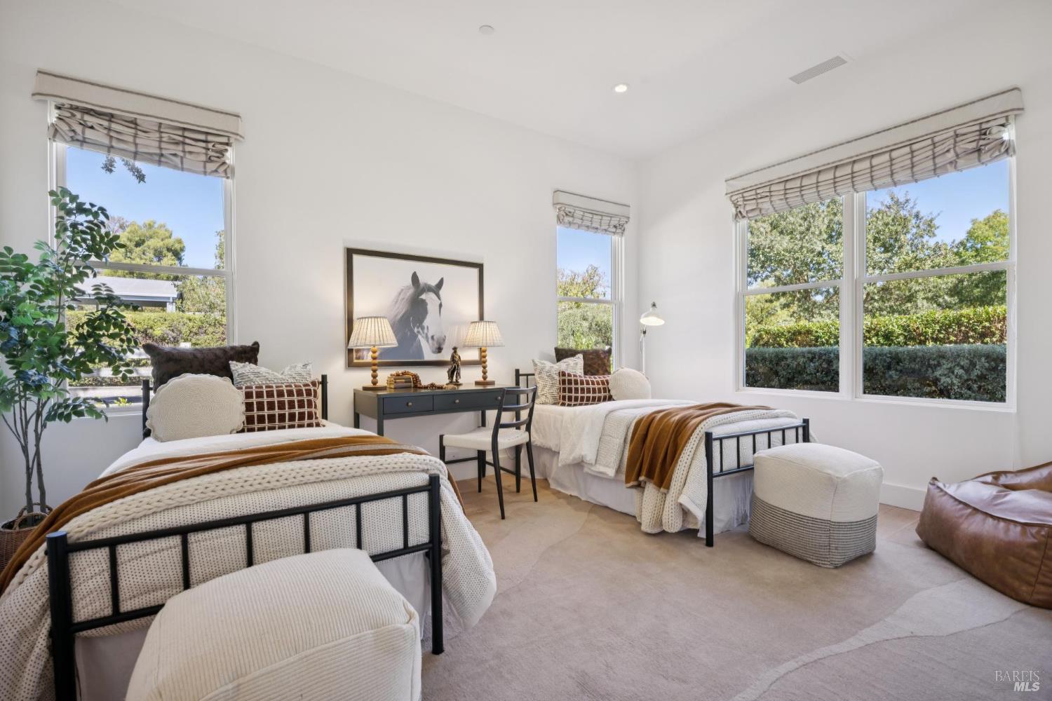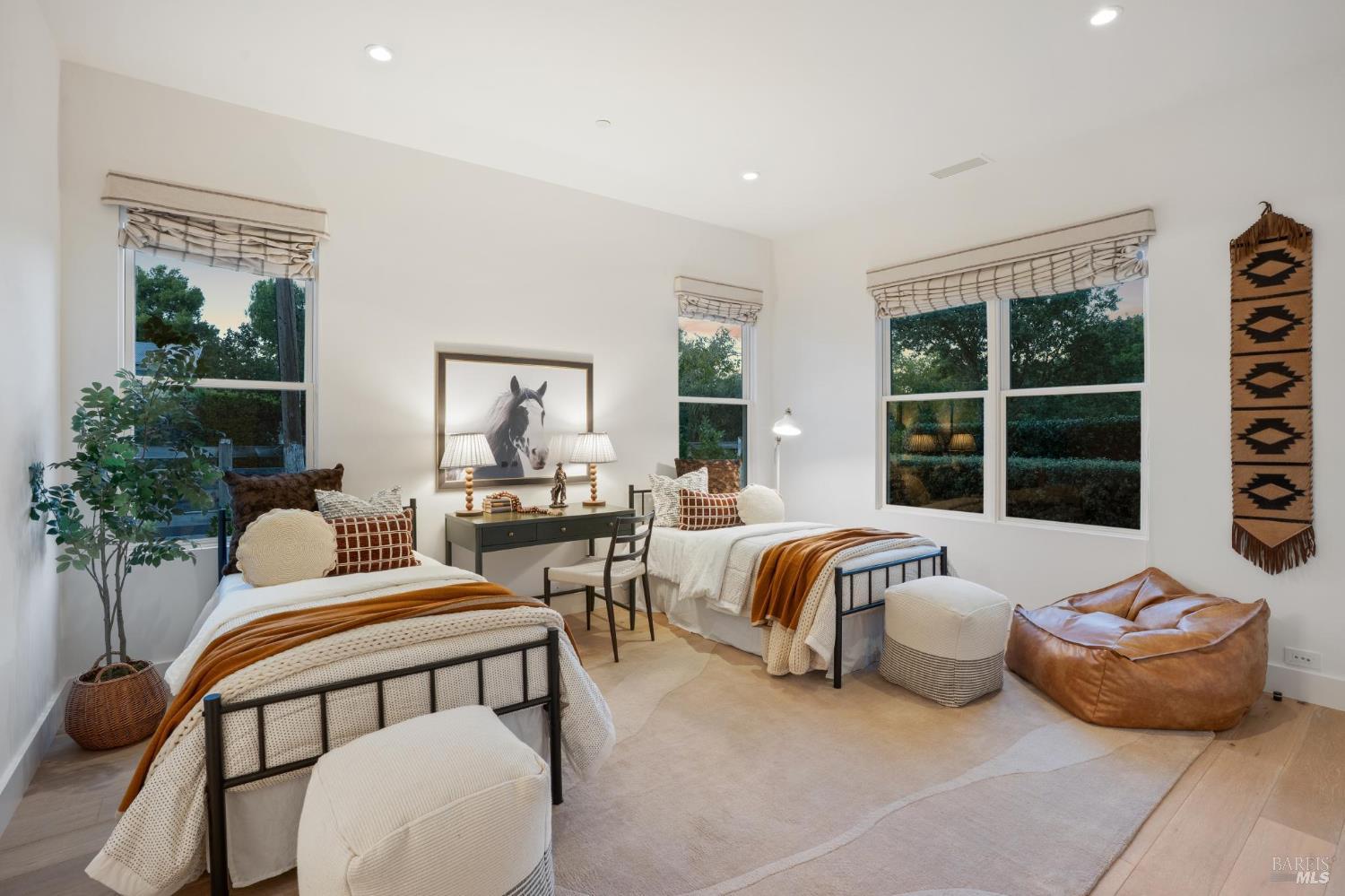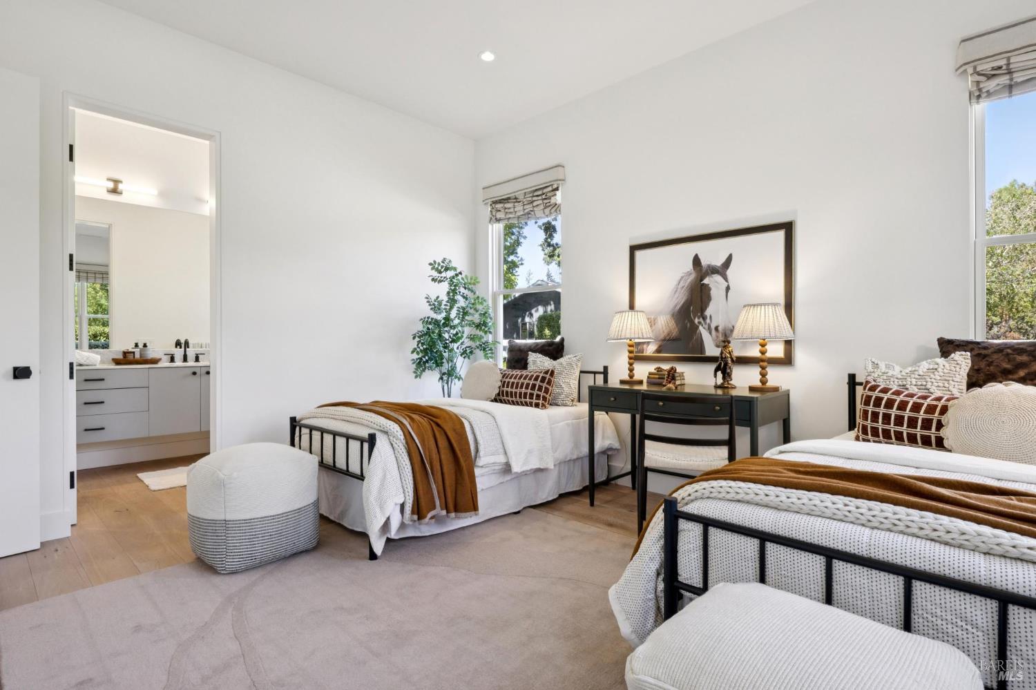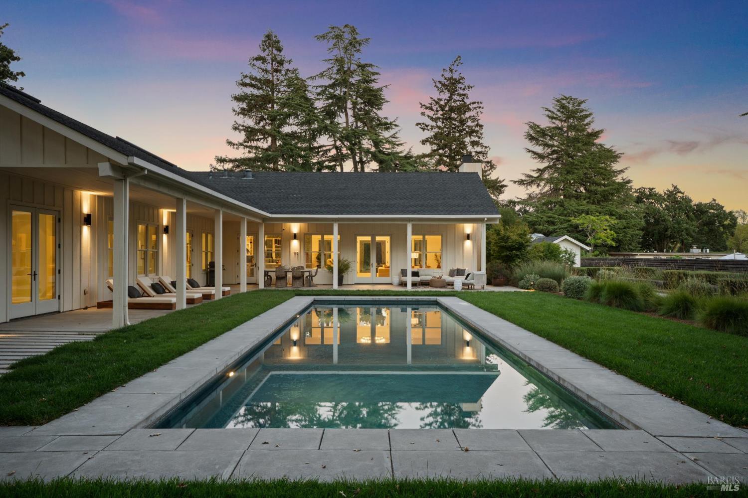 Just minutes from Sonoma Plaza, this private modern farmhouse blends Wine Country luxury with serene, bucolic surroundings. Beyond your gated entry, a tree-lined drive welcomes you home to an estate designed for both relaxation and entertaining. Inside, soaring ceilings and exceptional craftsmanship create a warm, open flow. The great room features spacious living and dining areas anchored by a fireplace, while the chef's kitchen with a large island makes cooking and gathering effortless. Natural light pours in through expansive windows, framing views of patios, pool, gardens, and outdoor entertaining spaces. Three en-suite bedrooms provide spacious retreats with ample closets. A bonus room adds versatility ideal as a fourth bedroom, office, gym, or creative studio. The septic system is 4 bedroom so you have the ability to have an additional bedroom. With world-class wineries, restaurants, and shops just around the corner, this Eastside Sonoma gem offers the rare chance to enjoy it all...privacy, luxury, and proximity to the best of Wine Country.
