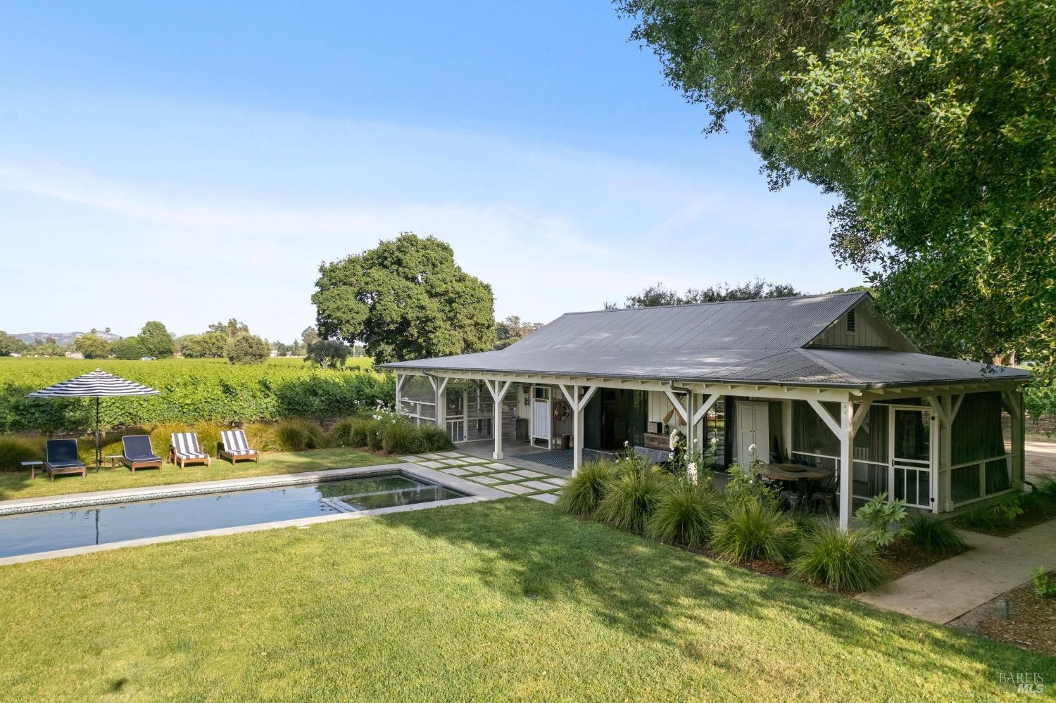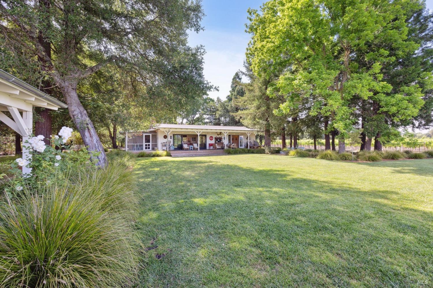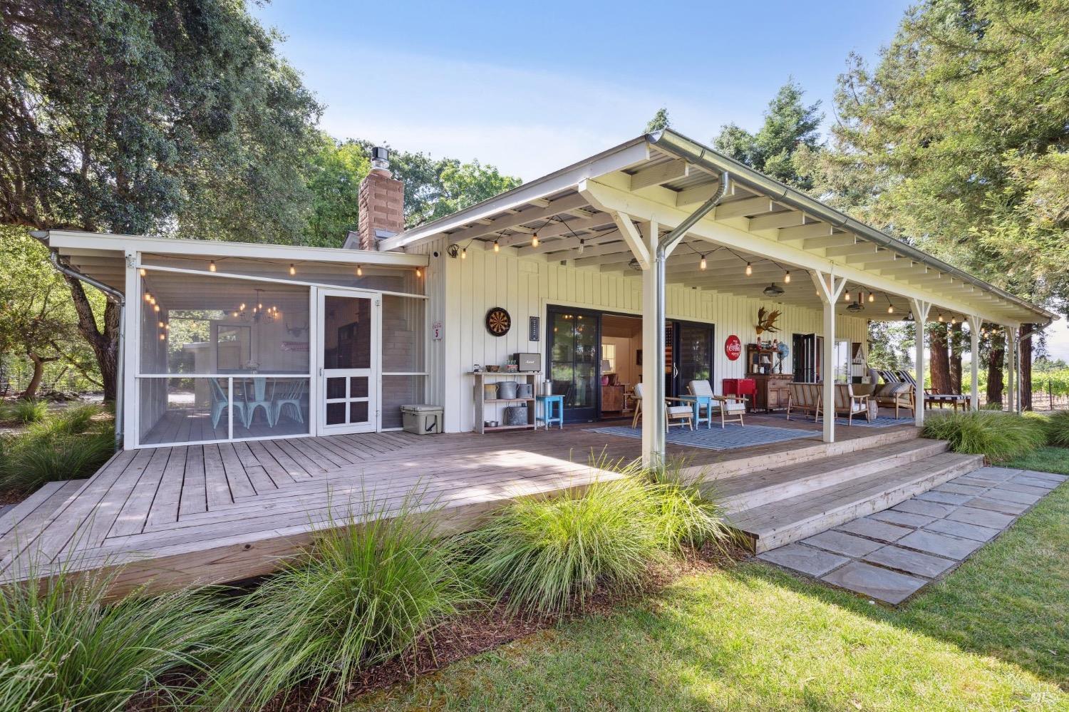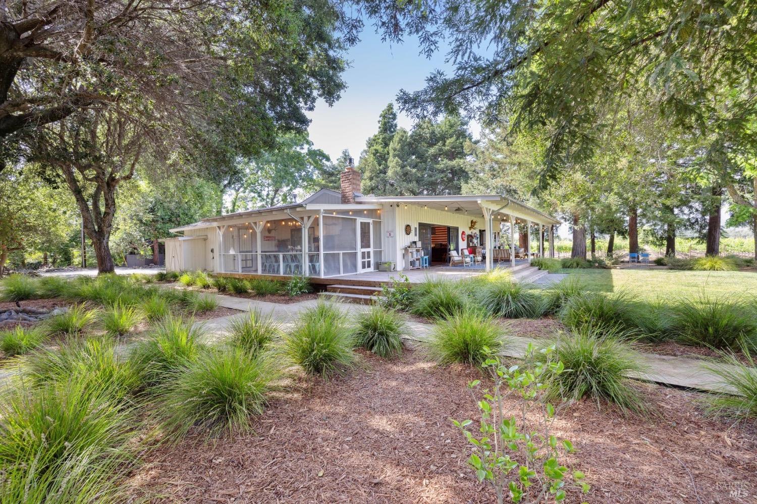 Just 45 minutes north of the Golden Gate you will find sun, fun & relaxation at Rancho Relaxo. Escape the fog and big city at this charming & stylish Wine Country Escape located on the Valley floor just a short bike ride from the historic Plaza. The setting is postcard perfect with majestic Oaks, mature landscaping, 100 yard lawn, vines encircling the property and bordered by Sonoma Creek. Two residences, the main house is a tastefully remodeled 3 bedroom/2 bath and an equally stylish 1 bedroom/2 bath guest cottage. Both residences have open beam ceilings, great natural light, and newer high end finishes. Enjoy indoor/outdoor living with 3 screened in porches, sliders off most rooms, and large covered porches. Swimming pool with spa in complete privacy with vines and rolling lawns. Story book charm and is used regularly for photoshoots. Currently as a very successful vacation rental. Solar owned.