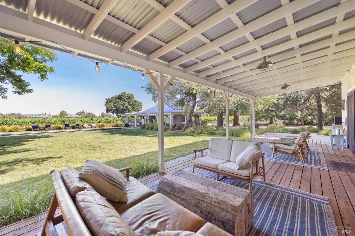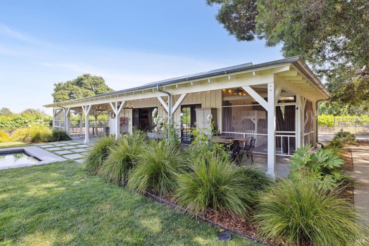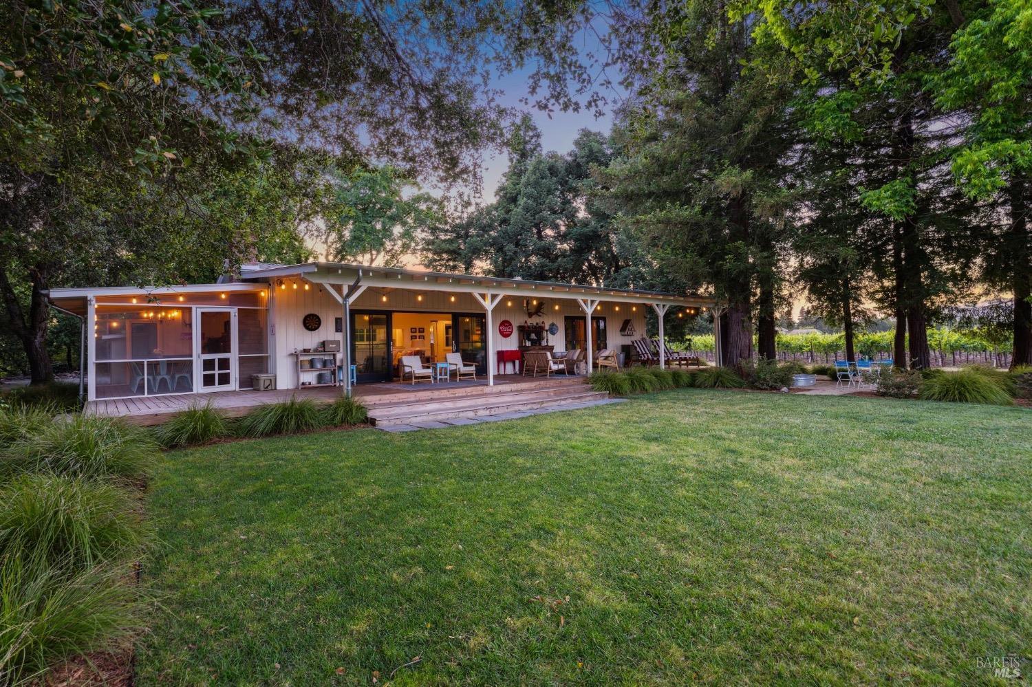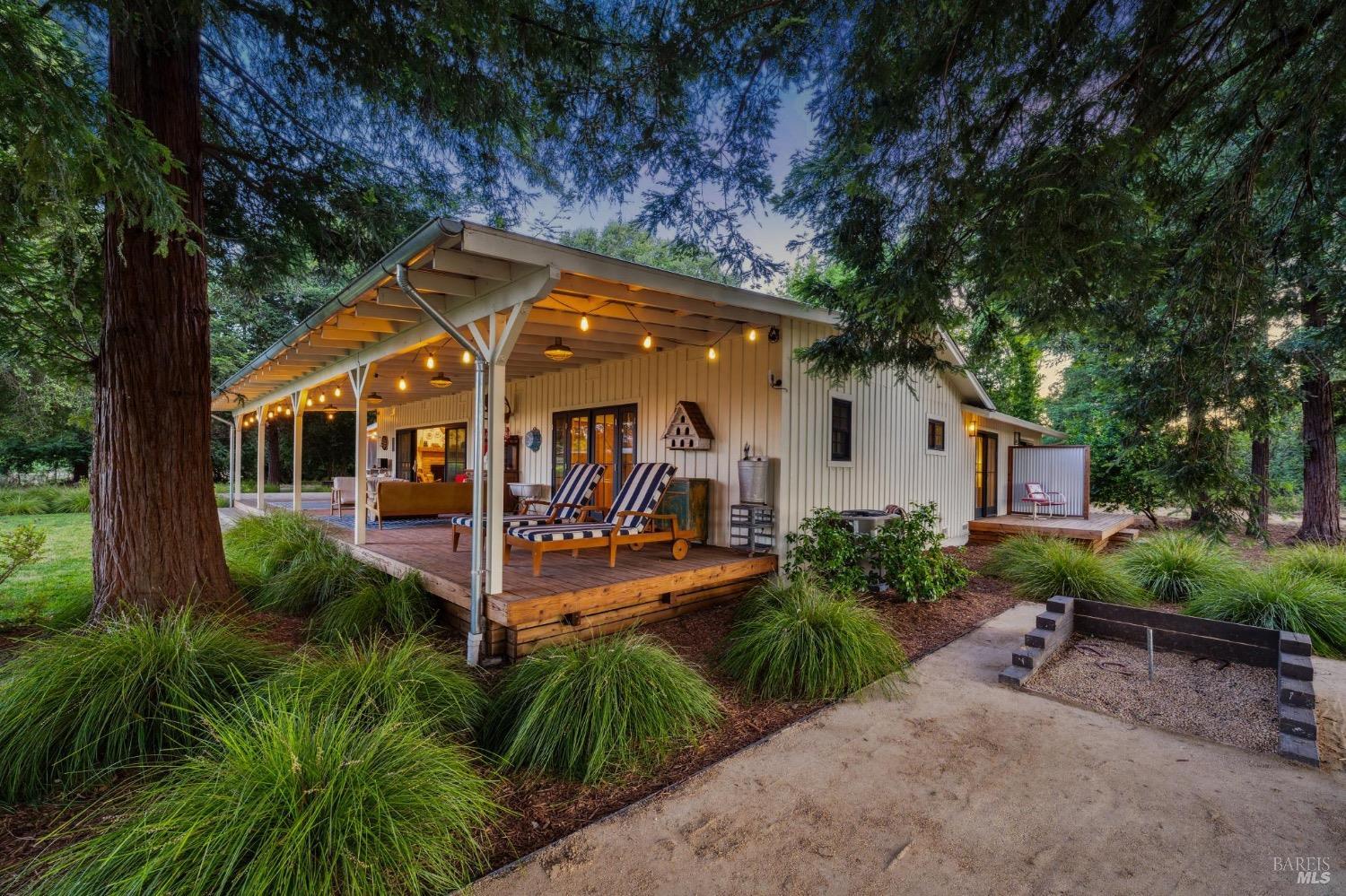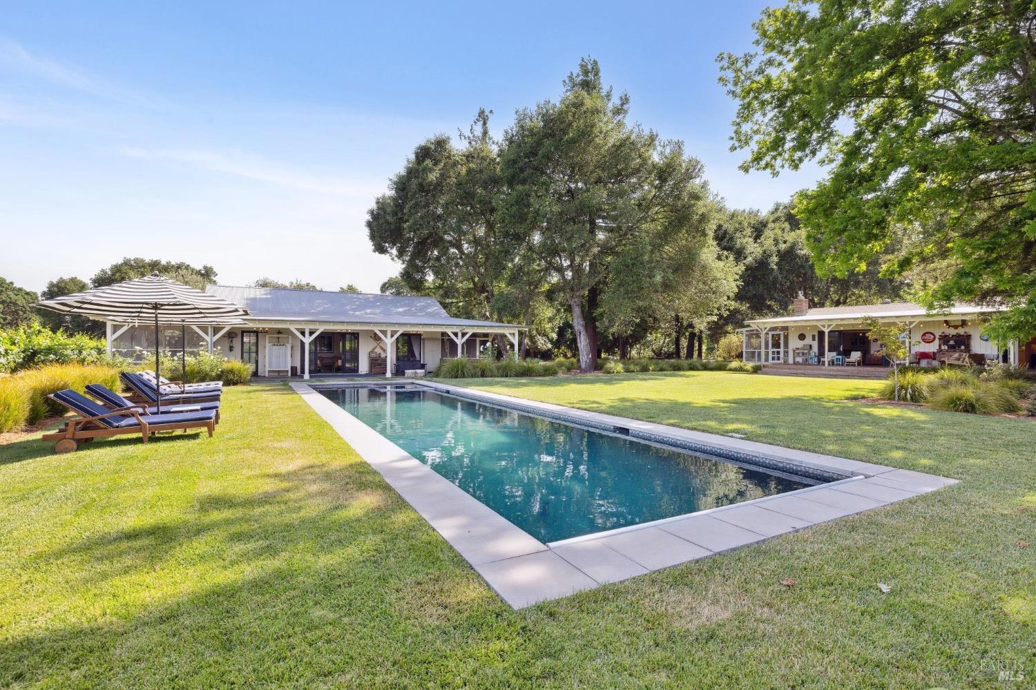Just 45 minutes north of the Golden Gate you will find sun, fun & relaxation at Rancho Relaxo. Escape the fog and big city at this charming & stylish Wine Country Escape located on the Valley floor just a short bike ride from the historic Plaza. The setting is postcard perfect with majestic Oaks, mature landscaping, 100 yard lawn, vines encircling the property and bordered by Sonoma Creek. Two residences, the main house is a tastefully remodeled 3 bedroom/2 bath and an equally stylish 1 bedroom/2 bath guest cottage. Both residences have open beam ceilings, great natural light, and newer high end finishes. Enjoy indoor/outdoor living with 3 screened in porches, sliders off most rooms, and large covered porches. Swimming pool with spa in complete privacy with vines and rolling lawns. Story book charm and is used regularly for photoshoots. Currently as a very successful vacation rental. Solar owned.