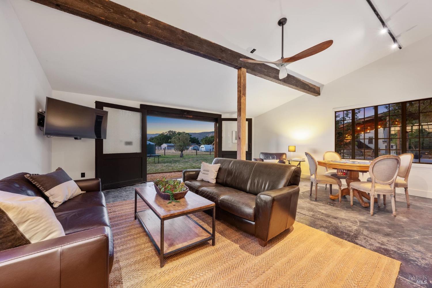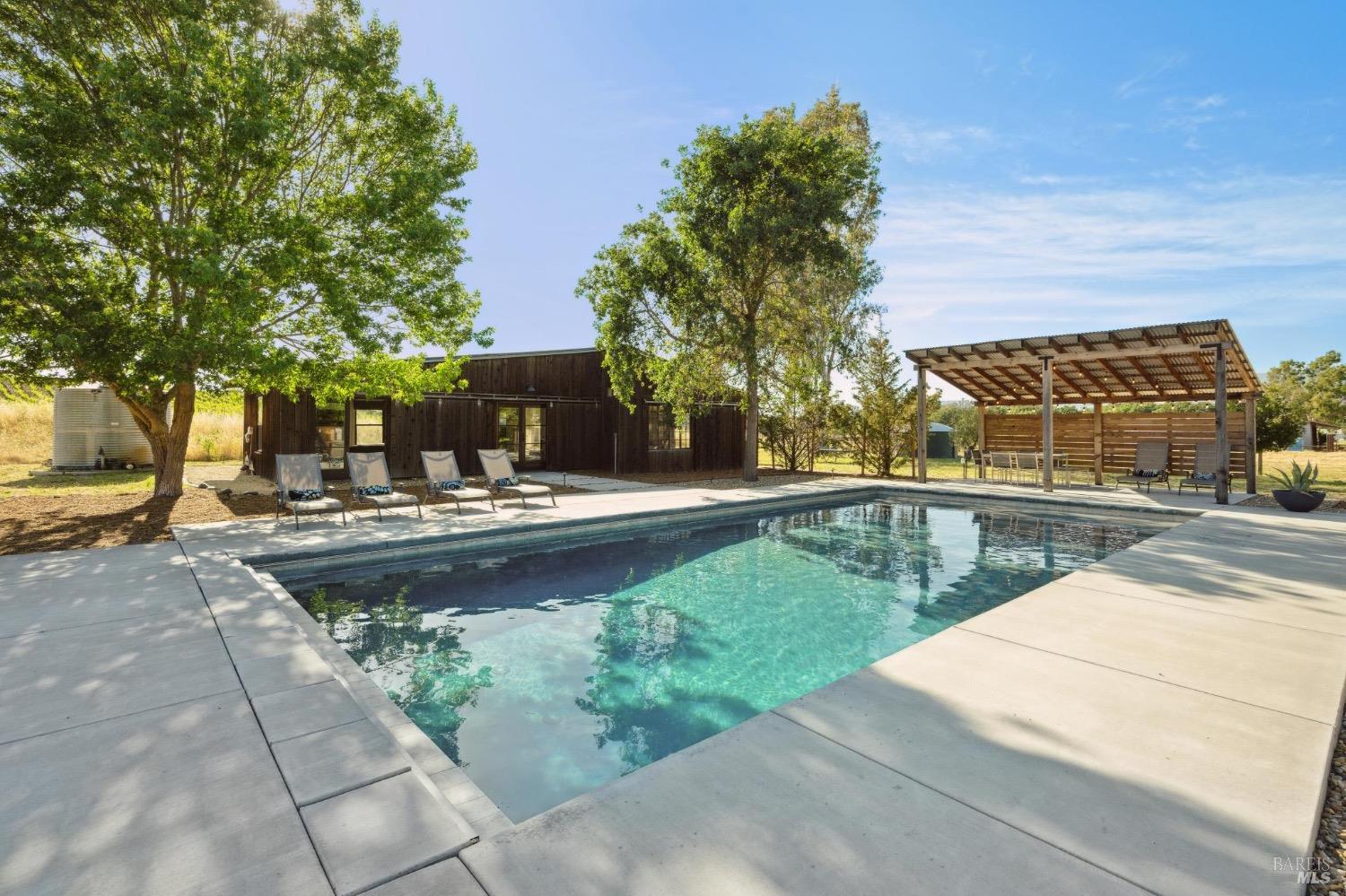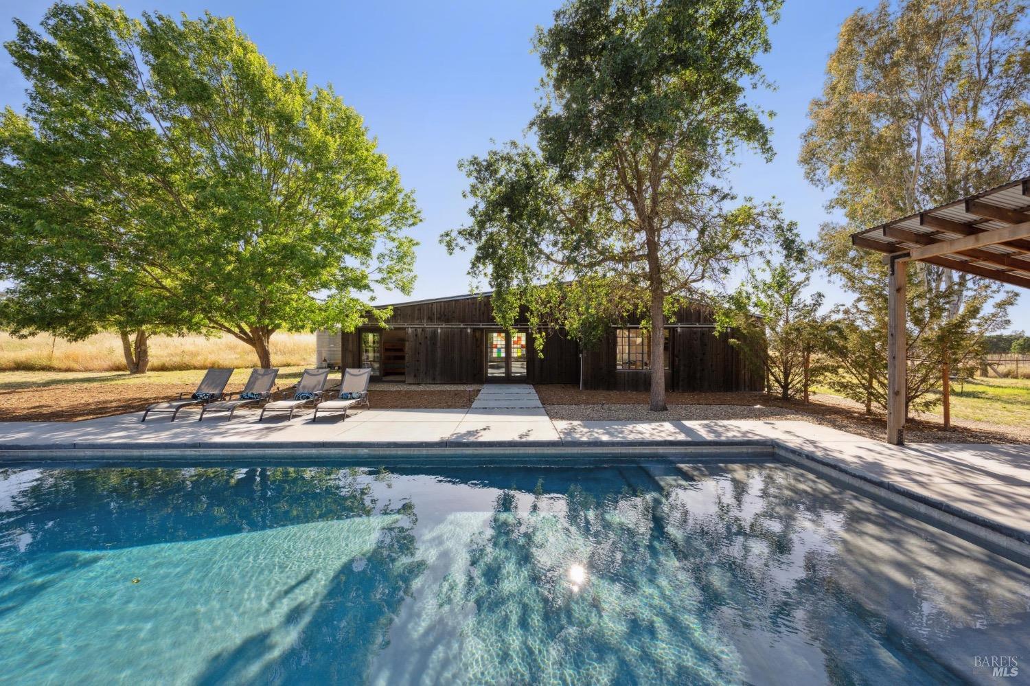 Located in the desirable Hyde/Burndale area of Eastside Sonoma, this magical property has everything most people are looking for when they come to Wine Country. Main house with 3 bed/2 bath, detached party barn with bath, nearly new in-ground swimming pool, and +/- 6 acres of gently rolling land picking up sweeping views in all directions. Lovingly renovated by known designers with impeccable taste creating a casual and chic escape that is only a short bike ride to the Plaza. Reclaimed & repurposed items have been gathered over the years during the renovation making for a stylish, chic and unique home. Interior features include hardwood floors, fireplace, barrel vaulted ceiling in livingroom, French doors leading to large covered porches, and period details. The +/-1500 square foot detached party barn has a bathroom, large bunk room, and enormous chill out space with oversized antique factory doors that open the room to the rolling hills & views. You will feel like you have escaped to a hip & cool resort. Throughout the property there are areas for everyone...fire pit, tree swing, dining under the shade of ancient Oaks, and room for the animals. Newer well and for those wanting to expand, approvals in place for an additional new septic of 4 bedroom so a total of 6 bedrooms