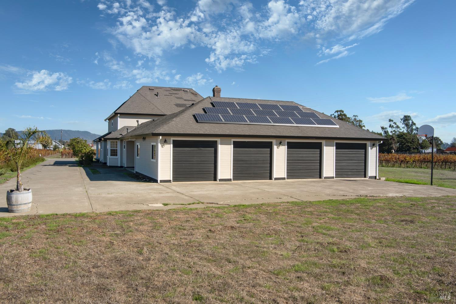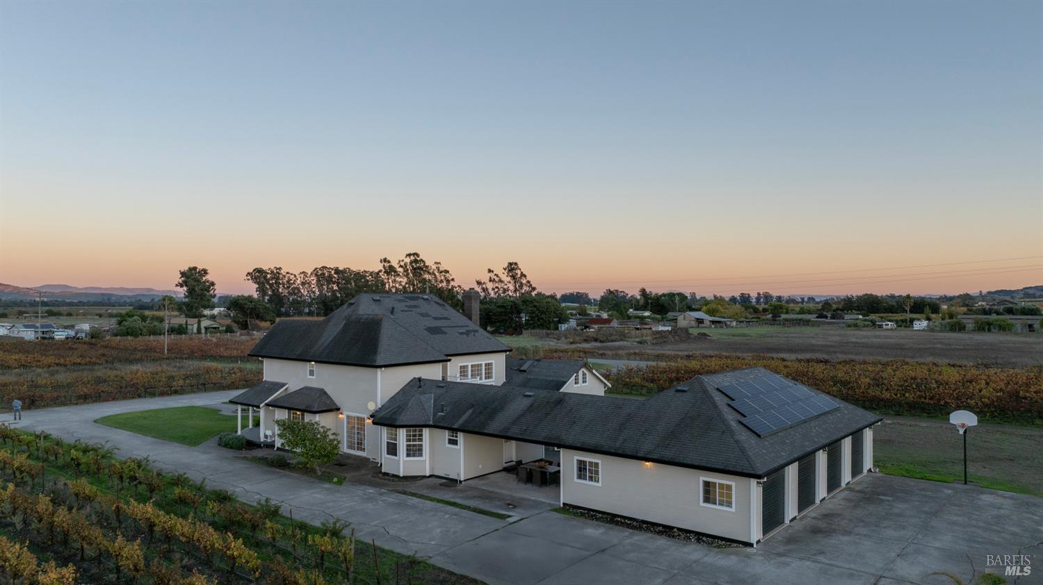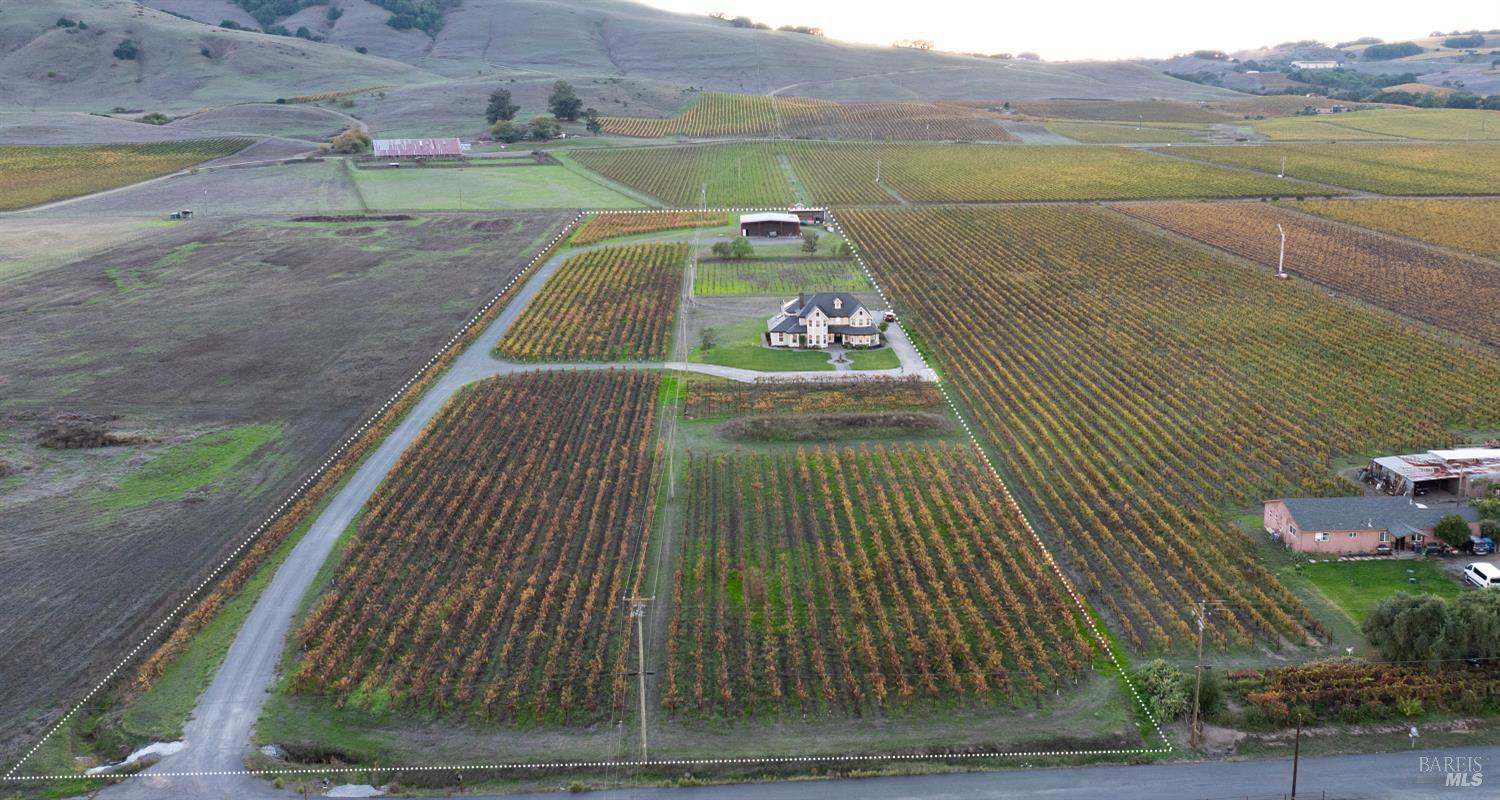 Vineyard and pastoral views from this 4 bedroom, 4 full bath Victorian style home on 10 premium acres in the heart of the Sonoma Carneros wine district! With seven acres planted to Pinot Noir, plus a 3,600+ square foot, fully insulated, entrepreneur's barn inclusive of two offices, its own full bath with washer dryer hookups, and loft space overhead. Additionally, the property boasts an oversized (1,400 sf) garage formerly used as office space and a recreation room, featuring a newly finished floor, storage lockers, and overhead attic storage. This is a dream property for the creative thinker who wants to blend family life with an abundance of work-from-home areas! Loads of versatile space, whether to accommodate horses, a pool, or a car collection, this property is a must-see! Current County use permit allows for 5,000 case wine production. Make yourself famous, or just enjoy the Sonoma good life on this hard-to-find 10 acre parcel!