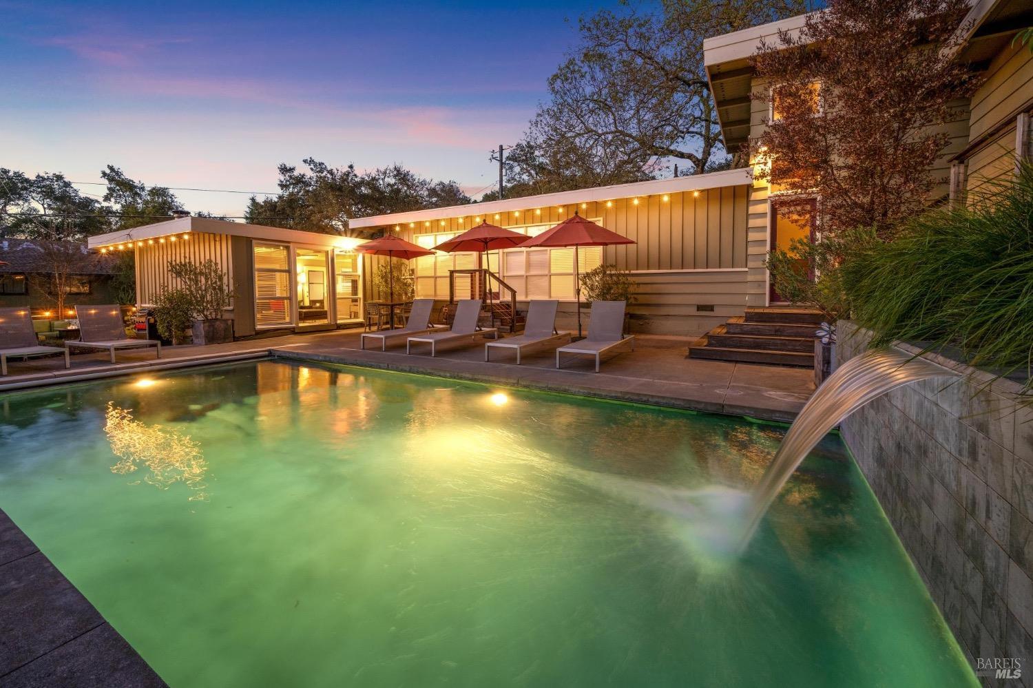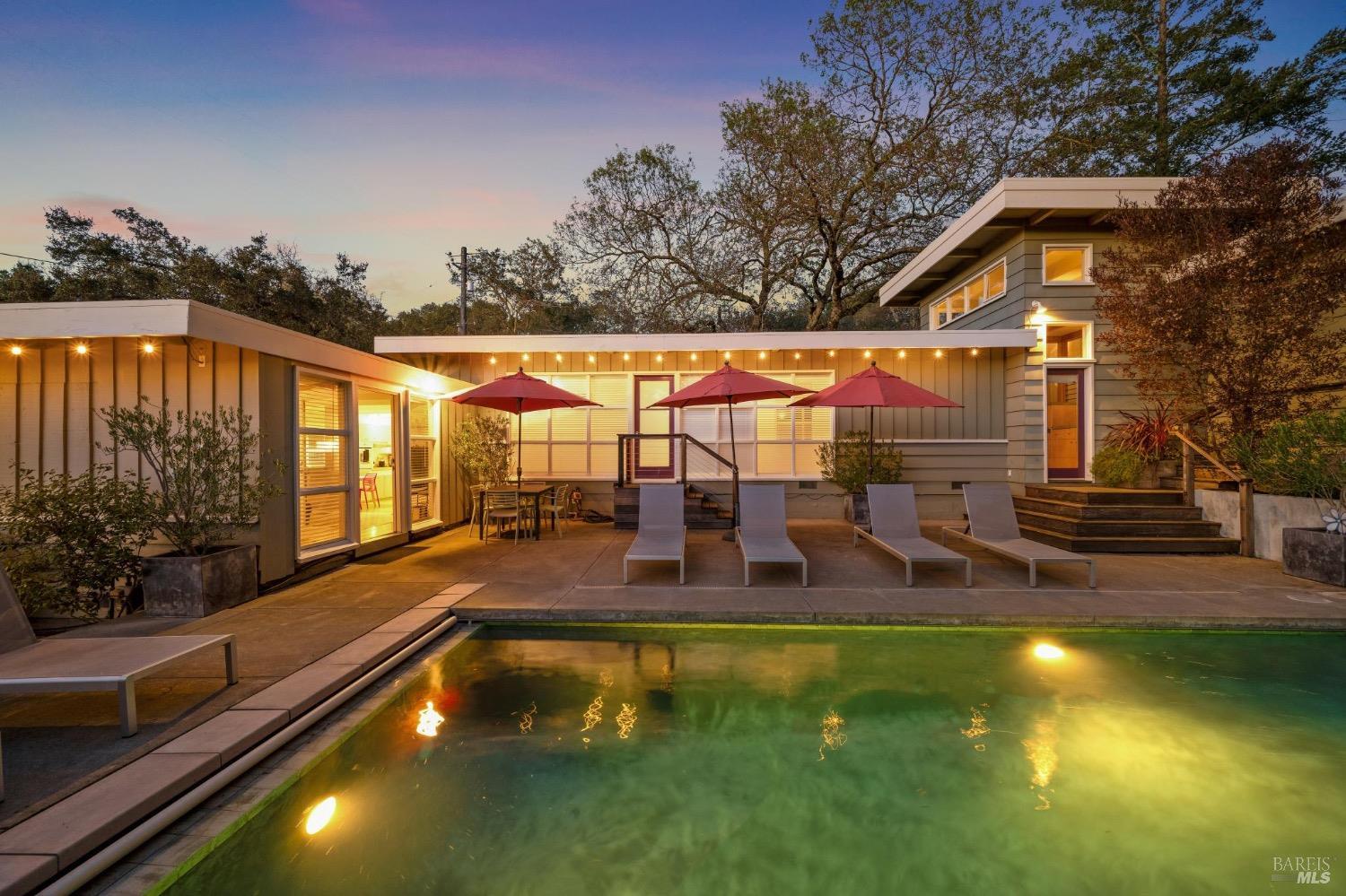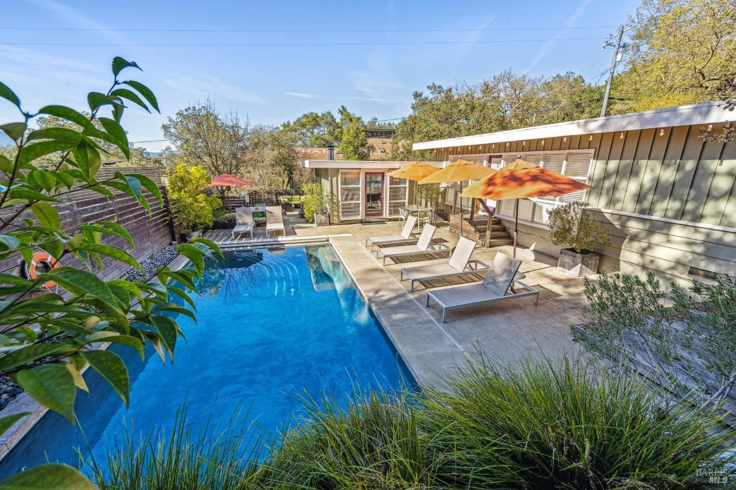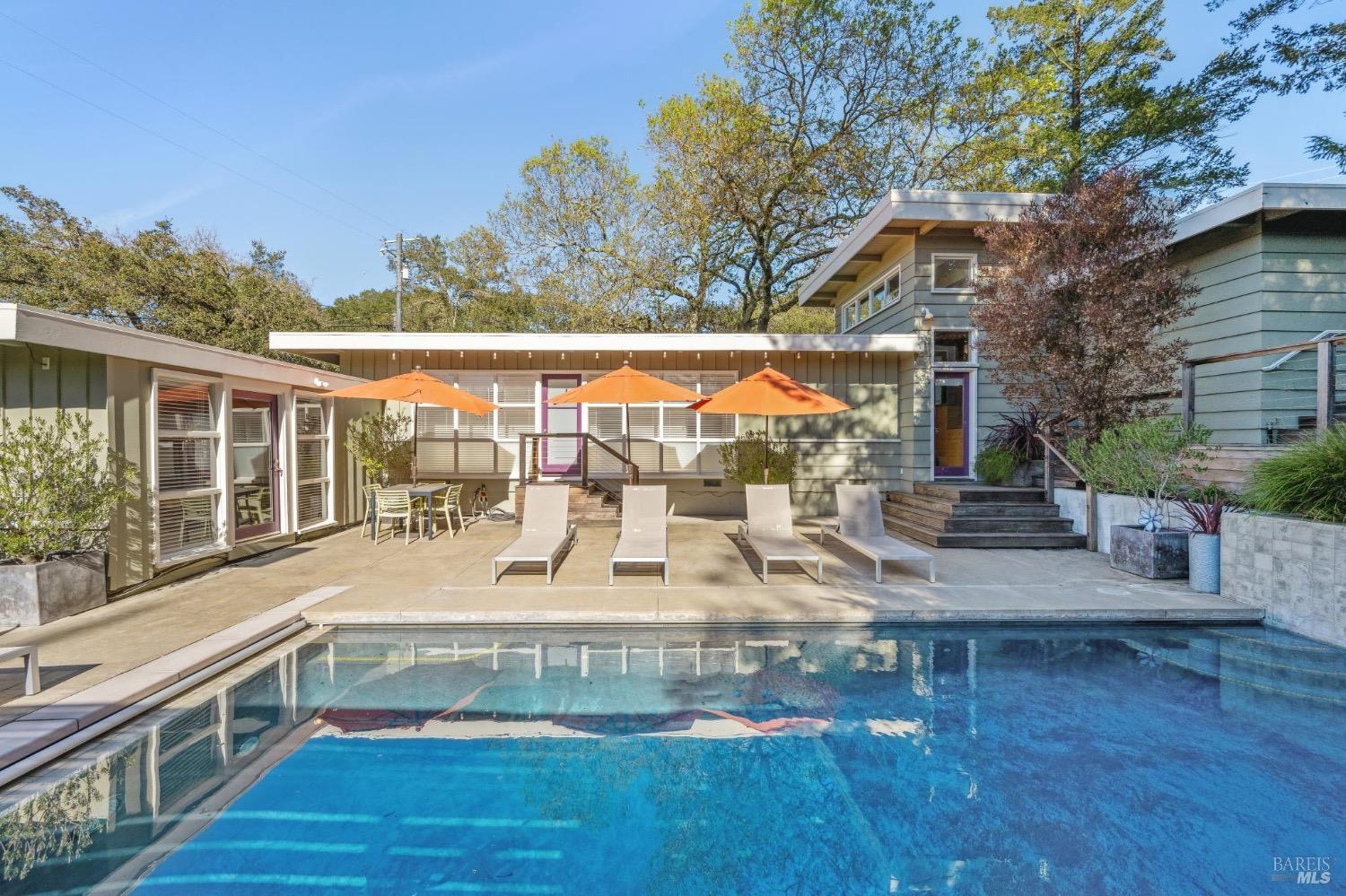 Mid Century Modern in the heart of Sonoma's Wine Country. Located on a quiet and private nearly 1/3 acre parcel with mature low maintenance landscaping, numerous outdoor entertaining areas, and close proximity to wineries, State parks, and the historic Plaza. Interior features include walls of glass, updated kitchen & baths, all bedrooms en suite, fireplace, and light & bright interiors. Enjoy the sunshine while lounging by the pool, play a game of bocce, snuggle at the fire pit, or just unplug and enjoy the fresh country air. All the conveniences of public services and just a few minutes to the Plaza but enough elbow room to feel like you have escaped to your special get away just 45 minutes north of the Golden Gate.