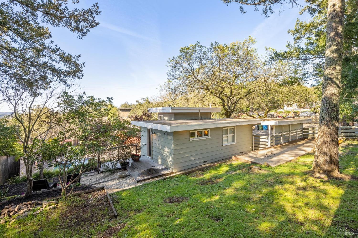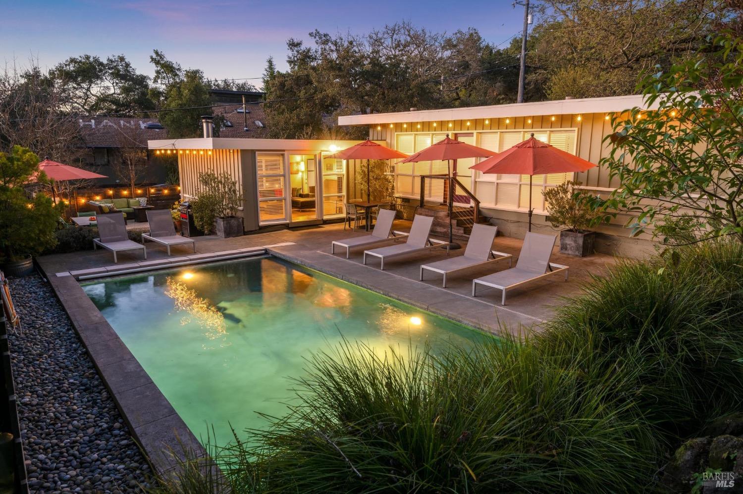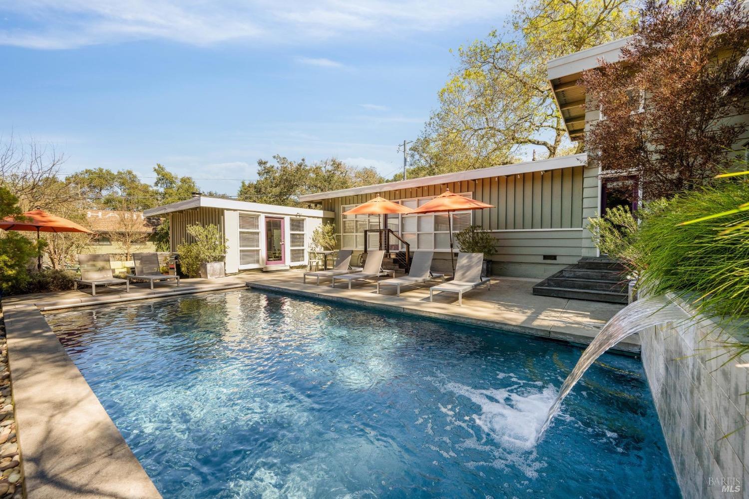 Mid Century Modern in the heart of Sonoma's Wine Country. Located on a quiet and private nearly 1/3 acre parcel with mature low maintenance landscaping, numerous outdoor entertaining areas, and close proximity to wineries, State parks, and the historic Plaza. Interior features include walls of glass, updated kitchen & baths, all bedrooms en suite, fireplace, and light & bright interiors. Enjoy the sunshine while lounging by the pool, play a game of bocce, snuggle at the fire pit, or just unplug and enjoy the fresh country air. All the conveniences of public services and just a few minutes to the Plaza but enough elbow room to feel like you have escaped to your special get away just 45 minutes north of the Golden Gate.