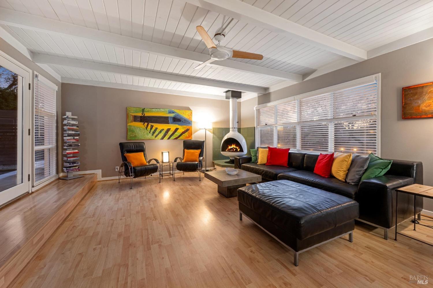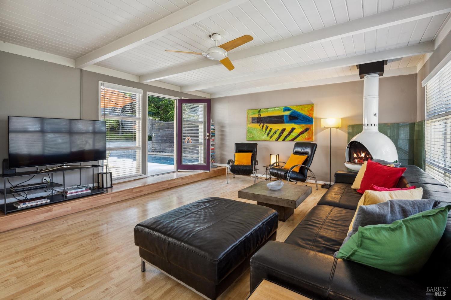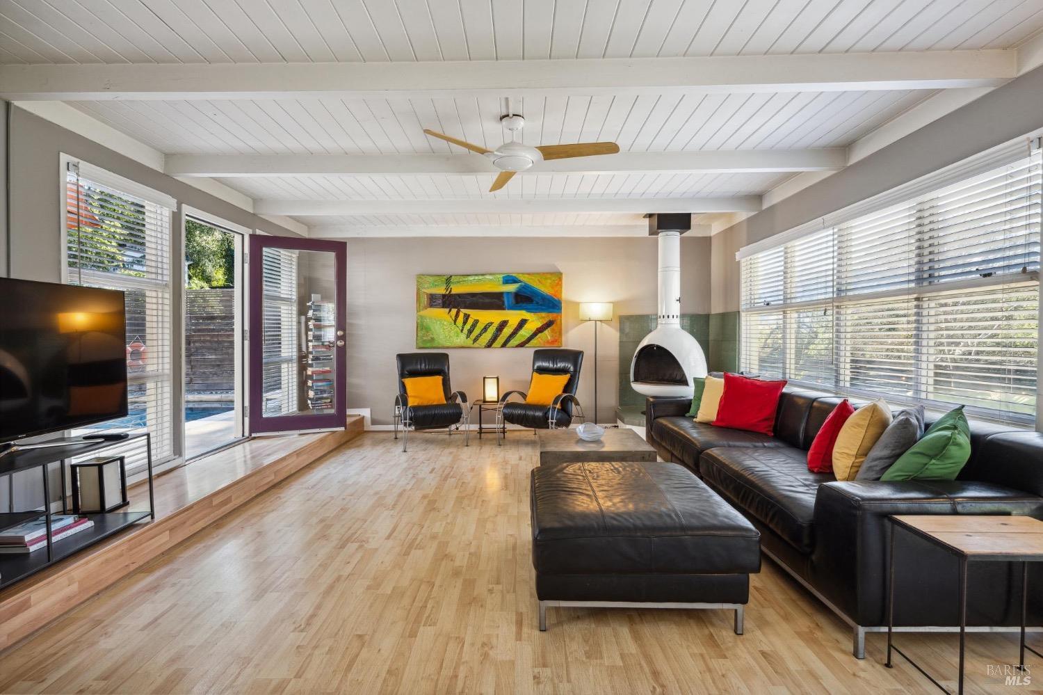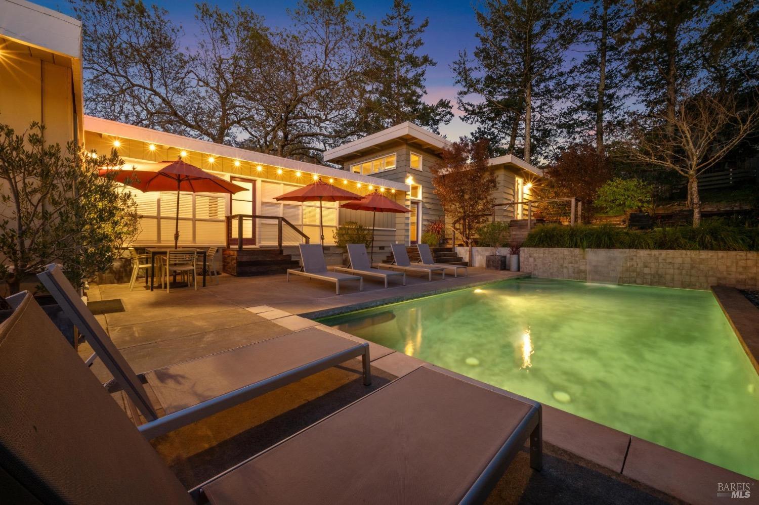Mid Century Modern in the heart of Sonoma's Wine Country. Located on a quiet and private nearly 1/3 acre parcel with mature low maintenance landscaping, numerous outdoor entertaining areas, and close proximity to wineries, State parks, and the historic Plaza. Interior features include walls of glass, updated kitchen & baths, all bedrooms en suite, fireplace, and light & bright interiors. Enjoy the sunshine while lounging by the pool, play a game of bocce, snuggle at the fire pit, or just unplug and enjoy the fresh country air. All the conveniences of public services and just a few minutes to the Plaza but enough elbow room to feel like you have escaped to your special get away just 45 minutes north of the Golden Gate.