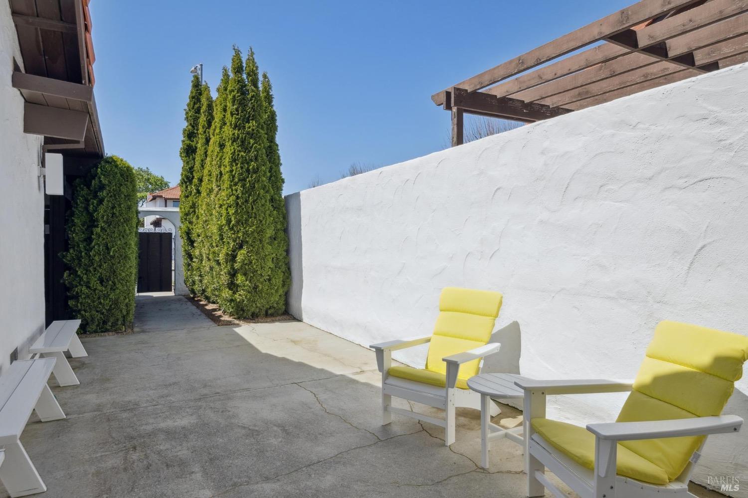 Rarely available and extremely desirable, this is one of the few Las Casitas townhouses to make it to the open market. Turn key perfection with its recent remodel. Stunning 2 bedroom + office/2 full bath home with style and sophistication...it looks like it belongs in the most recent issue of Elle Decor. Created by the designer as his own residence, one will be impressed with the high quality and attention to detail throughout. Interior features include vaulted ceilings in the greatroom, fireplace, bamboo flooring, plantation shutters throughout, and high end kitchen & baths. Indoor/outdoor living at its best with a wall of glass opening to the quiet & private backyard. This low maintenance townhouse is perfect for those who wish to downsize so they can just lock the door and travel the world or those wishing to escape the big city and use this as their Wine Country Pied--terre. Stroll a block or two and you are in the heart of the historic Plaza with restaurants & boutiques, dedicated open spaces with trails leading into the hills, or wander through the vines and feel like you are in the rural Sonoma...but you are in the heart of it all. Community swimming pool just a few steps away. One car attached garage.