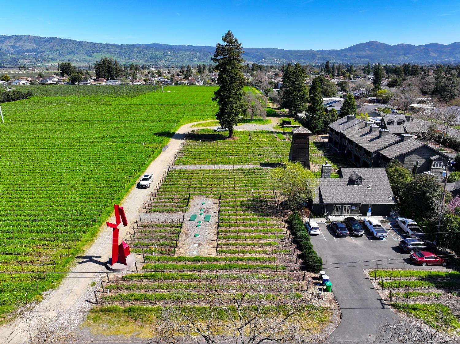 Welcome to 4076 Howard Lane, 1.89 acres, where picturesque vineyard vistas & majestic mountain panoramas await you in the heart of the Napa Valley. Featuring approx. 1400 Merlot vines, vineyard & views abound, this enchanting property offers a rare opportunity to indulge in the quintessential Napa Valley lifestyle. As you arrive you will be met by the renovated office offering 1,438 sf., floor to ceiling windows, vaulted ceilings, views from every window, updated features throughout, HVAC, roof, windows, bathroom plus parking & ADA access provided, with residential conversion options. This property offers a prime building site, providing the perfect opportunity to create your own vision of perfection. Well/Septic/installed & house rendering available. The sprawling vineyards stretch as far as the eye can see, painting a stunning backdrop against the shadow of Stags Leap & the east/west ridge lines are all within your sight. Imagine waking up to the breathtaking sight of the sun rising over the mountains, casting a golden glow over the landscape. Whether you're a wine enthusiast, business owner, nature lover, or simply seeking a tranquil retreat, this is a place where dreams are made ... inquire for details