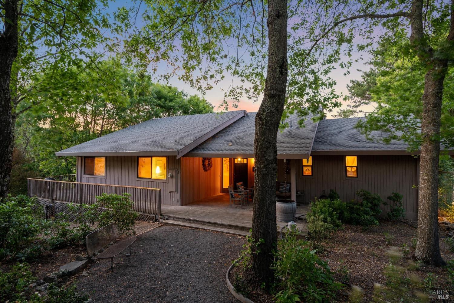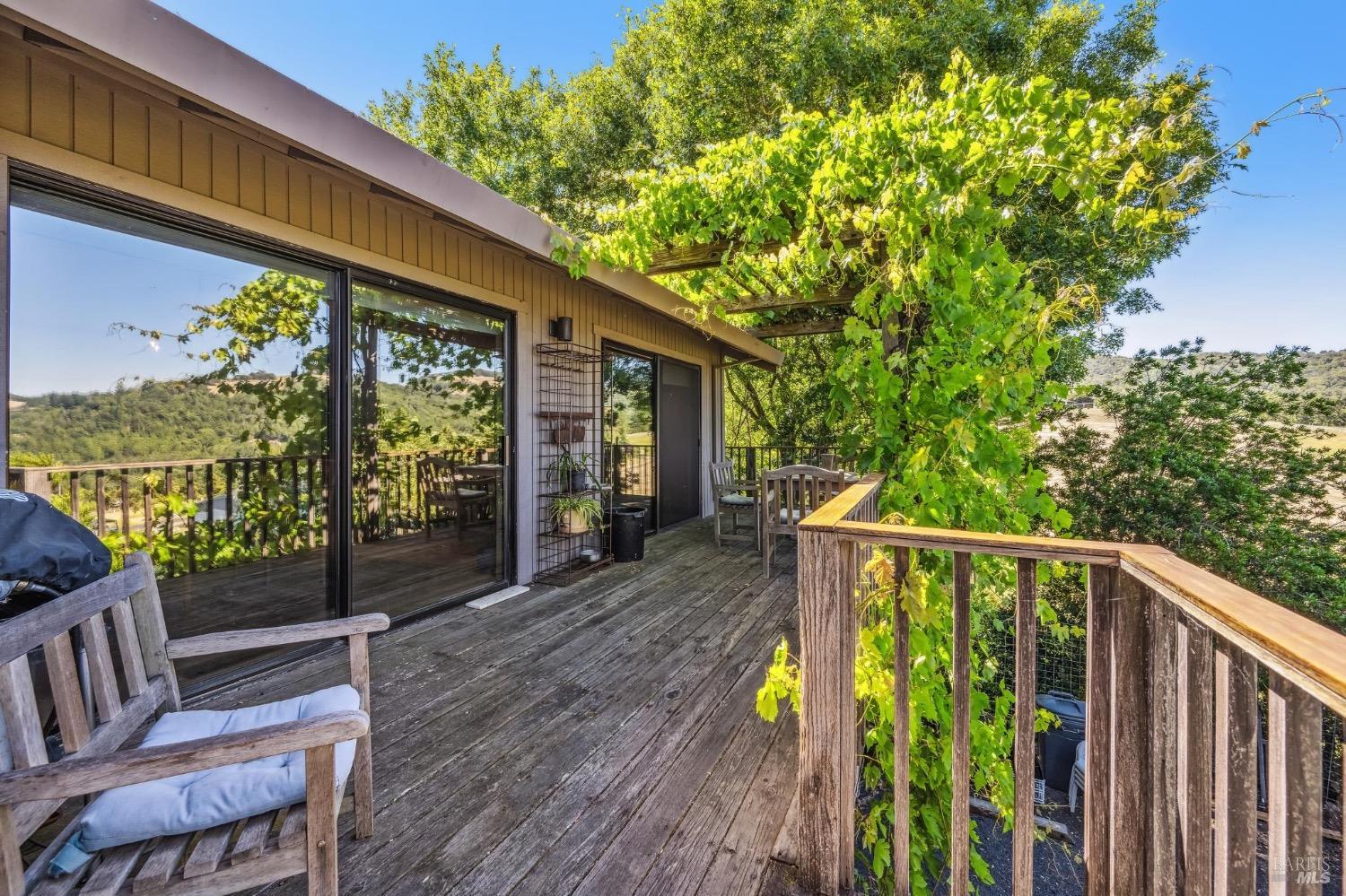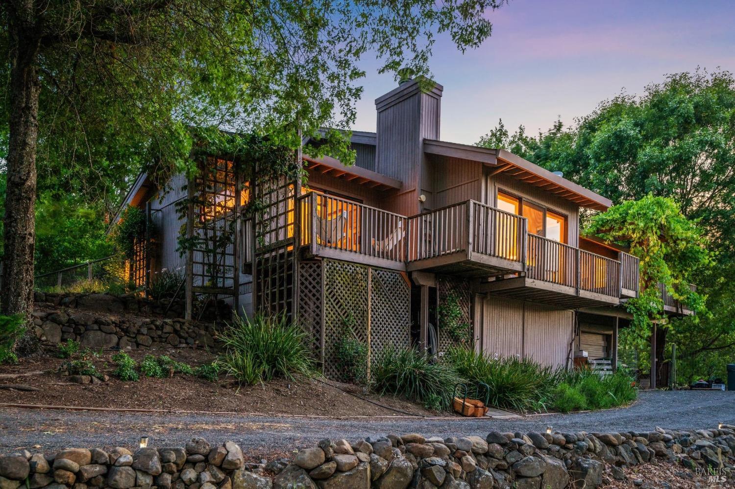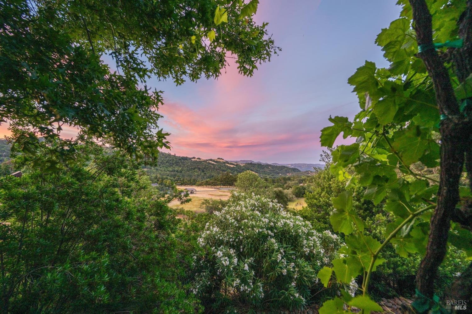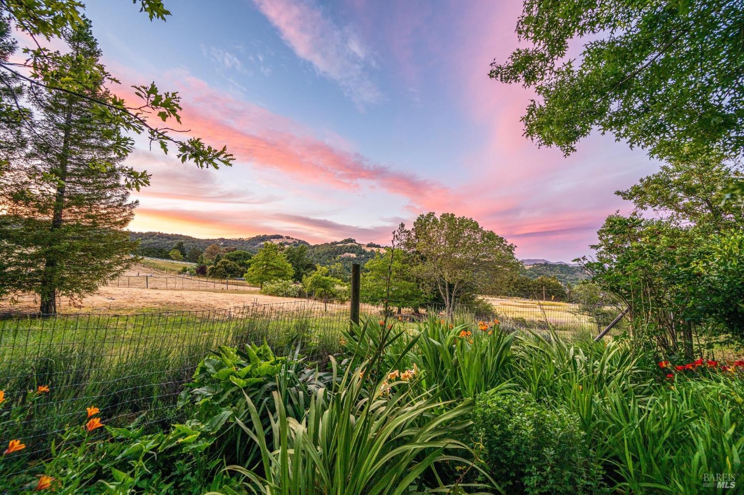 Sweeping views of the rolling hills, open meadows, ridge lines, and vineyards in the distance. Solitude and privacy yet a short drive to the historic Plaza. Located in the desirable Diamond A Ranch Estates, this 3 bedroom/2 bath home has been lovingly updated and boasts an open floorplan, cathedral ceilings, fireplace, walls of glass, and incredible natural light. Indoor/outdoor living at its best with oversized sliders leading to an inviting deck with the views beyond. Enter through a quaint garden with mature landscaping, shade trees & flowers of all types bursting with color. Nearly 1.5 acres. Low maintenance grounds that are lush & inviting. Sit back and take in the peace, quiet, nature, and views. Hot tub under a canopy of trees. The Diamond A Recreation Center has a voluntary membership that has recently refinished pickle ball/tennis courts, pool, baseball diamond, and club house. It is the hub of activity for this inviting and close knit community. Surrounded by larger & more expensive homes so the upside is incredible for this wonderful home. We all love the idea of extra storage and boy do we have storage at this home. Lives like a single story since everything is on the main level at street level other than garage. Tons of storage on the lower level.