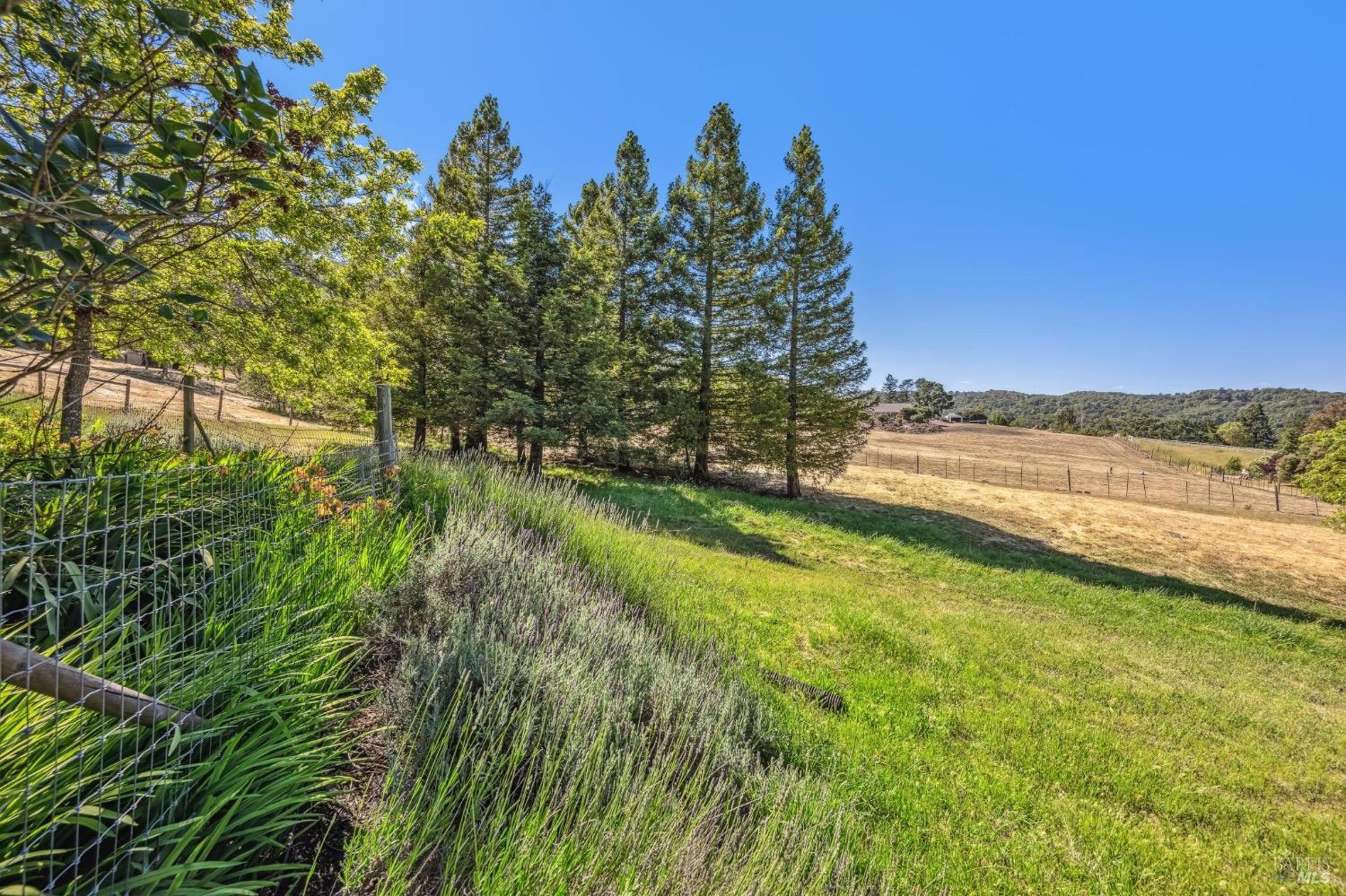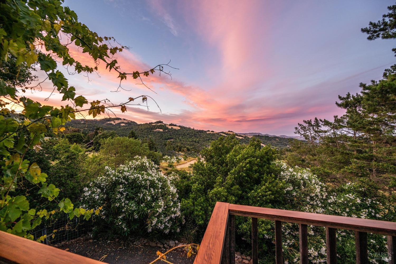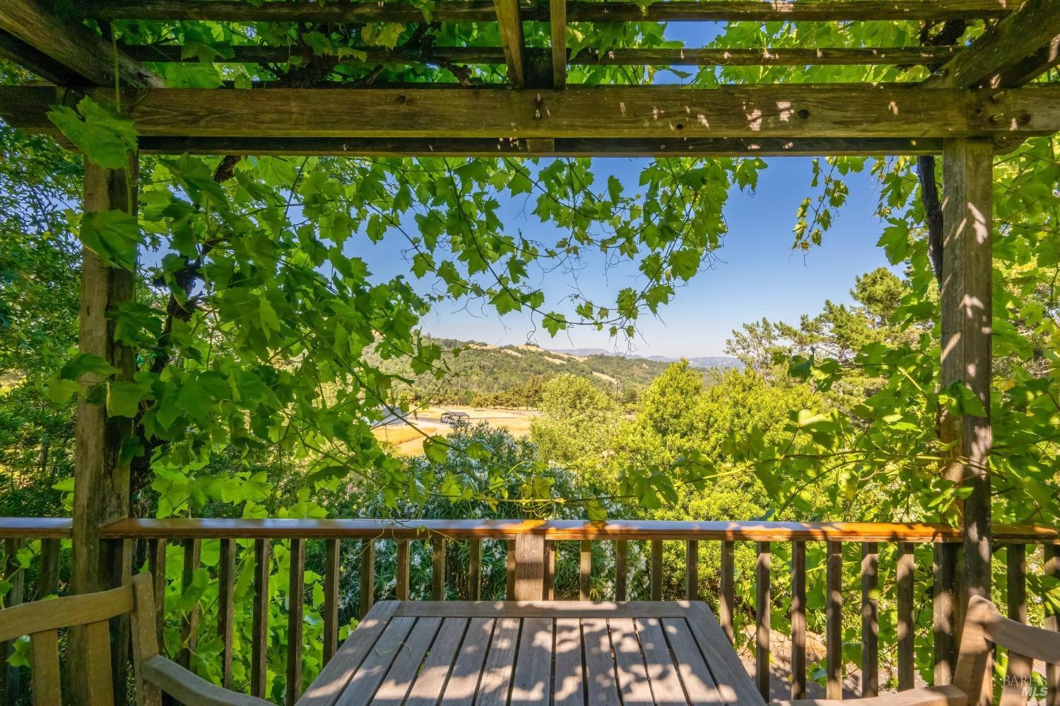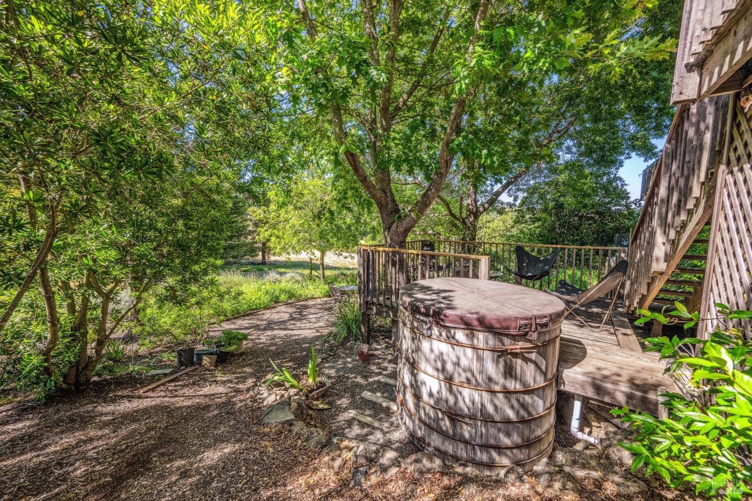 Sweeping views of the rolling hills, open meadows, ridge lines, and vineyards in the distance. Solitude and privacy yet a short drive to the historic Plaza. Located in the desirable Diamond A Ranch Estates, this 3 bedroom/2 bath home has been lovingly updated and boasts an open floorplan, cathedral ceilings, fireplace, walls of glass, and incredible natural light. Indoor/outdoor living at its best with oversized sliders leading to an inviting deck with the views beyond. Enter through a quaint garden with mature landscaping, shade trees & flowers of all types bursting with color. Nearly 1.5 acres. Low maintenance grounds that are lush & inviting. Sit back and take in the peace, quiet, nature, and views. Hot tub under a canopy of trees. The Diamond A Recreation Center has a voluntary membership that has recently refinished pickle ball/tennis courts, pool, baseball diamond, and club house. It is the hub of activity for this inviting and close knit community. Surrounded by larger & more expensive homes so the upside is incredible for this wonderful home. We all love the idea of extra storage and boy do we have storage at this home. Lives like a single story since everything is on the main level at street level other than garage. Tons of storage on the lower level.
