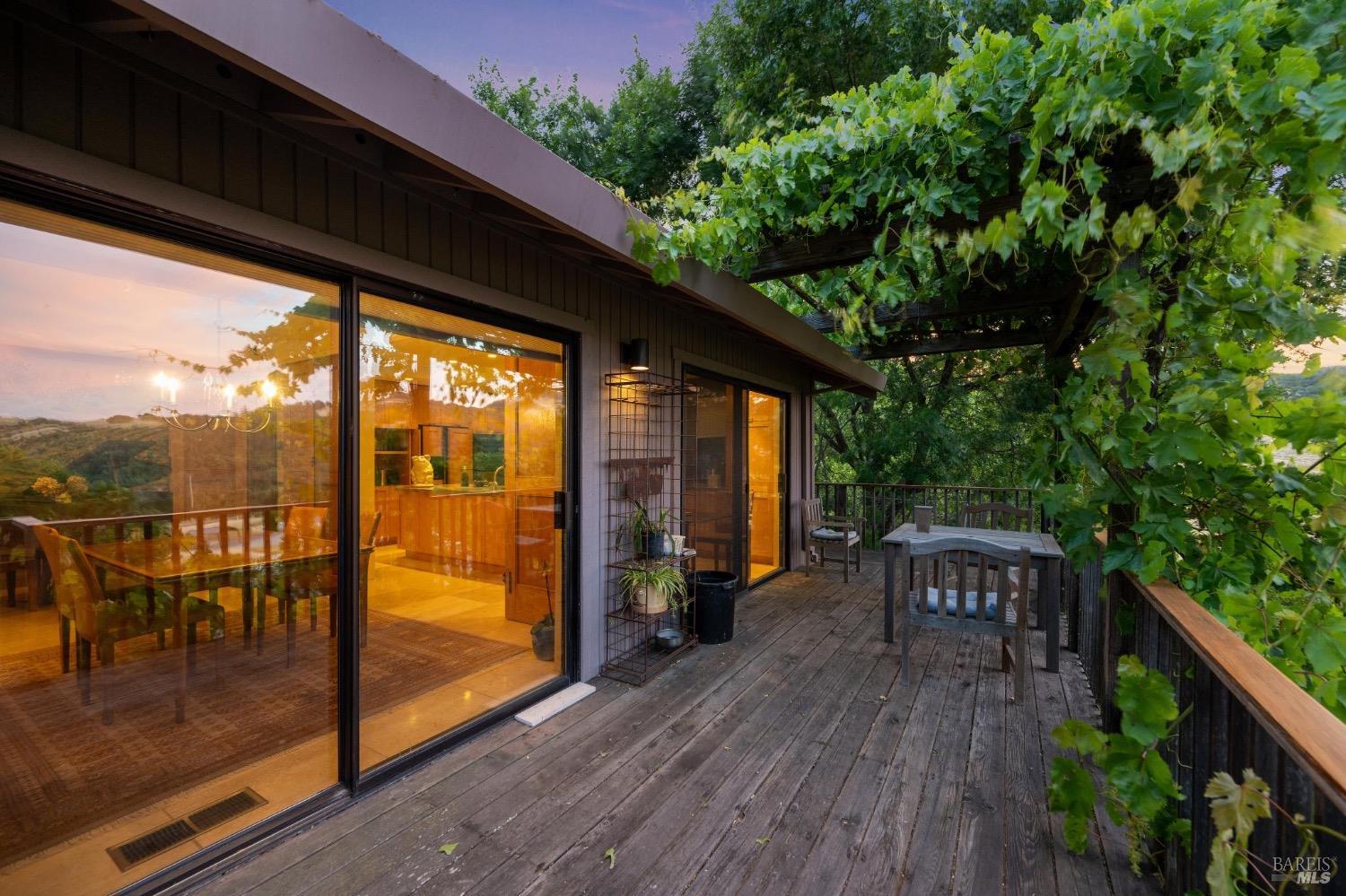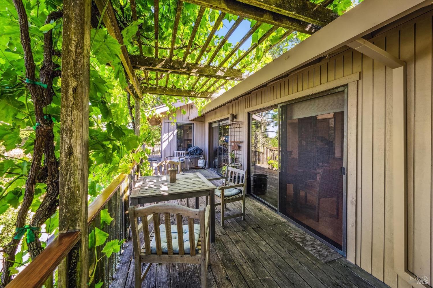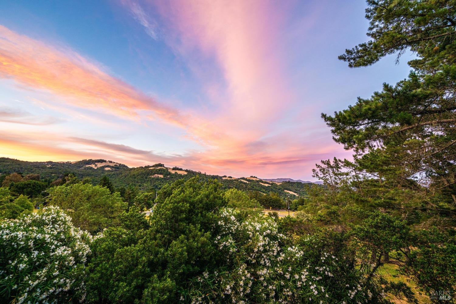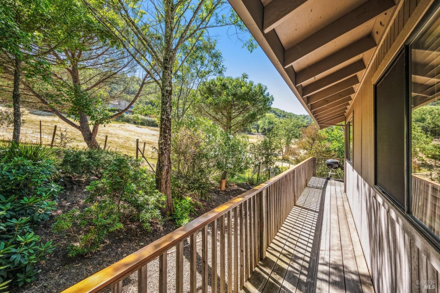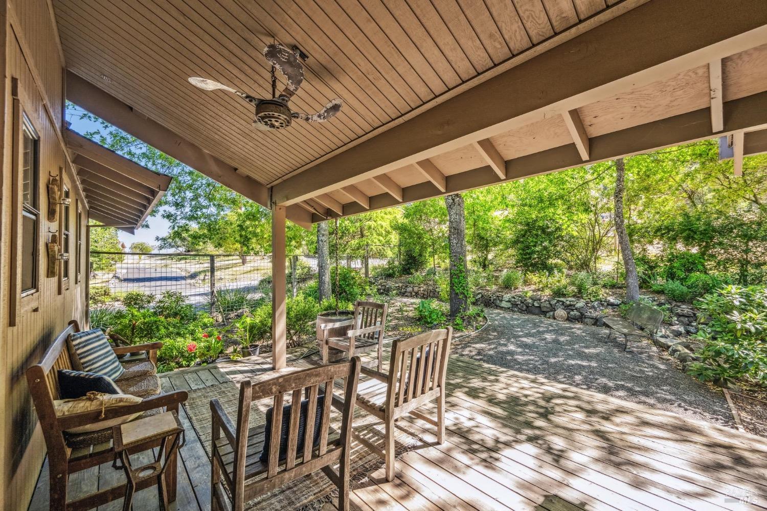 Sweeping views of the rolling hills, open meadows, ridge lines, and vineyards in the distance. Solitude and privacy yet a short drive to the historic Plaza. Located in the desirable Diamond A Ranch Estates, this 3 bedroom/2 bath home has been lovingly updated and boasts an open floorplan, cathedral ceilings, fireplace, walls of glass, and incredible natural light. Indoor/outdoor living at its best with oversized sliders leading to an inviting deck with the views beyond. Enter through a quaint garden with mature landscaping, shade trees & flowers of all types bursting with color. Nearly 1.5 acres. Low maintenance grounds that are lush & inviting. Sit back and take in the peace, quiet, nature, and views. Hot tub under a canopy of trees. The Diamond A Recreation Center has a voluntary membership that has recently refinished pickle ball/tennis courts, pool, baseball diamond, and club house. It is the hub of activity for this inviting and close knit community. Surrounded by larger & more expensive homes so the upside is incredible for this wonderful home. We all love the idea of extra storage and boy do we have storage at this home. Lives like a single story since everything is on the main level at street level other than garage. Tons of storage on the lower level.