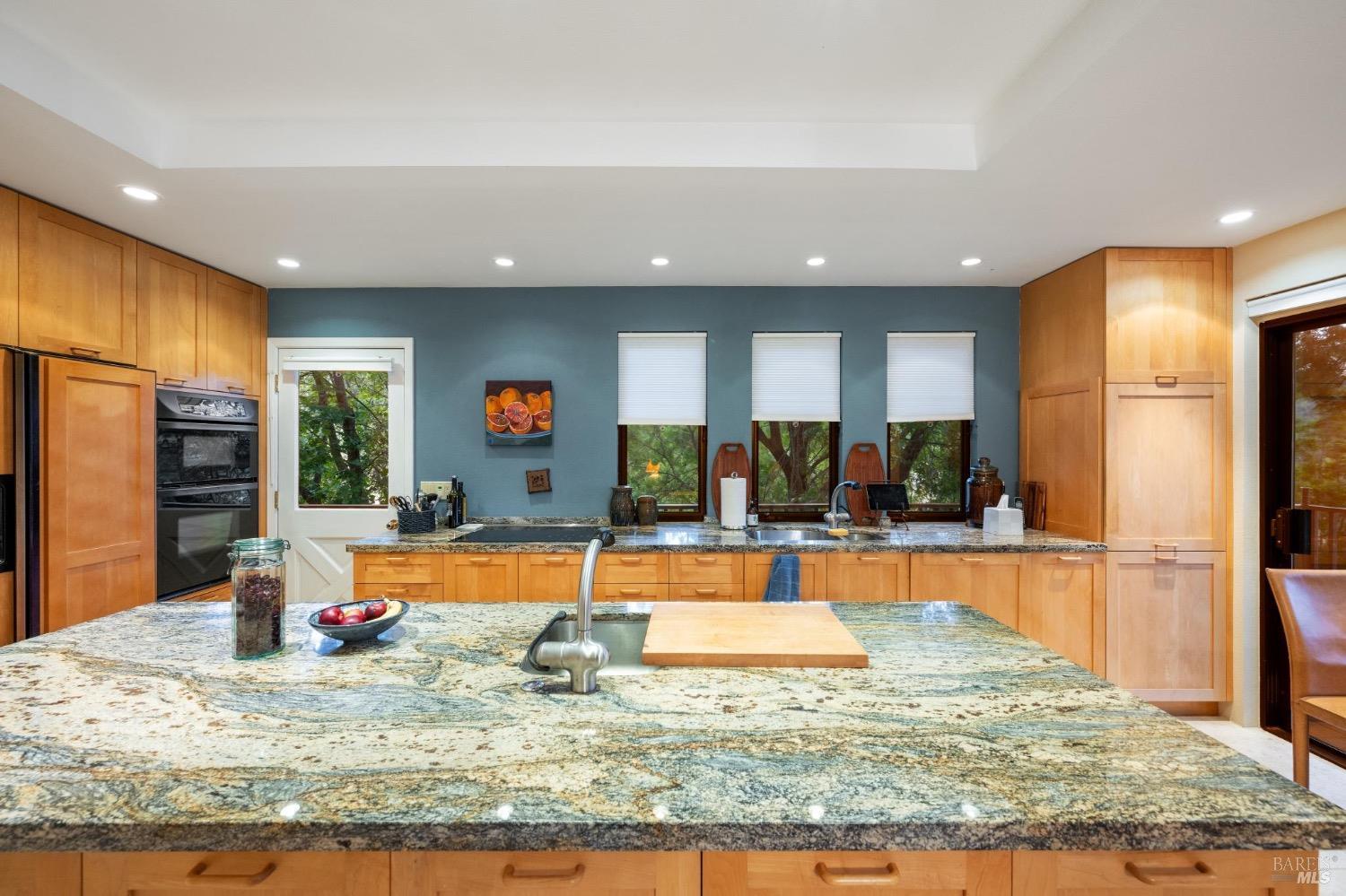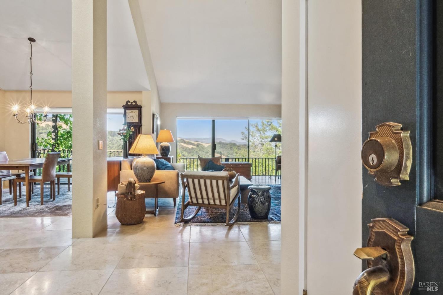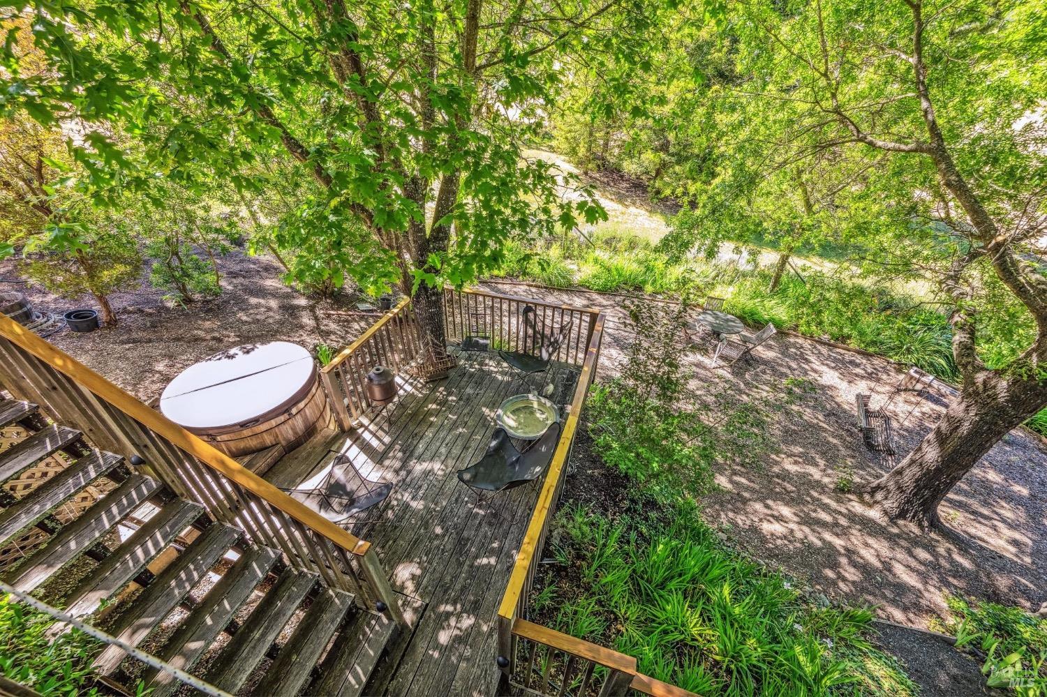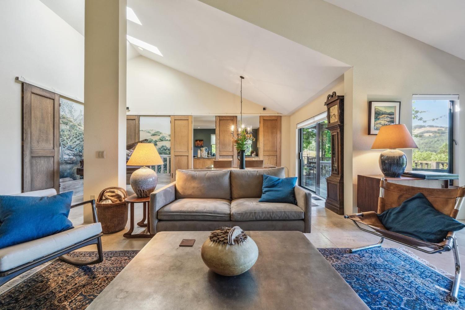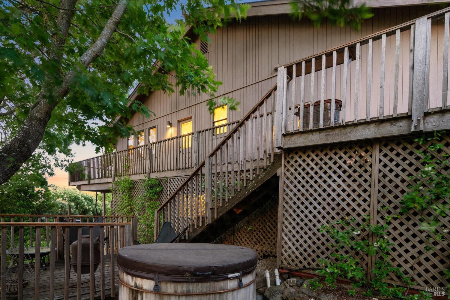 Sweeping views of the rolling hills, open meadows, ridge lines, and vineyards in the distance. Solitude and privacy yet a short drive to the historic Plaza. Located in the desirable Diamond A Ranch Estates, this 3 bedroom/2 bath home has been lovingly updated and boasts an open floorplan, cathedral ceilings, fireplace, walls of glass, and incredible natural light. Indoor/outdoor living at its best with oversized sliders leading to an inviting deck with the views beyond. Enter through a quaint garden with mature landscaping, shade trees & flowers of all types bursting with color. Nearly 1.5 acres. Low maintenance grounds that are lush & inviting. Sit back and take in the peace, quiet, nature, and views. Hot tub under a canopy of trees. The Diamond A Recreation Center has a voluntary membership that has recently refinished pickle ball/tennis courts, pool, baseball diamond, and club house. It is the hub of activity for this inviting and close knit community. Surrounded by larger & more expensive homes so the upside is incredible for this wonderful home. We all love the idea of extra storage and boy do we have storage at this home. Lives like a single story since everything is on the main level at street level other than garage. Tons of storage on the lower level.