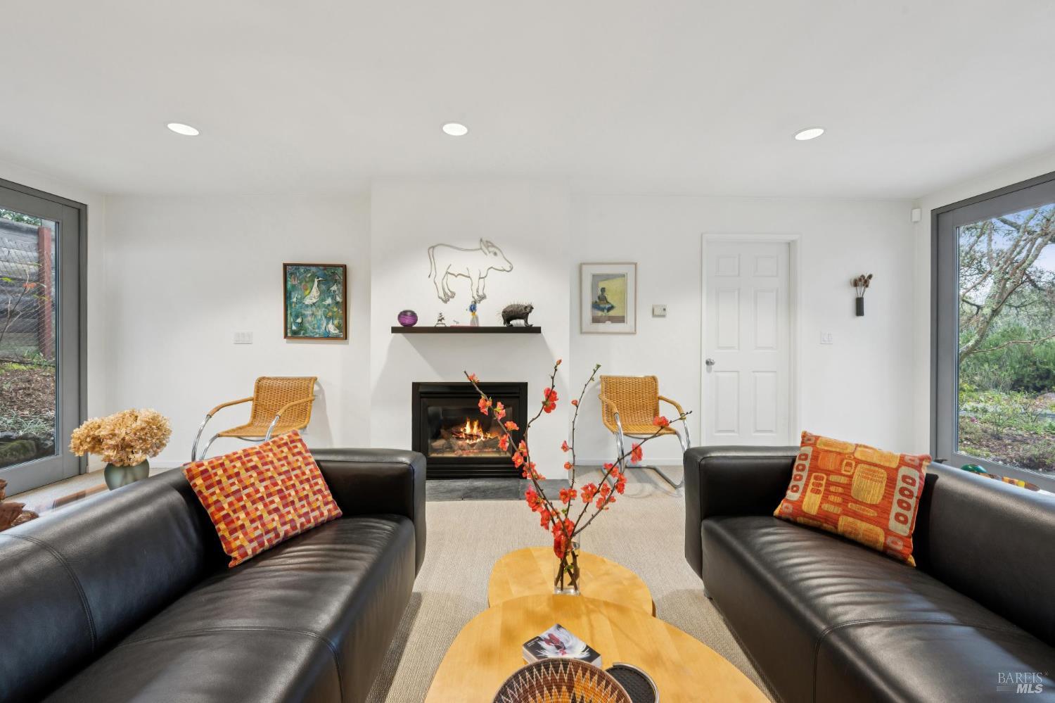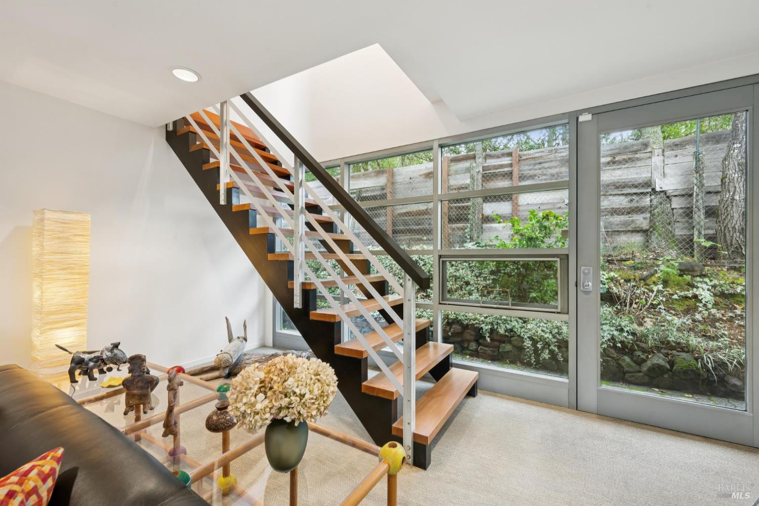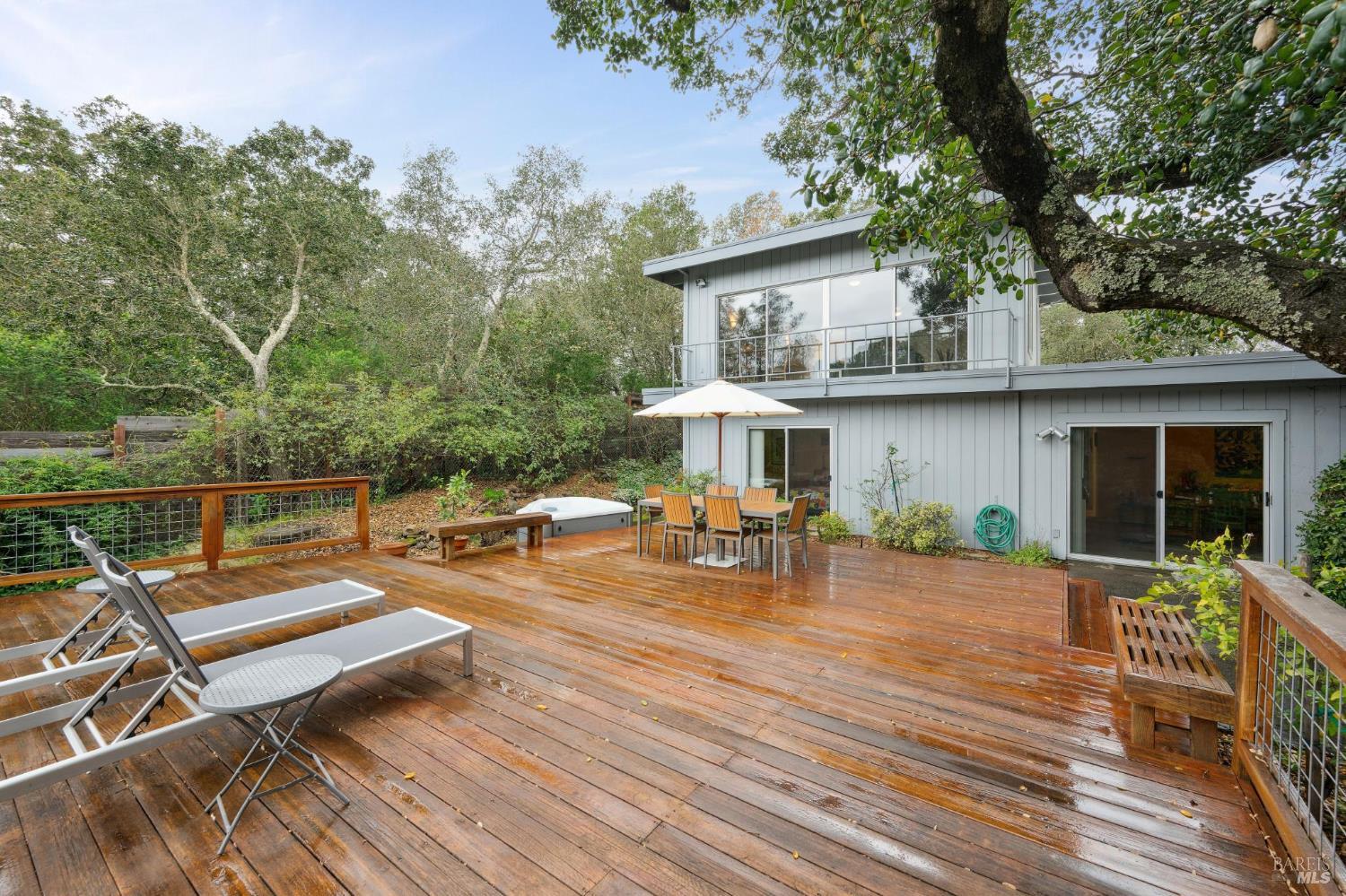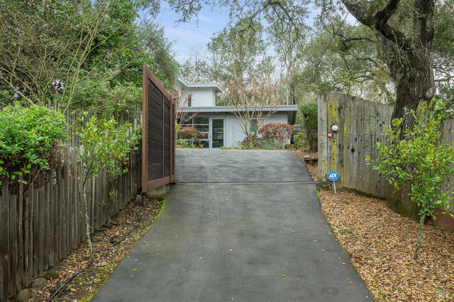 Stunning & sophisticated Mid-Century modern on nearly 1/3 acre parcel with sweeping views and privacy. Recently updated with high quality finishes by an architect/designer. Interiors are light and bright with walls of glass looking out to nature. All 3 bedrooms on main level with nearly all rooms opening directly to the outside providing wonderful indoor/outdoor flow. Up the custom designed open staircase is the large bonus room with fireplace, open beamed ceilings, and picture windows with views of nature. Large deck with hot tub, ptanque area, room for gardening, plus a small orchard. Gated entry, detached garage, and property is on public services. Just a few minutes to the historic Plaza, numerous dedicated open spaces/parks, wineries, and award winning restaurants.