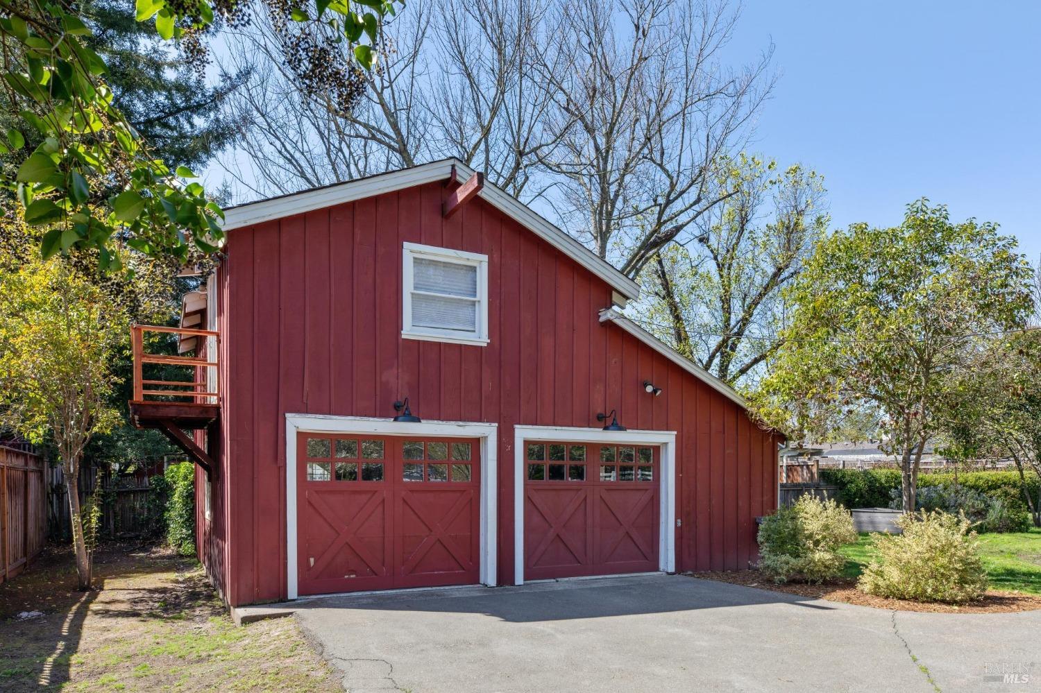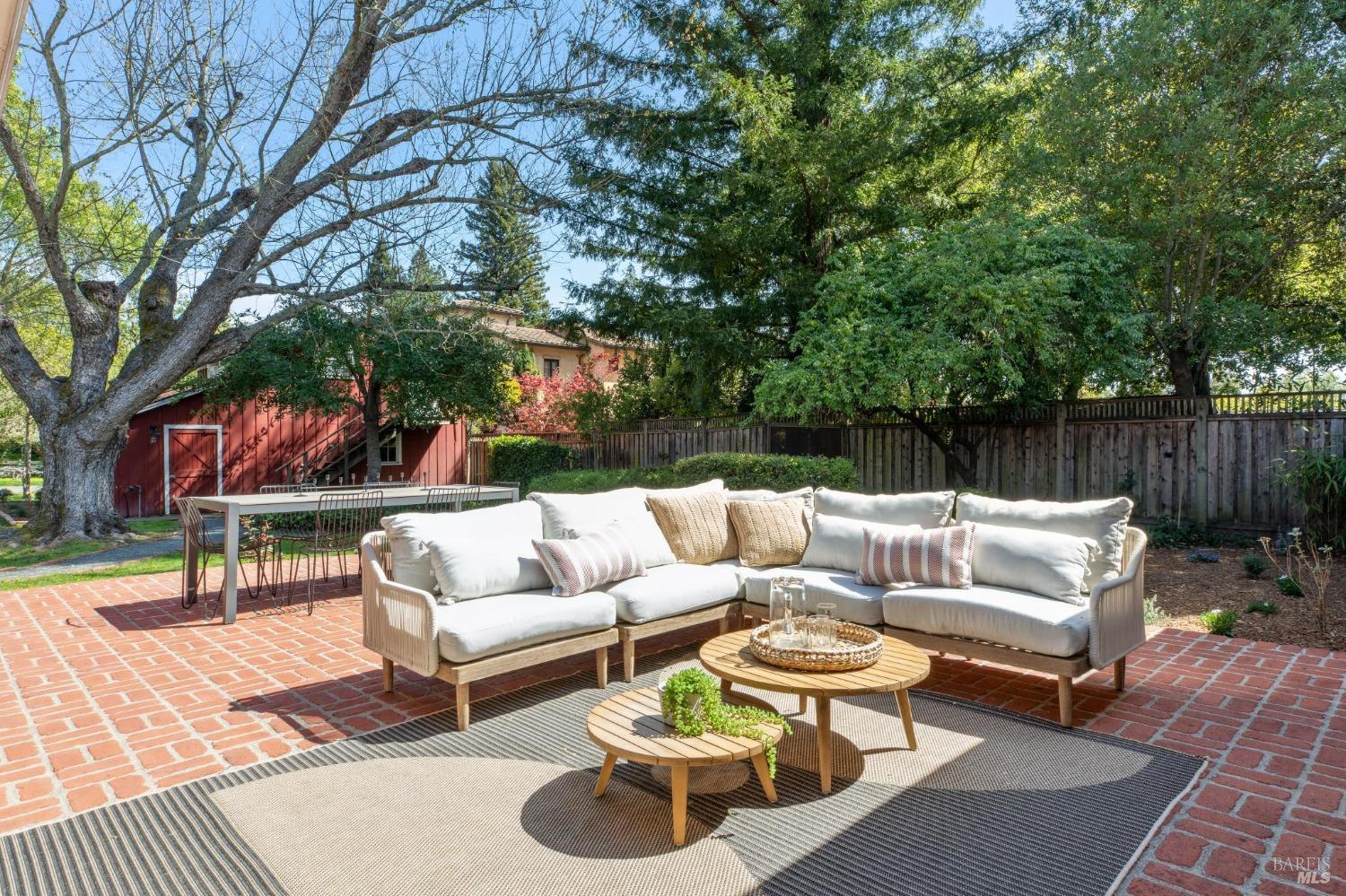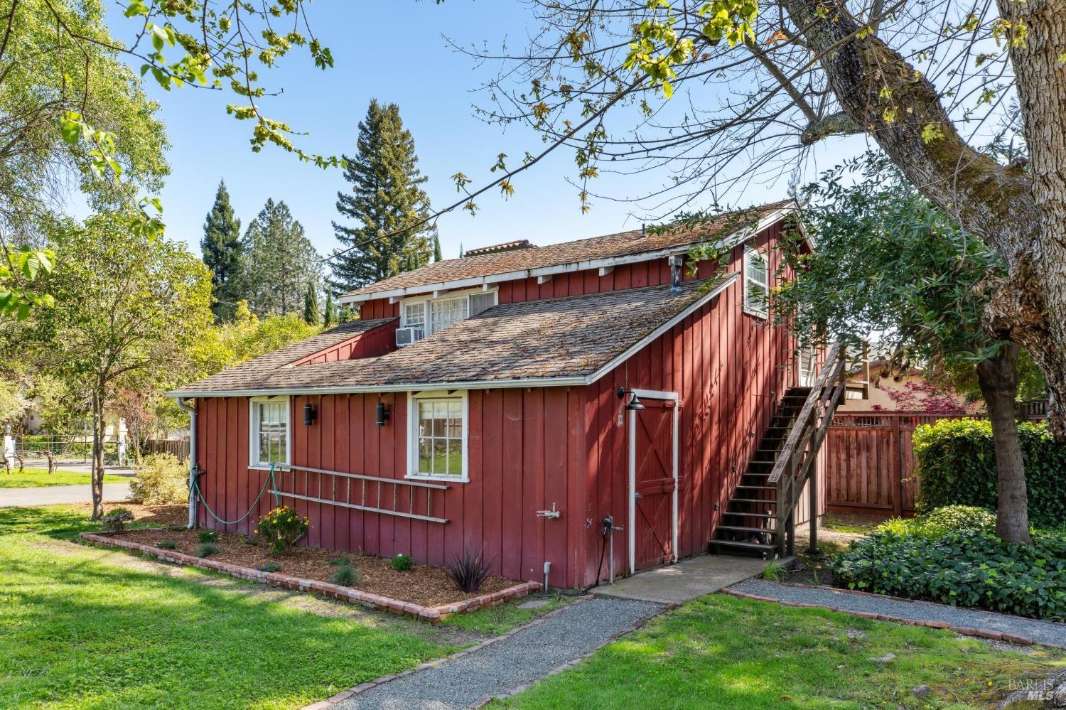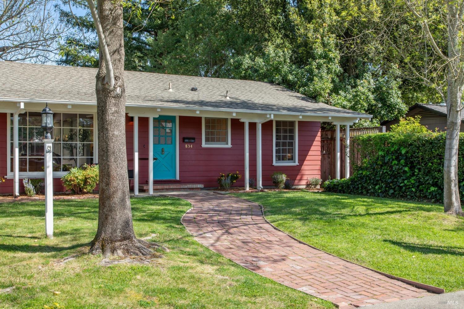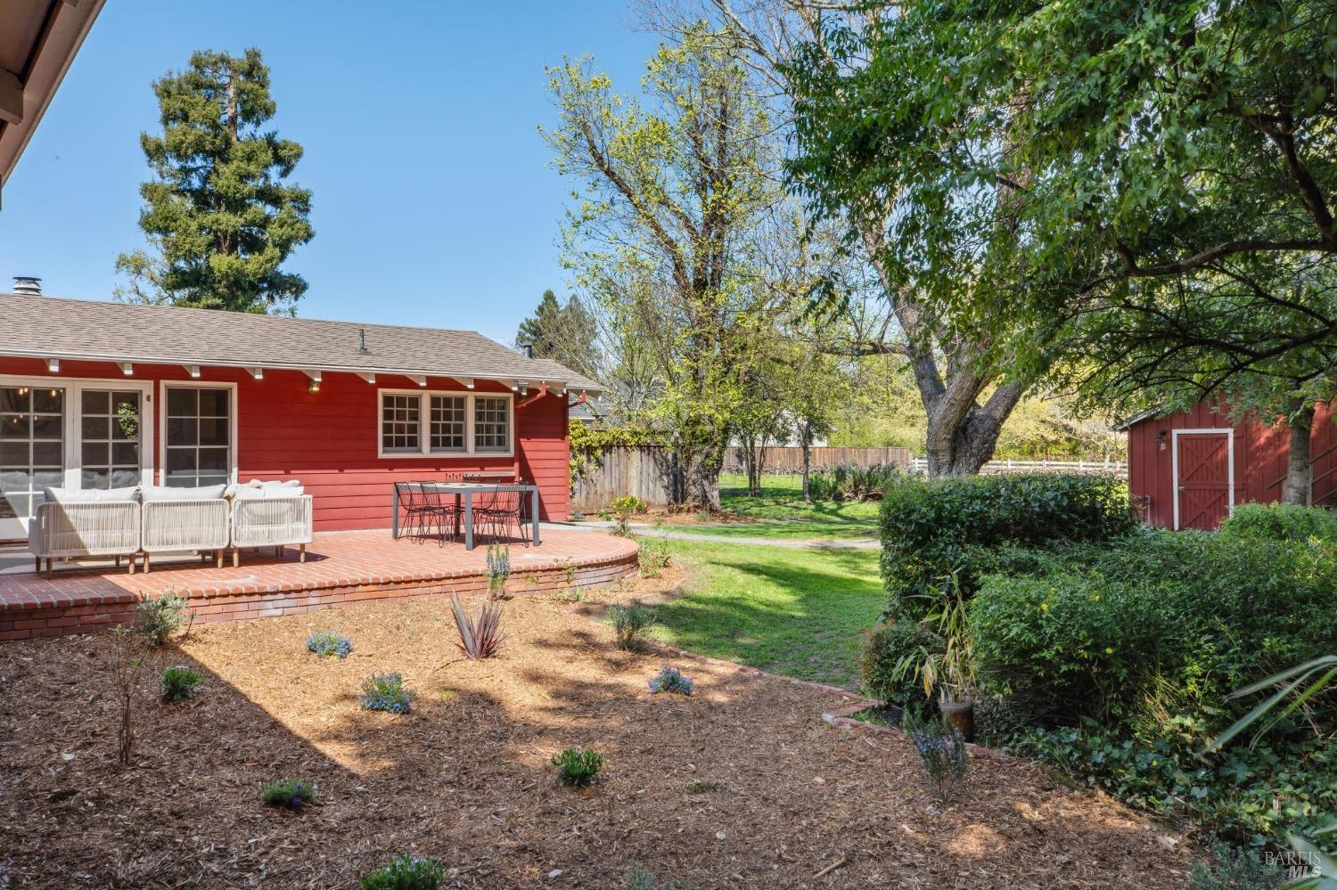 Situated on an extra large parcel of nearly 1/2 acre reaching from block to block, this is a rare find in a prime Eastside Sonoma location. Single level 3 bedroom/2 bath vintage home with detached barn with overflow space and bathroom upstairs. Interior features include wide plank hardwood floors, fireplace, open beam ceilings, and French doors leading to the park-like grounds. Indoor/outdoor living as you enjoy quiet times on the large brick patio under ancient shade trees. Room for expansion on this large parcel with public services. Charming detached garage accessed from the quiet lane behind.