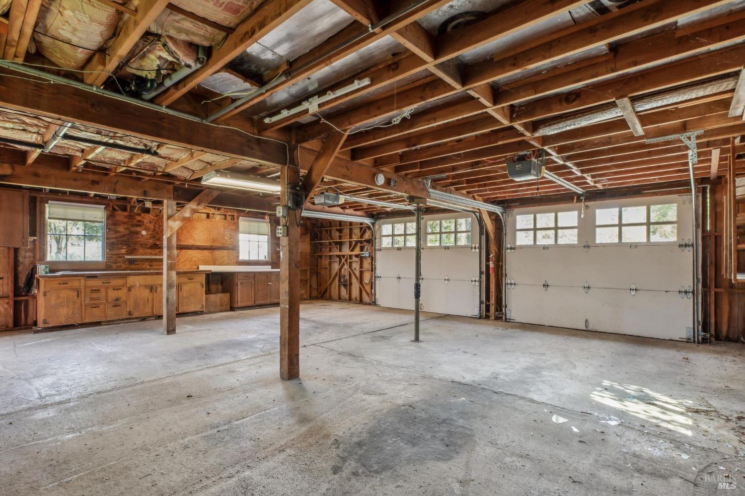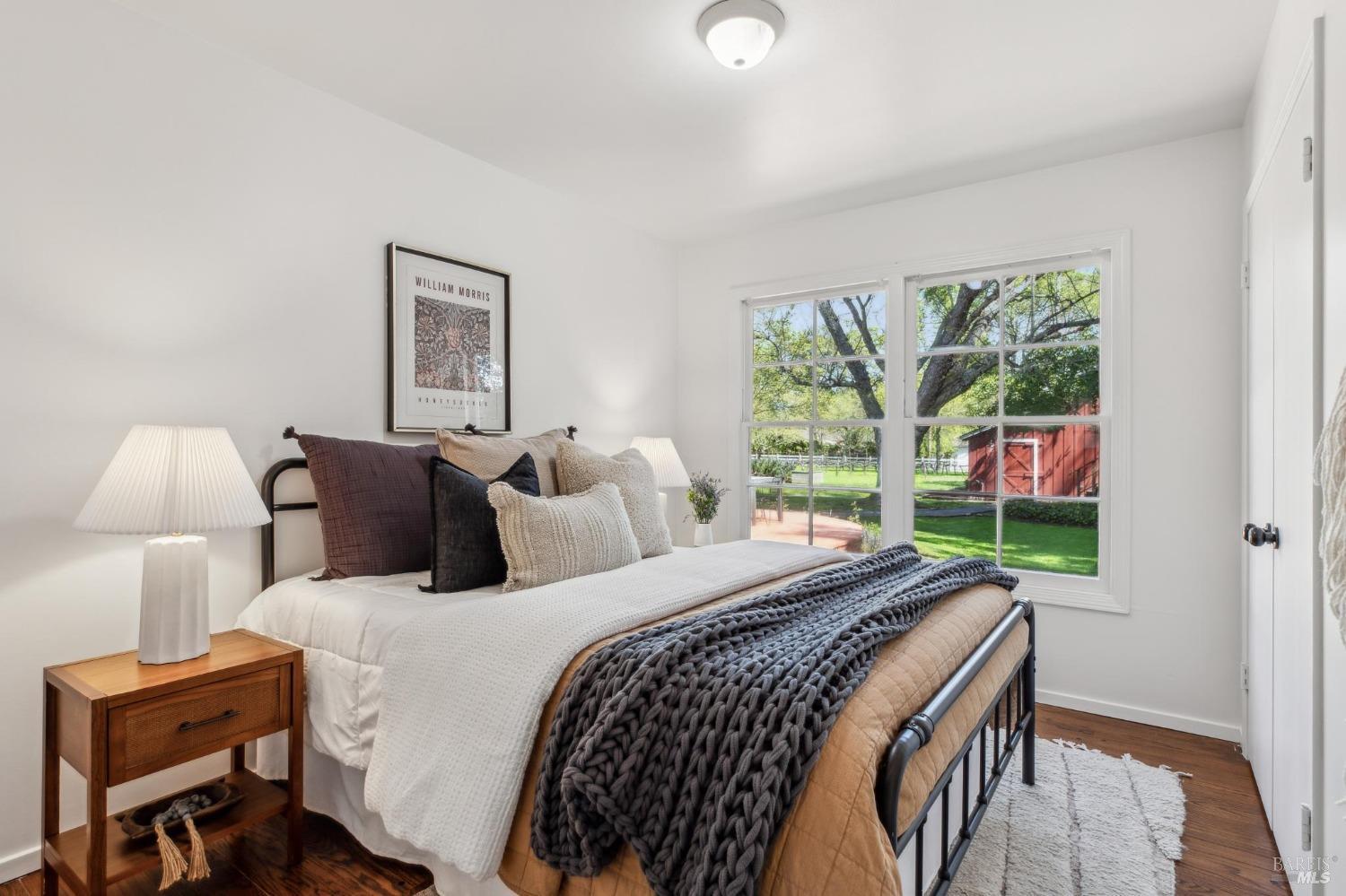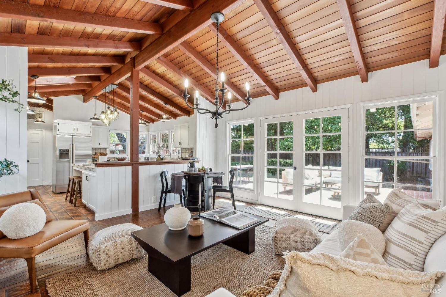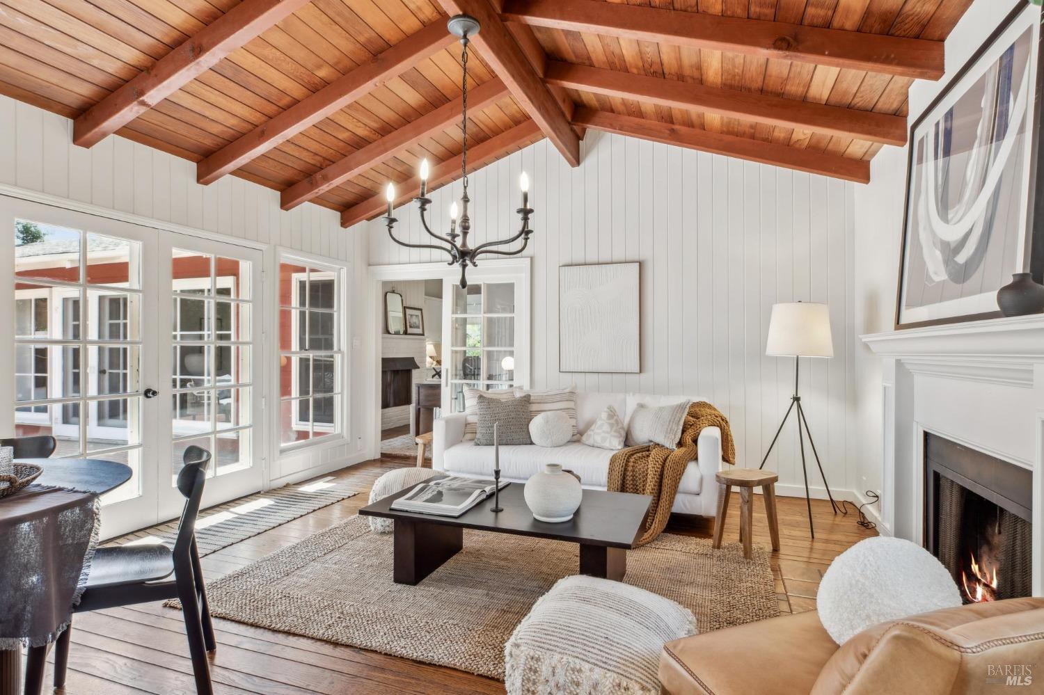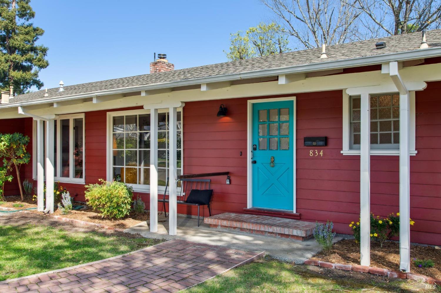 Situated on an extra large parcel of nearly 1/2 acre reaching from block to block, this is a rare find in a prime Eastside Sonoma location. Single level 3 bedroom/2 bath vintage home with detached barn with overflow space and bathroom upstairs. Interior features include wide plank hardwood floors, fireplace, open beam ceilings, and French doors leading to the park-like grounds. Indoor/outdoor living as you enjoy quiet times on the large brick patio under ancient shade trees. Room for expansion on this large parcel with public services. Charming detached garage accessed from the quiet lane behind.