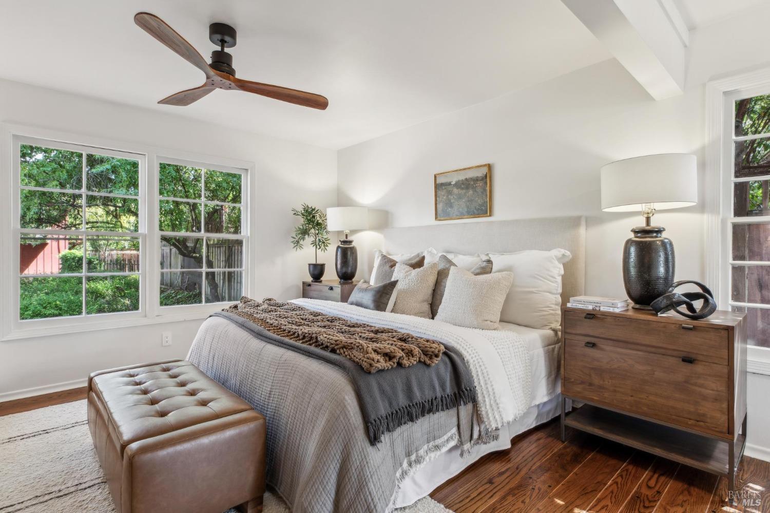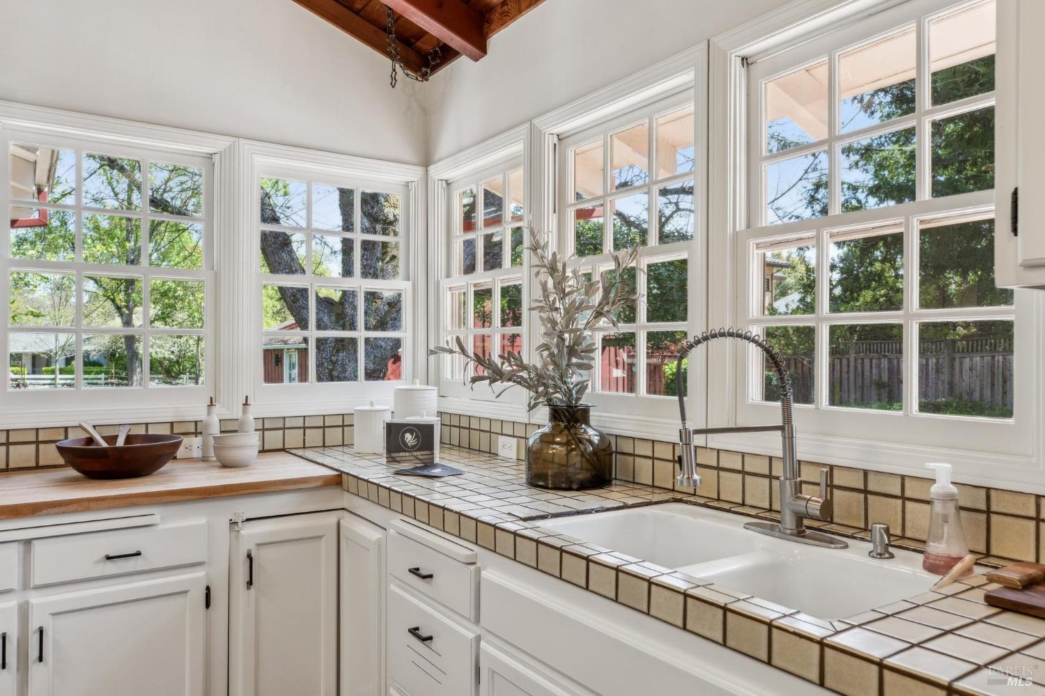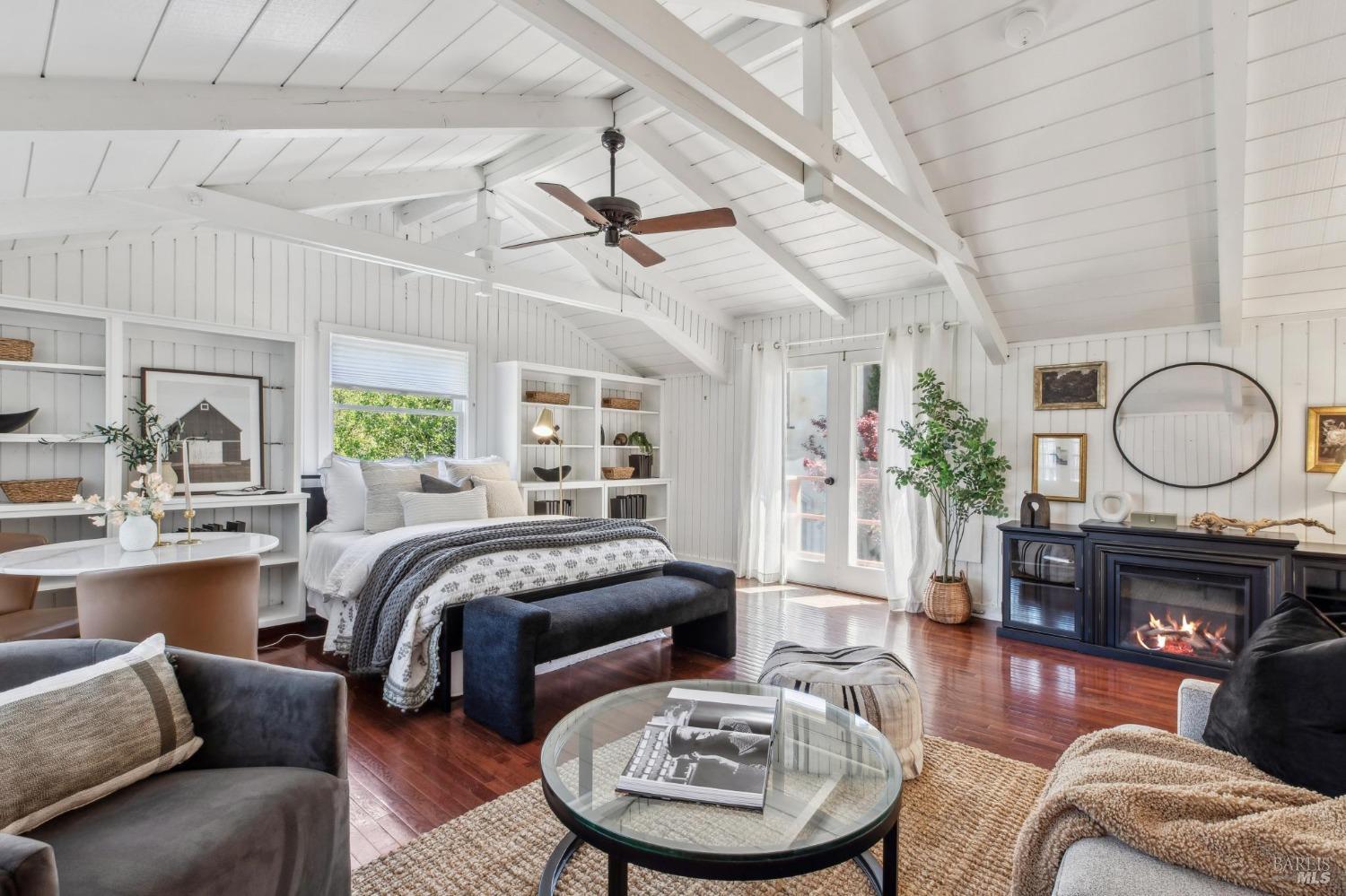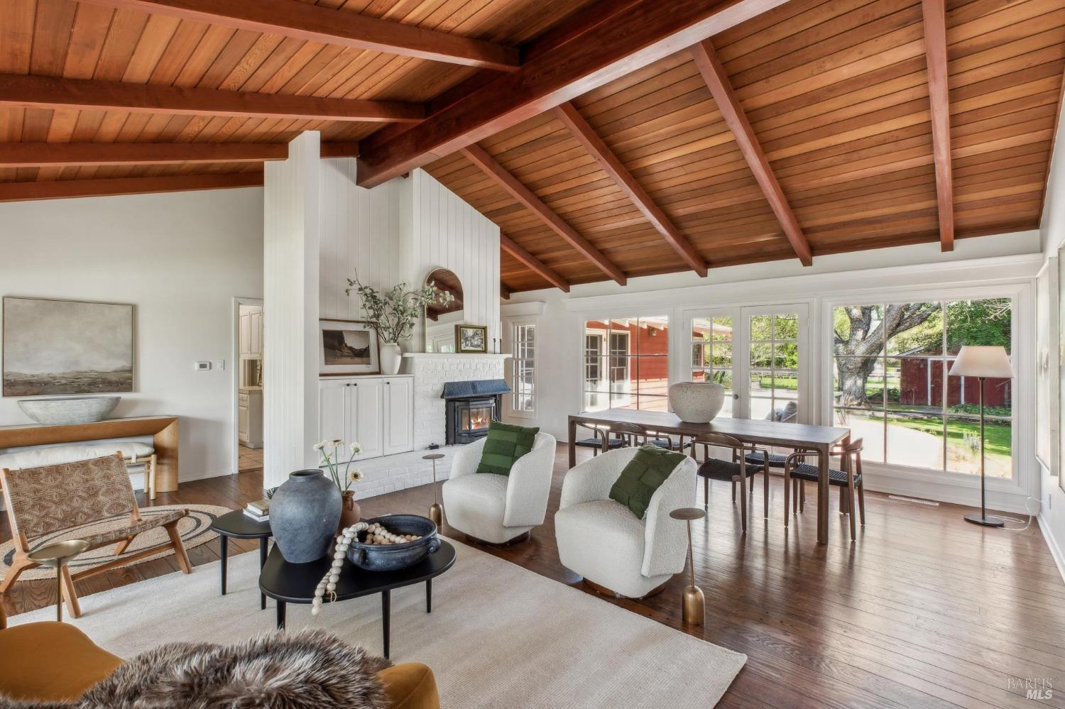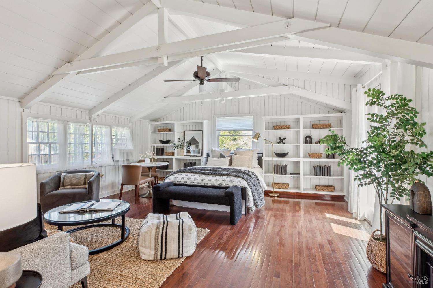 Situated on an extra large parcel of nearly 1/2 acre reaching from block to block, this is a rare find in a prime Eastside Sonoma location. Single level 3 bedroom/2 bath vintage home with detached barn with overflow space and bathroom upstairs. Interior features include wide plank hardwood floors, fireplace, open beam ceilings, and French doors leading to the park-like grounds. Indoor/outdoor living as you enjoy quiet times on the large brick patio under ancient shade trees. Room for expansion on this large parcel with public services. Charming detached garage accessed from the quiet lane behind.