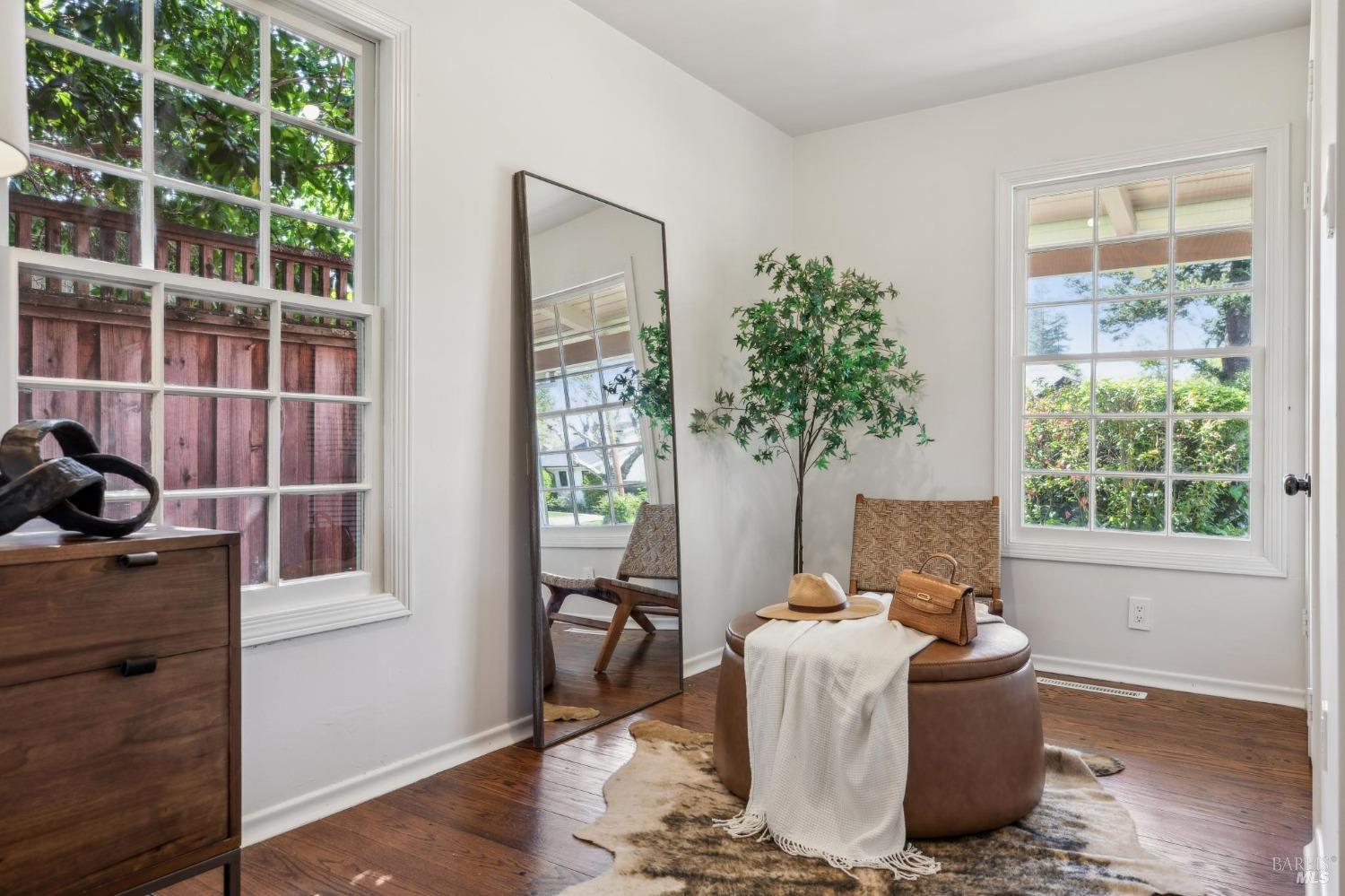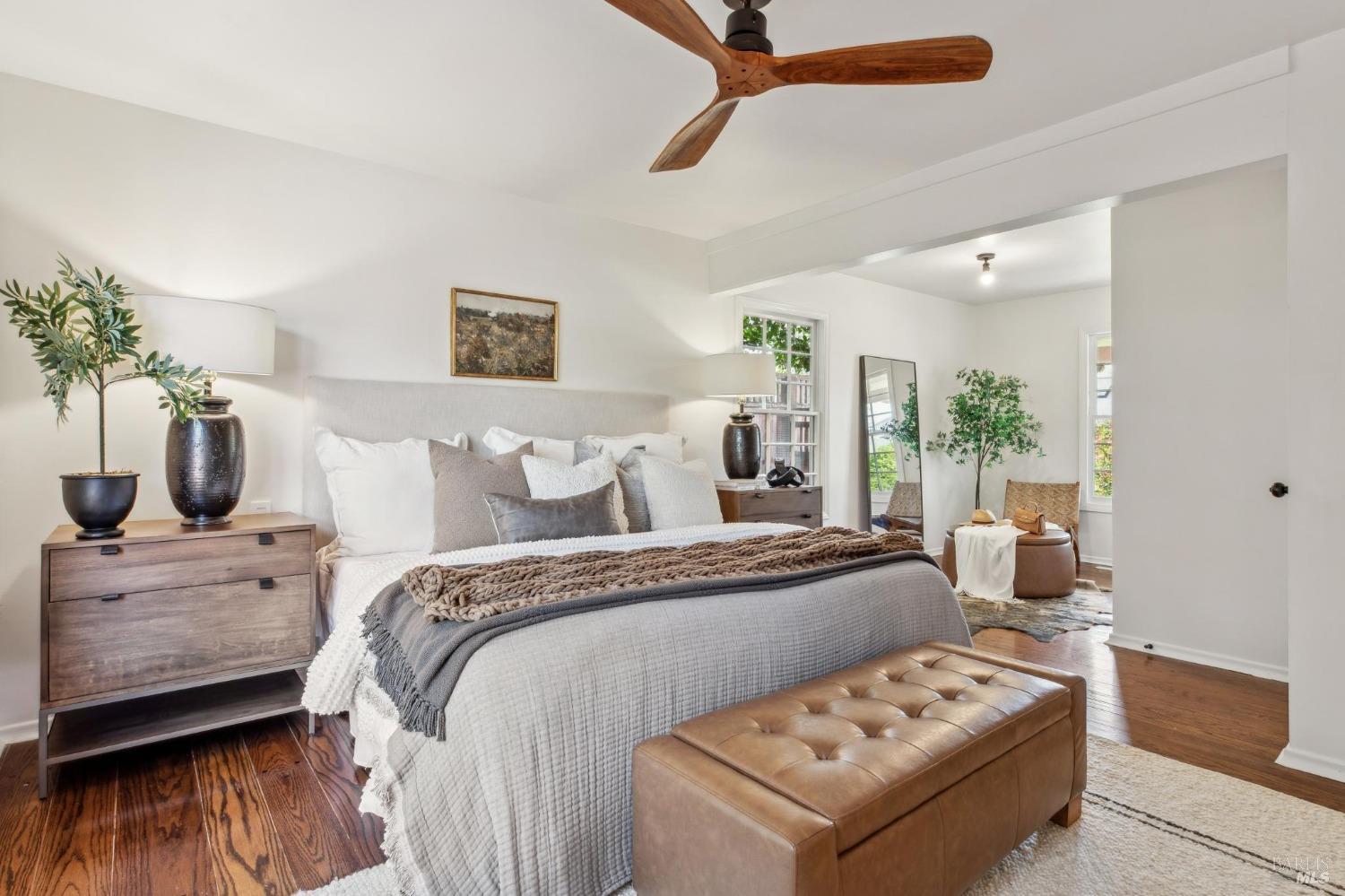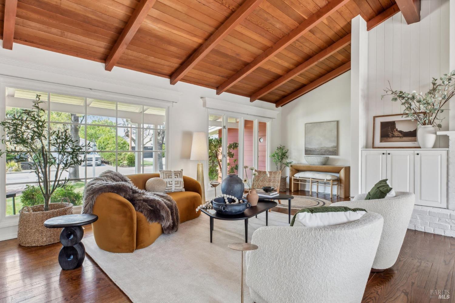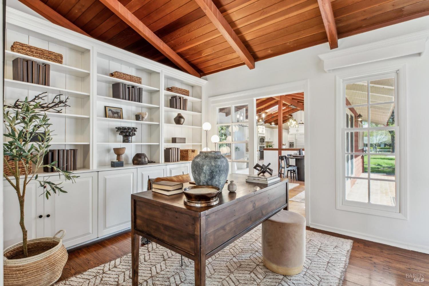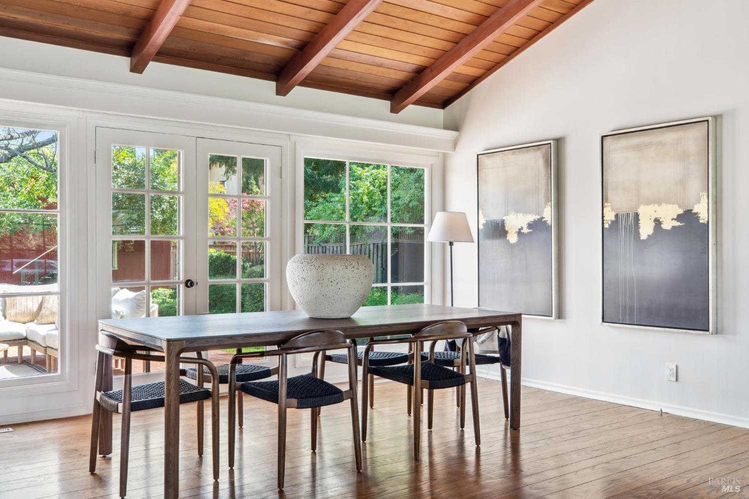 Situated on an extra large parcel of nearly 1/2 acre reaching from block to block, this is a rare find in a prime Eastside Sonoma location. Single level 3 bedroom/2 bath vintage home with detached barn with overflow space and bathroom upstairs. Interior features include wide plank hardwood floors, fireplace, open beam ceilings, and French doors leading to the park-like grounds. Indoor/outdoor living as you enjoy quiet times on the large brick patio under ancient shade trees. Room for expansion on this large parcel with public services. Charming detached garage accessed from the quiet lane behind.