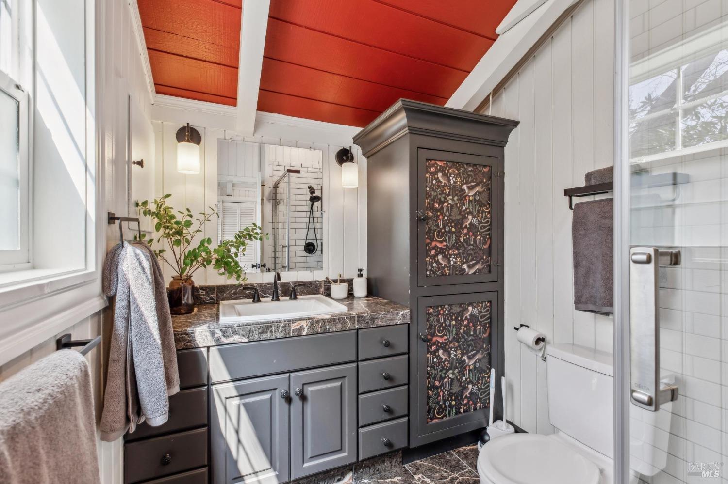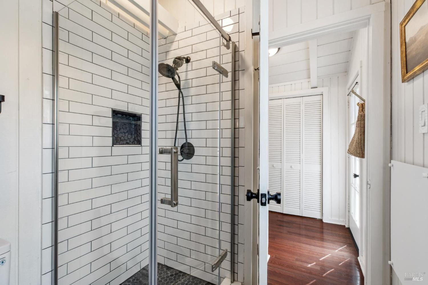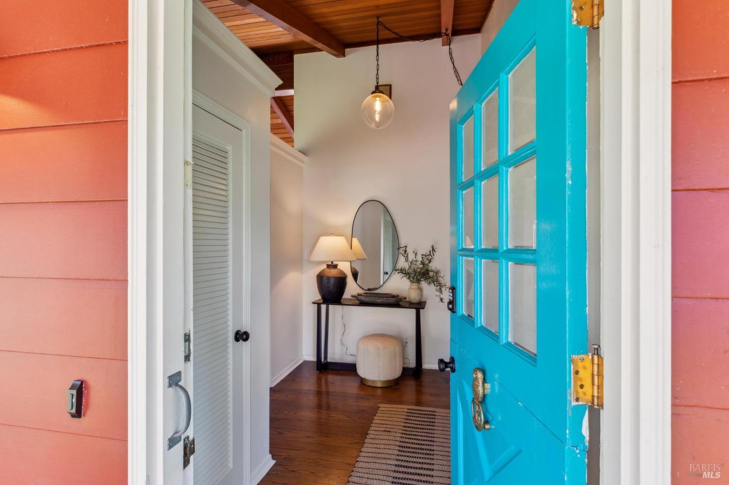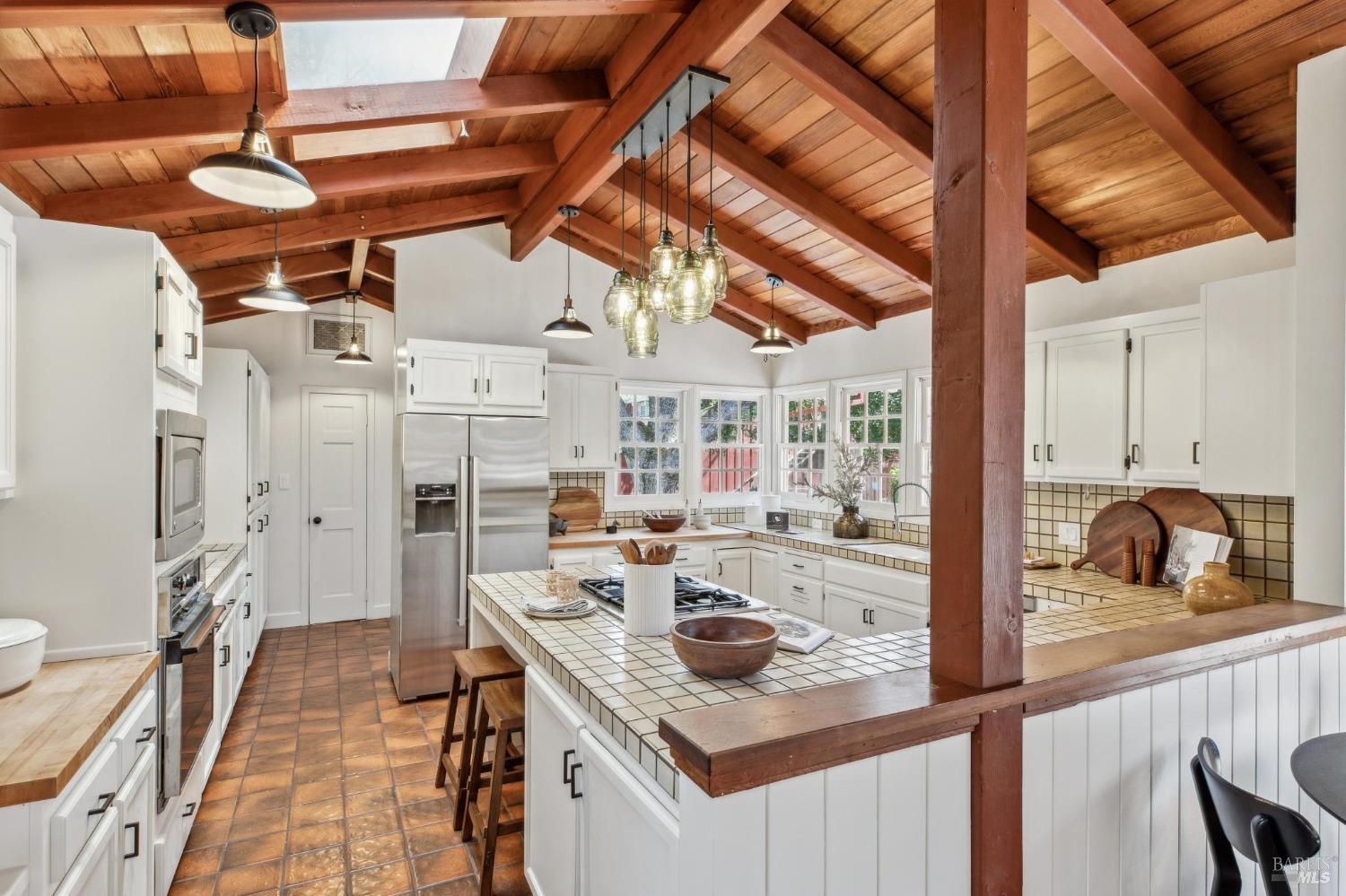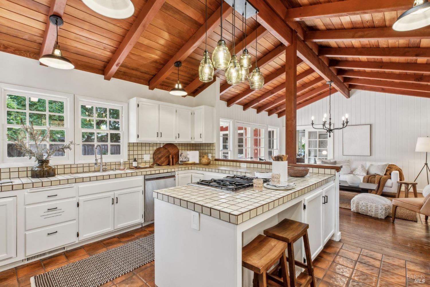 Situated on an extra large parcel of nearly 1/2 acre reaching from block to block, this is a rare find in a prime Eastside Sonoma location. Single level 3 bedroom/2 bath vintage home with detached barn with overflow space and bathroom upstairs. Interior features include wide plank hardwood floors, fireplace, open beam ceilings, and French doors leading to the park-like grounds. Indoor/outdoor living as you enjoy quiet times on the large brick patio under ancient shade trees. Room for expansion on this large parcel with public services. Charming detached garage accessed from the quiet lane behind.