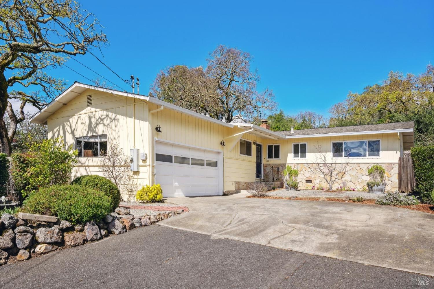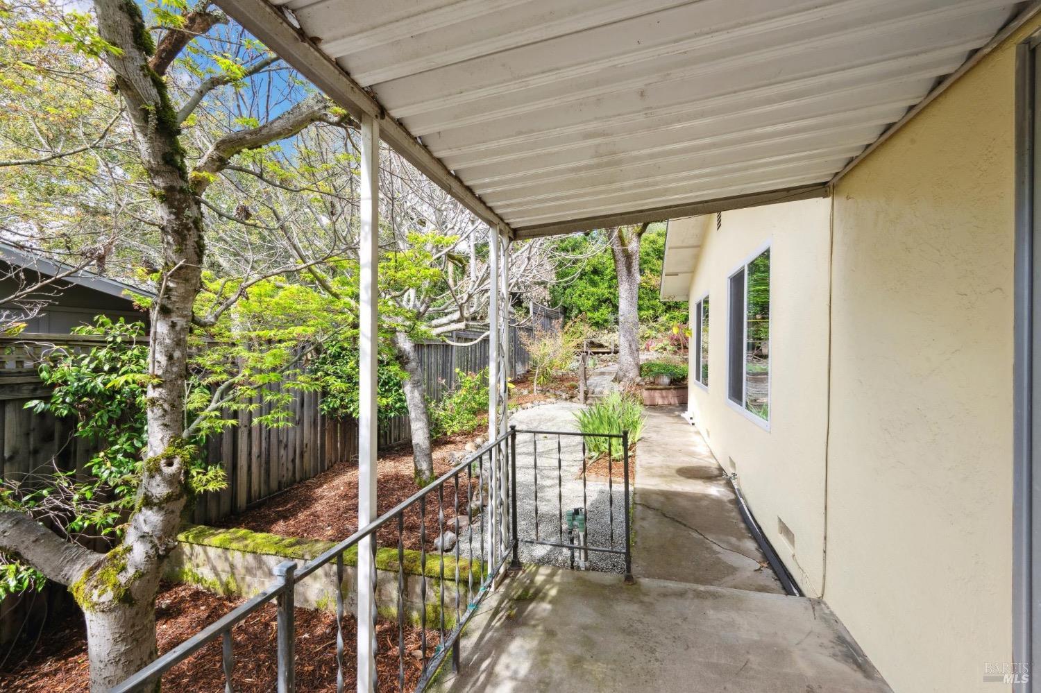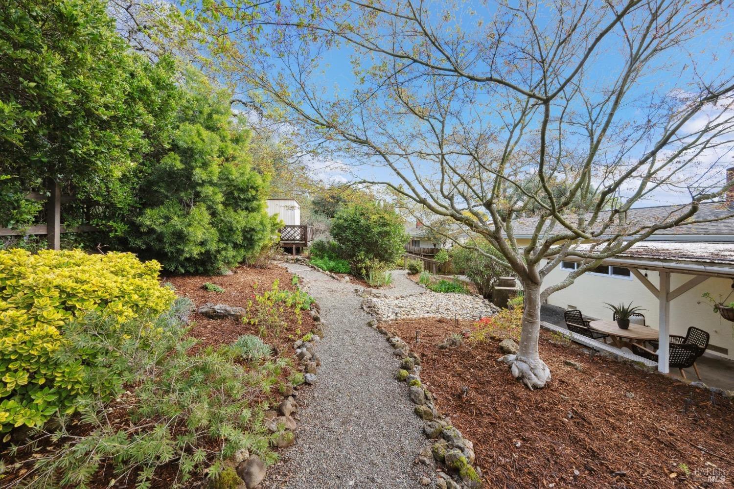 Located on a quiet lane just north of the bike patch, the dedicated open space of the Montini Preserve and Overlook Trail, this charming vintage 3 bedroom/2 bath home shows pride of ownership inside and out. Updated with fresh paint inside and out, dual pane windows, newer roof, and a tasteful refresh on the landscaping. The backyard is a quiet and private wonderland complete with extensive plans for a new swimming pool but wonderful just as it is now with mature landscaping and bursts of color in all directions. Backing to a large 1800's estate built for one of General Vallejo's daughters and later owned by Steve Silver, founder of the iconic Beach Blanket Babylon. The backyard is private with no homes looking in and it feels like you back to a park. Interior features include hardwood floors (even under the brand new carpet in the living room), flagstone wood burning fireplace, indoor laundry, wonderful natural light, generous sized rooms, and sliders from several rooms leading to the stunning grounds. Enjoy dining al fresco under the stars with the charming bistro lights. Feel like you are on vacation at home and walk to the Plaza on the bike path cutting through dedicated open spaces. The charm of a vintage home, the convenience of recent upgrades, and a prime location.