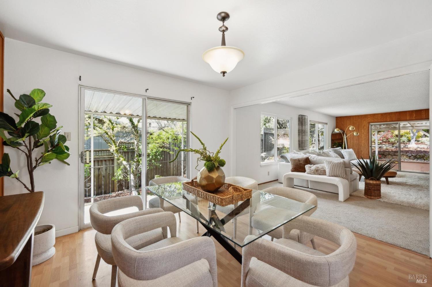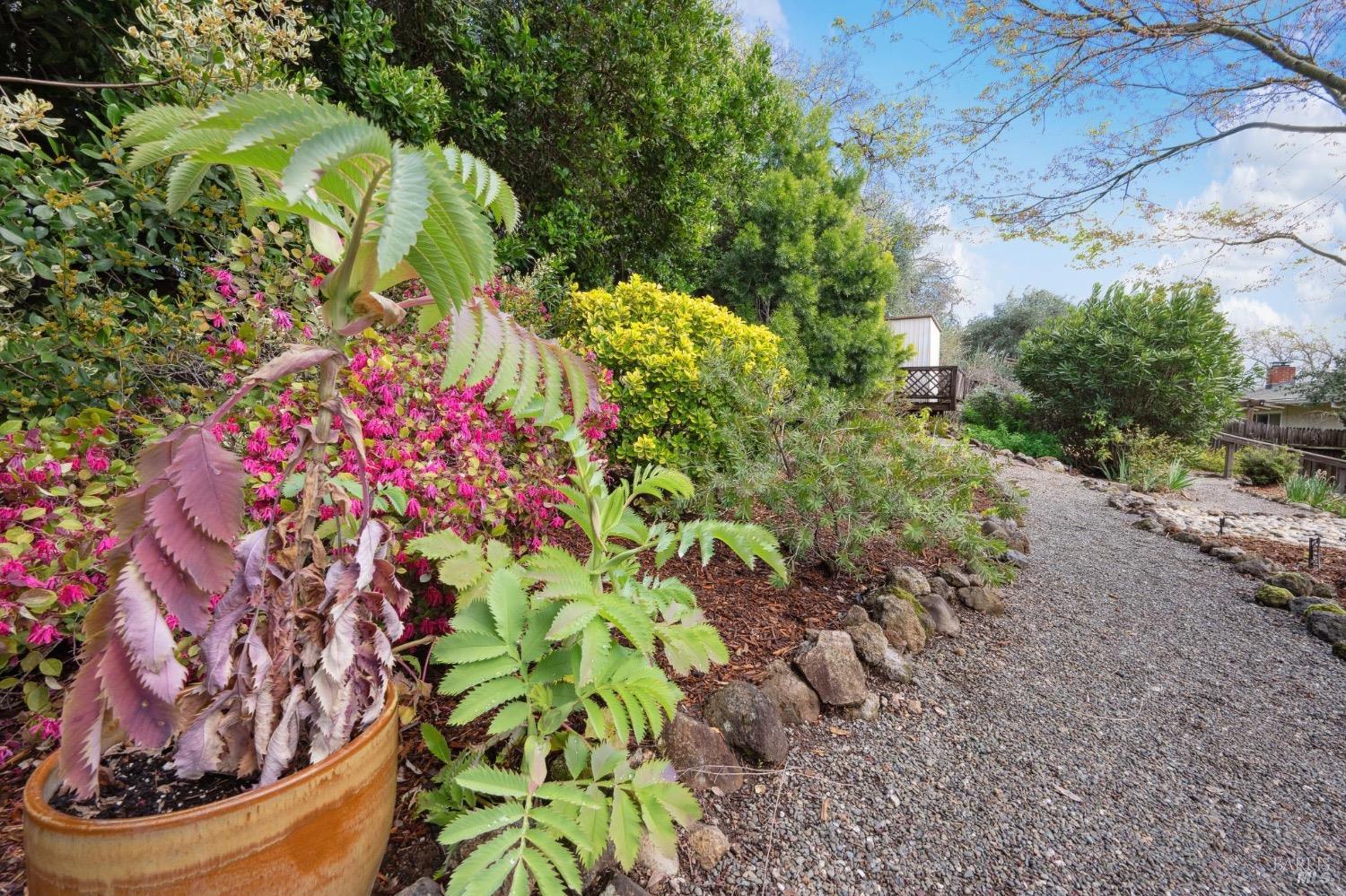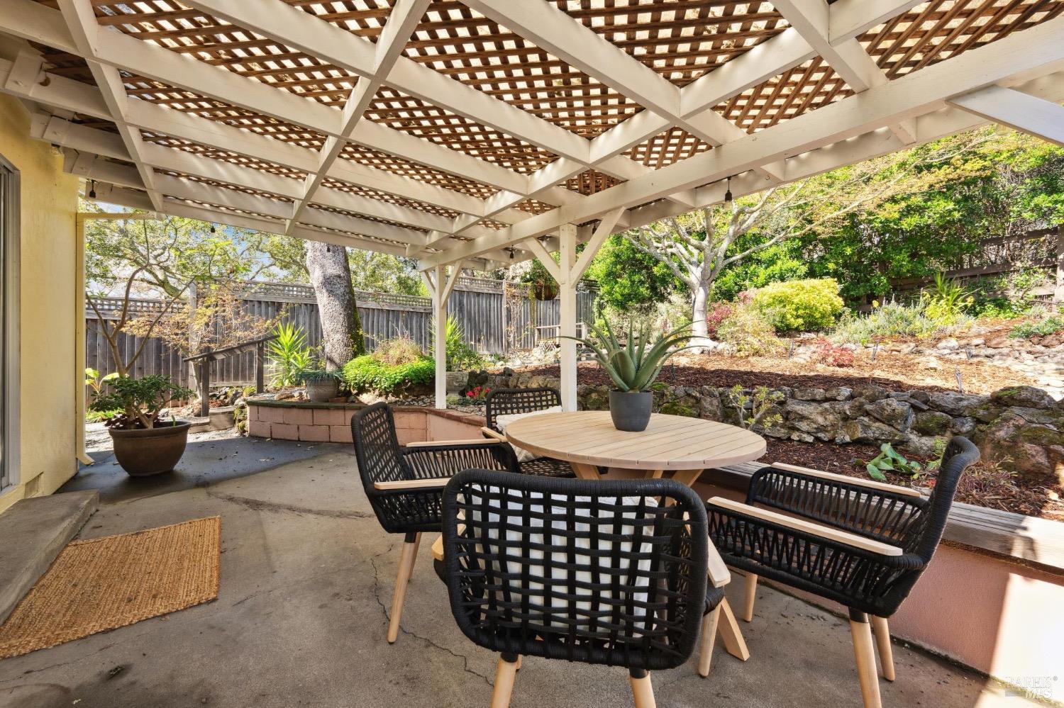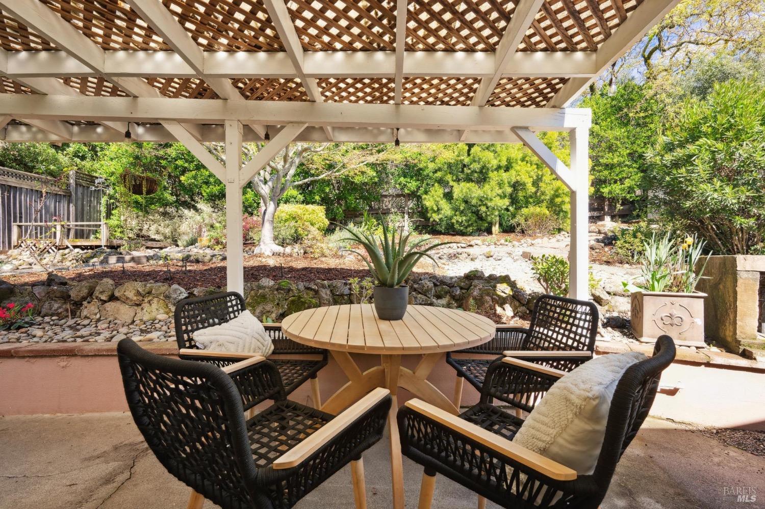 Located on a quiet lane just north of the bike patch, the dedicated open space of the Montini Preserve and Overlook Trail, this charming vintage 3 bedroom/2 bath home shows pride of ownership inside and out. Updated with fresh paint inside and out, dual pane windows, newer roof, and a tasteful refresh on the landscaping. The backyard is a quiet and private wonderland complete with extensive plans for a new swimming pool but wonderful just as it is now with mature landscaping and bursts of color in all directions. Backing to a large 1800's estate built for one of General Vallejo's daughters and later owned by Steve Silver, founder of the iconic Beach Blanket Babylon. The backyard is private with no homes looking in and it feels like you back to a park. Interior features include hardwood floors (even under the brand new carpet in the living room), flagstone wood burning fireplace, indoor laundry, wonderful natural light, generous sized rooms, and sliders from several rooms leading to the stunning grounds. Enjoy dining al fresco under the stars with the charming bistro lights. Feel like you are on vacation at home and walk to the Plaza on the bike path cutting through dedicated open spaces. The charm of a vintage home, the convenience of recent upgrades, and a prime location.